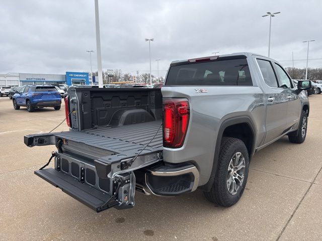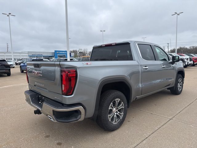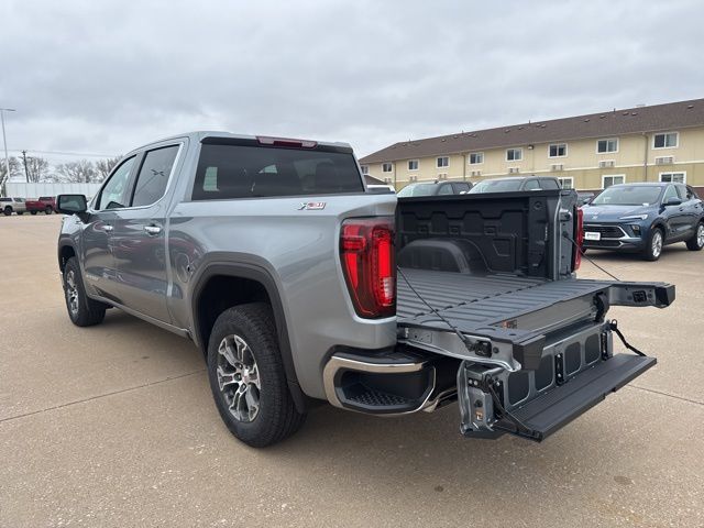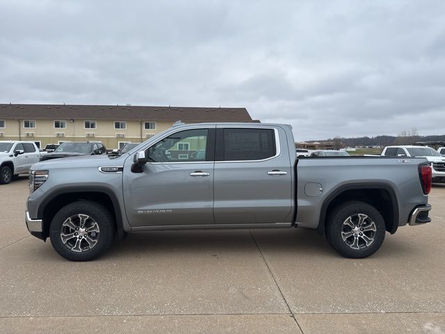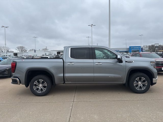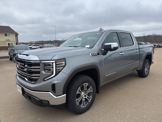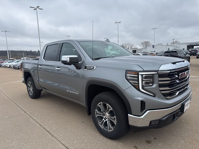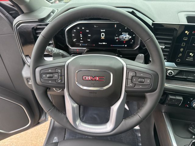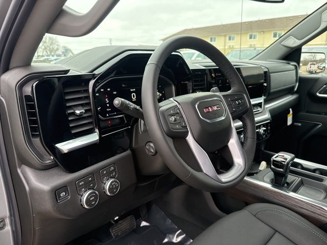 Navigation, Leather, Heated and cooled seats, Heated seats, Heated steering wheel, XM SIRIUS Radio, Push button start, Bluetooth, Rear Back Up Camera, Power driver's seat, Power passenger seat, Memory seats, Tow package, Convenience Package, Apple Car Play, LCD display screen, Onstar, Steering Wheel Controls, Alloy Wheels, Leather Interior, Lane Monitor, Sierra 1500 SLT, 4D Crew Cab, EcoTec3 5.3L V8, 10-Speed Automatic, 4WD, Sterling Metallic, Jet Black w/Perforated Leather-Appointed Front Outboard Seat Trim, 10-Way Power Driver Seat Adjuster with Lumbar, 10-Way Power Passenger Seat Adjuster with Lumbar, 120-Volt Bed Mounted Power Outlet, 120-Volt Interior Power Outlet, 170 Amp Alternator, 2 Charge/Data USB Ports, 2 Charge/Data USB Ports Inside Center Console, 2 Type-C Charge-Only Rear USB Ports, 3.23 Rear Axle Ratio, 4-Wheel Disc Brakes, 6 Speakers, 6-Speaker Audio System Feature, ABS brakes, Air Conditioning, Alloy wheels, AM/FM radio: SiriusXM with 360L, Apple CarPlay/Android Auto, Auto High-beam Headlights, Auto-dimming door mirrors, Auto-dimming Rear-View mirror, Auto-Locking Rear Differential, Automatic Emergency Braking, Automatic temperature control, Auxiliary External Transmission Oil Cooler, Brake assist, Buckle to Drive, Bumpers: chrome, Chrome Header and Chrome Grille Insert Bars, Color-Keyed Carpeting Floor Covering, Compass, Deep-Tinted Glass, Delay-off headlights, Driver door bin, Driver Memory, Driver vanity mirror, Dual Exhaust System, Dual front impact airbags, Dual front side impact airbags, Electric Rear-Window Defogger, Electronic Precision Shift, Electronic stabiliy control, Emergency communication system: OnStar, Floor-Mounted Center Console, Following Distance Indicator, Forward Collision Alert, Front anti-roll bar, Front Bucket Seats, Front Center Armrest w/Storage, Front dual zone A/C, Front fog lights, Front Frame-Mounted Black Recovery Hooks, Front Pedestrian Braking, Front Rain-Sensing Wipers, Front reading lights, Front wheel independent suspension, Fully automatic headlights, HD Rear Vision Camera, Heated door mirrors, Heated Driver and Front Outboard Passenger Seating, Heated front seats, Heated steering wheel, Heavy-Duty Air Filter, Hill Descent Control, Hitch Guidance, Illuminated entry, Integrated Trailer Brake Controller, IntelliBeam Automatic High Beam on/Off, Keyless Open and Start, Lane Keep Assist with Lane Departure Warning, LED Cargo Area Lighting, Low tire pressure warning, Manual Tilt-Wheel and Telescoping Steering Column, Memory seat, Navigation System, Occupant sensing airbag, Off-Road Suspension, OnStar Services Capable, Outside temperature display, Overhead airbag, Overhead console, Panic alarm, Passenger door bin, Passenger vanity mirror, Perforated Leather-Appointed Front Outboard Seat Trim, Perimeter Lighting, Power Door Locks, Power door mirrors, Power driver seat, Power Front Passenger Windows with Express Up/Down, Power Front Windows with Driver Express Up/Down, Power passenger seat, Power Rake and Telescoping Steering Column, Power Rear Windows with Express Down, Power steering, Power windows, Preferred Equipment Group 4SA, Premium Bose 7-Speaker Sound System, Push Button Start, Radio data system, Radio: Premium GMC Infotainment Audio System, Rain sensing wipers, Rear reading lights, Rear seat center armrest, Rear step bumper, Rear Wheelhouse Liners, Rear window defroster, Remote keyless entry, Remote Vehicle Starter System, Security system, SiriusXM with 360L Trial Subscription, SLT Convenience Package, Speed control, Speed-sensing steering, Split folding rear seat, Steering Wheel Audio Controls, Steering wheel mounted audio controls, Tachometer, Theft Deterrent System (unauthorized Entry), Traction control, Trailering Package, Trip computer, Variably intermittent wipers, Ventilated Driver and Front Passenger Seats, Voltmeter, Wheels: 18" x 8.5" 6-Spoke Machined Aluminum, Wi-Fi Hotspot Capable, Wireless Apple CarPlay/Wireless Android Auto, Wireless Charging, X31 Hard