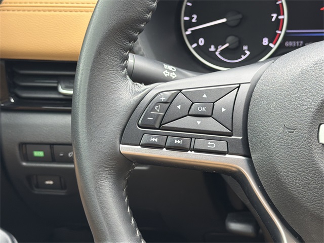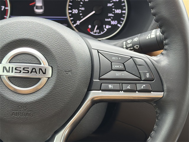 This vehicle comes well equipped with Electronics Package (Frameless EC Mirror w/Universal Remote and Map Pocket Lighting), Lighting Package (External Ground Lighting and Interior Ambient Lighting), SV Premium Package (17" Alloy Wheels, 6-Way Power Driver's Seat, Heated Front Seats, Leather Shift Knob, Power Sliding Glass Moonroof w/Tilt Feature, and Quilted Leather Seat Trim), 4-Wheel Disc Brakes, 6 Speakers, ABS brakes, Air Conditioning, AM/FM radio: SiriusXM, Auto High-beam Headlights, Automatic temperature control, Blind Spot Warning, Body Colored Splash Guards (4-Piece), Brake assist, Bumpers: body-color, Carpeted Floor Mats w/Trunk Mat, Clear Rear Bumper Protector, Delay-off headlights, Door Sill Plates, Driver door bin, Driver vanity mirror, Dual front impact airbags, Dual front side impact airbags, Electronic Stability Control, Four wheel independent suspension, Front anti-roll bar, Front Bucket Seats, Front Center Armrest, Front dual zone A/C, Front reading lights, Fully automatic headlights, Heated door mirrors, Illuminated entry, Knee airbag, Low tire pressure warning, NissanConnect featuring Apple CarPlay and Android Auto, Occupant sensing airbag, Outside temperature display, Overhead airbag, Overhead console, Panic alarm, Passenger door bin, Passenger vanity mirror, Power door mirrors, Power steering, Power windows, Radio data system, Radio: AM/FM w/RDS/MP3/Aux-In, Rear anti-roll bar, Rear Parking Sensors, Rear seat center armrest, Rear side impact airbag, Rear Spoiler, Rear window defroster, Remote keyless entry, Security system, Speed control, Speed-sensing steering, Split folding rear seat, Steering wheel mounted audio controls, Tachometer, Telescoping steering wheel, Tilt steering wheel, Traction control, Trip computer, and Upgraded Cloth Seat Trim Electronics Package (Frameless EC Mirror w/Universal Remote and Map Pocket Lighting), Lighting Package (External Ground Lighting and Interior Ambient Lighting), SV Premium Package (17" Alloy
