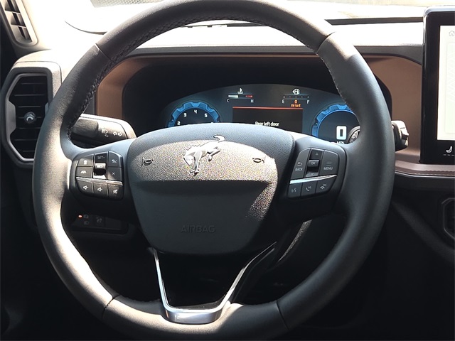 Shadow Black 2025 Ford Bronco Sport Outer Banks 4WD 8-Speed Automatic 1.5L EcoBoost 25/30 City/Highway MPG B&O Sound System by Bang & Olufsen, HD Radio, Panic alarm, Rear Parking Sensors, Security system, Speed control, SYNC 4 w/Enhanced Voice Recognition.