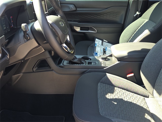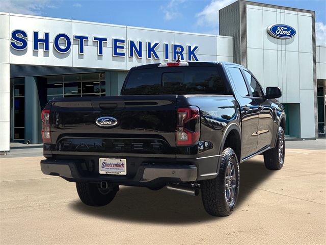 Shadow Black 2025 Ford Ranger XLT 4WD 10-Speed Automatic EcoBoost 2.3L I4 GTDi DOHC Turbocharged VCT Equipment Group 300A Standard, Gray Painted Center Bar & Grille Surround, Gray Painted Front Fascia & Rear Bumper, Navigation system: Connected Navigation, Sport Appearance Package, Sport Box Decal.