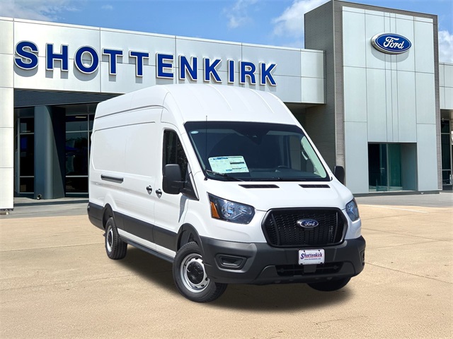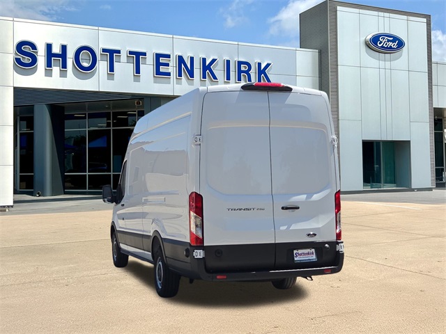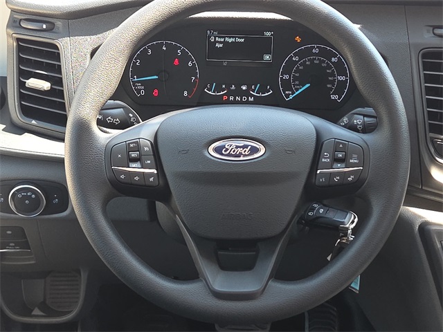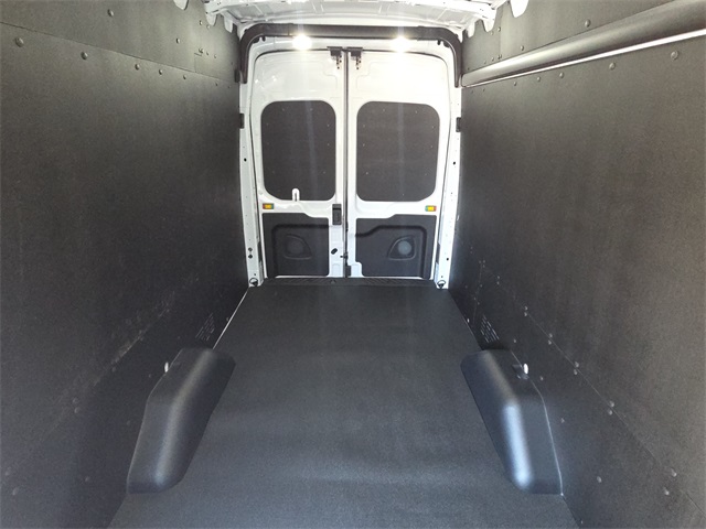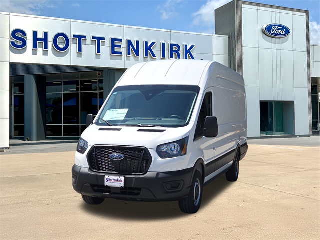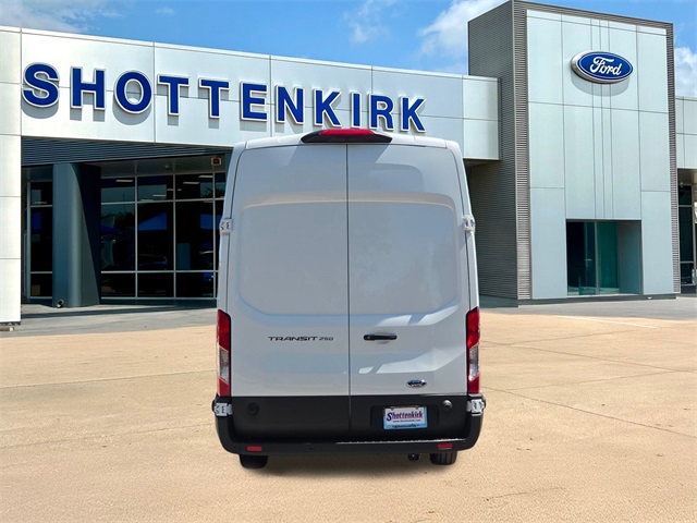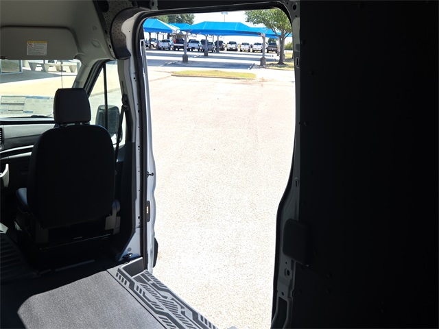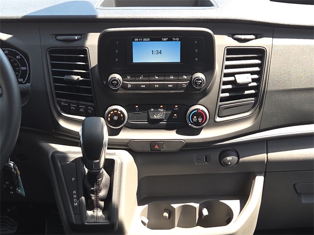 Oxford White 2025 Ford Transit-250 RWD 10-Speed Automatic with Overdrive 3.5L V6 Flex Fuel 4.10 Limited-Slip Axle Ratio, Air Conditioning, Auto High-beam Headlights, Front & Rear Vinyl Floor Covering, Load Area Protection Package, Order Code 101A, Steering wheel mounted audio controls, Variably intermittent wipers.