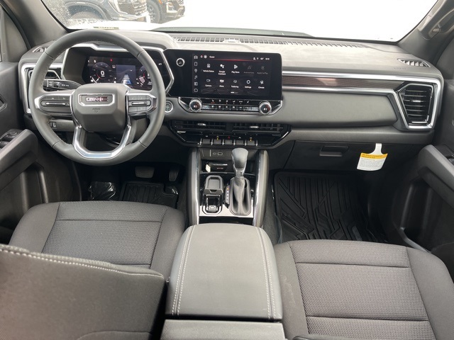 Navigation, Heated seats, XM SIRIUS Radio, Push button start, Bluetooth, Rear Back Up Camera, Blind spot indicator, Safety Package, Convenience Package, LCD display screen, Onstar, Steering Wheel Controls, Alloy Wheels, Lane Monitor, Canyon Elevation, 4D Crew Cab, 2.7L I4 Turbocharged DOHC 16V LEV3-SULEV30 310hp, 8-Speed Automatic, RWD, Summit White, Black Cloth, 1 Rear USB Port in Center Console (Charge-Only), 120-Volt Bed Mounted Power Outlet, 2 1st Row USB Charge/Data Ports, 2 Rear USB Ports in Center Console (Charge-Only), 3.42 Rear Axle Ratio, 4-Way Manual Front Passenger Seat Adjuster, 4-Wheel Disc Brakes, 6 Speakers, 6-Speaker Audio System Feature, 6-Way Manual Driver Seat Adjuster, 8-Way Power Driver Seat Adjuster, ABS brakes, Air Conditioning, Alloy wheels, AM/FM radio, Apple CarPlay/Android Auto, Auto High-beam Headlights, Automatic Emergency Braking, Automatic Stop/Start, Blind Zone Steering Assist w/Trailering, Brake assist, Bumpers: body-color, Canyon Pro Safety, Canyon Safety Plus Package, Cloth Seat Trim, Compass, Convenience Package, Delay-off headlights, Driver & Front Passenger Illuminated Visors, Driver door bin, Driver vanity mirror, Dual front impact airbags, Dual front side impact airbags, Dual-Zone Auto Climate Control Air Conditioning, Electronic stabiliy control, Emergency communication system: OnStar, EZ-Lift & Lower Tailgate, Following Distance Indicator, Forward Collision Alert, Front anti-roll bar, Front Bucket Seats, Front Center Armrest, Front LED Fog Lamps, Front Passenger Seatback Map Pocket, Front Pedestrian & Bicyclist Braking, Front wheel independent suspension, Heated door mirrors, Heated Driver & Front Passenger Seats, Illuminated entry, Inside Rear-View Auto-Dimming Mirror, IntelliBeam Automatic High Beam On/Off, Interior Overhead Courtesy Light w/Dual Reading Lamp, Lane Keep Assist w/Lane Departure Warning, Low tire pressure warning, MultiStow Tailgate Storage Compartment, Navigation System, Occupant sensing airbag, Off-Road Suspension, Outside temperature display, Overhead airbag, Overhead console, Panic alarm, Passenger door bin, Passenger vanity mirror, Power door mirrors, Power Driver Lumbar Control Seat Adjuster, Power steering, Power windows, Preferred Equipment Group 2VL, Preferred Package, Radio data system, Radio: 11.3" Diagonal Premium GMC Infotainment Sys, Rear Cross Traffic Braking, Rear of Console 120-Volt Power Outlet, Rear reading lights, Rear step bumper, Rear window defroster, Remote keyless entry, Remote Vehicle Starter System, Security system, SiriusXM w/360L, Speed control, Speed-sensing steering, Split folding rear seat, Steering wheel mounted audio controls, Stop/Start System Disable Button Engine Control, Tachometer, Tailgate Keyed Cylinder Lock, Tilt & Telescopic Manual Steering Column, Tilt steering wheel, Traction control, Trip computer, Ultrasonic Rear Park Assist, Variably intermittent wipers, Wheels: 18" x 8.5" Dark Gray Painted Aluminum, Wireless Apple CarPlay/Wireless Android Auto.