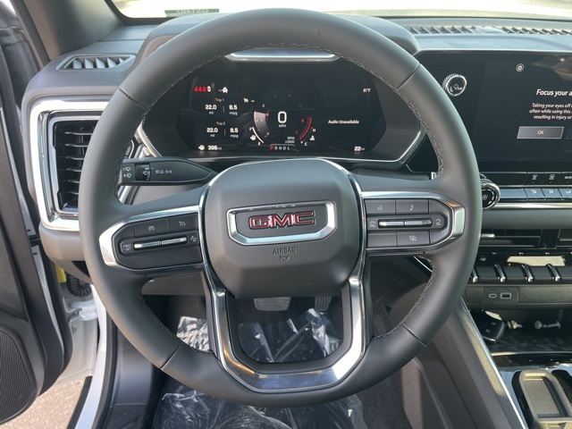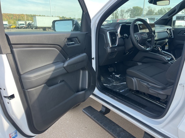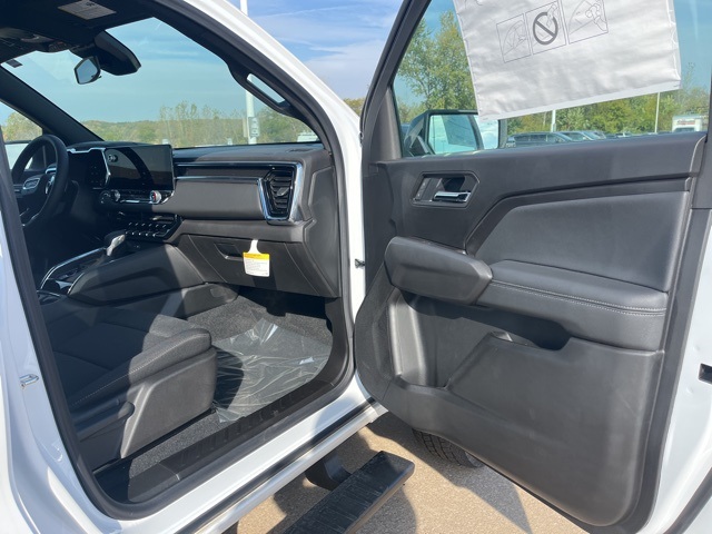 Navigation, XM SIRIUS Radio, Push button start, Bluetooth, Rear Back Up Camera, Blind spot indicator, Safety Package, Apple Car Play, LCD display screen, Onstar, Steering Wheel Controls, Alloy Wheels, Lane Monitor, Canyon Elevation, 4D Crew Cab, 2.7L I4 Turbocharged DOHC 16V LEV3-SULEV30 310hp, 8-Speed Automatic, RWD, Summit White, Black Cloth, 1 Rear USB Port in Center Console (Charge-Only), 2 1st Row USB Charge/Data Ports, 3.42 Rear Axle Ratio, 4-Way Manual Front Passenger Seat Adjuster, 4-Wheel Disc Brakes, 6 Speakers, 6-Speaker Audio System Feature, 6-Way Manual Driver Seat Adjuster, ABS brakes, Air Conditioning, Alloy wheels, AM/FM radio, Apple CarPlay/Android Auto, Auto High-beam Headlights, Automatic Emergency Braking, Automatic Stop/Start, Black Assist Step (LPO), Blind Zone Steering Assist w/Trailering, Brake assist, Bumpers: body-color, Canyon Pro Safety, Canyon Safety Plus Package, Cloth Seat Trim, Compass, Delay-off headlights, Driver door bin, Driver vanity mirror, Dual front impact airbags, Dual front side impact airbags, Electronic stabiliy control, Emergency communication system: OnStar, Following Distance Indicator, Forward Collision Alert, Front anti-roll bar, Front Bucket Seats, Front Center Armrest, Front License Plate Kit, Front Passenger Seatback Map Pocket, Front Pedestrian & Bicyclist Braking, Front wheel independent suspension, Heated door mirrors, Illuminated entry, IntelliBeam Automatic High Beam On/Off, Lane Keep Assist w/Lane Departure Warning, Low tire pressure warning, Navigation System, Occupant sensing airbag, Off-Road Suspension, Outside temperature display, Overhead airbag, Overhead console, Panic alarm, Passenger door bin, Passenger vanity mirror, Power door mirrors, Power steering, Power windows, Preferred Equipment Group 2VL, Radio data system, Radio: 11.3" Diagonal Premium GMC Infotainment Sys, Rear Cross Traffic Braking, Rear reading lights, Rear step bumper, Rear window defroster, Remote keyless entry, Security system, SiriusXM w/360L, Speed control, Speed-sensing steering, Split folding rear seat, Steering wheel mounted audio controls, Stop/Start System Disable Button Engine Control, Tachometer, Tilt steering wheel, Traction control, Trip computer, Ultrasonic Rear Park Assist, Variably intermittent wipers, Wheels: 18" x 8.5" Dark Gray Painted Aluminum, Wireless Apple CarPlay/Wireless Android Auto.