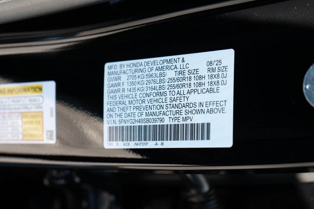 Black 2025 Honda Pilot EX-L FWD 10-Speed Automatic 3.5L V6 DOHC 24V 19/27 City/Highway MPG