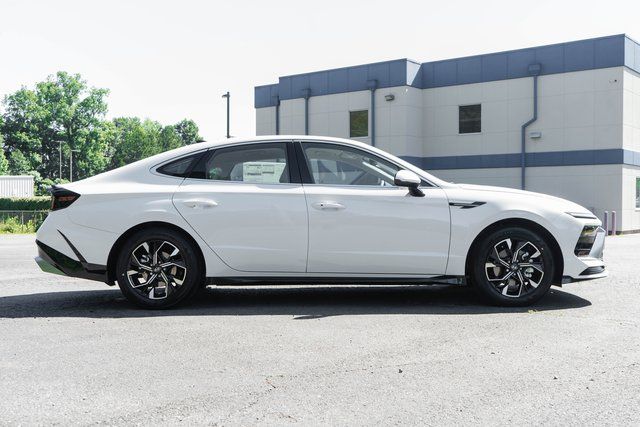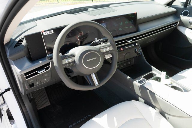 Serenity White 2025 Hyundai Sonata 4D Sedan SEL FWD 8-Speed Automatic I4 Gray Cloth.