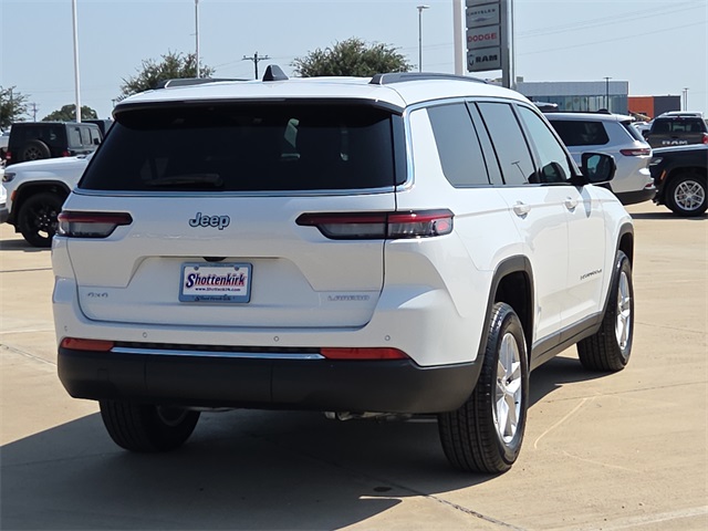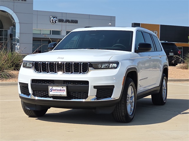 2025 Jeep Grand Cherokee L Laredo 4D Sport Utility Bright White Clearcoat 4WD 8-Speed Automatic 3.6L V6 24V VVT This vehicle comes well equipped with Luxury Tech Group I (115V Auxiliary Power Outlet, 3rd Row Charge-Only USB Ports, Heated Front Seats, Heated Steering Wheel, Power Liftgate, Rain Sensitive Windshield Wipers, Remote Start System, Selectable Tire Fill Alert, and Wireless Charging Pad), Quick Order Package 23D Laredo X (Laredo X and Power Sunroof), 3.45 Rear Axle Ratio, 3rd row seats: split-bench, 4-Wheel Disc Brakes, 6 Speakers, ABS brakes, Air Conditioning, Alloy wheels, AM/FM radio: SiriusXM, Anti-whiplash front head restraints, Automatic temperature control, Brake assist, Bumpers: body-color, Cloth Seats, Compass, Delay-off headlights, Driver door bin, Driver vanity mirror, Dual front impact airbags, Dual front side impact airbags, Electronic Stability Control, Emergency communication system, Four wheel independent suspension, Front anti-roll bar, Front Bucket Seats, Front Center Armrest w/Storage, Front dual zone A/C, Front License Plate Bracket, Front reading lights, Fully automatic headlights, Heated door mirrors, Illuminated entry, Knee airbag, Low tire pressure warning, Manual Fold Seatbacks, Model Year Tracking, Normal Duty Suspension, Occupant sensing airbag, Outside temperature display, Overhead airbag, Overhead console, Panic alarm, ParkView Rear Back-Up Camera, Passenger door bin, Passenger vanity mirror, Power door mirrors, Power driver seat, Power steering, Power windows, Radio data system, Radio: Uconnect 5 w/8.4" Display, Rear air conditioning, Rear anti-roll bar, Rear reading lights, Rear window defroster, Rear window wiper, Reclining 3rd row seat, Remote keyless entry, Security system, Speed control, Speed-Sensitive Wipers, Split folding rear seat, Spoiler, Steering wheel mounted audio controls, Tachometer, Telescoping steering wheel, Tilt steering wheel, Traction control, Trip computer, Variably intermittent wipers, Voltmeter, and Wheels: 18" x 8.0" Fully Painted Aluminum.