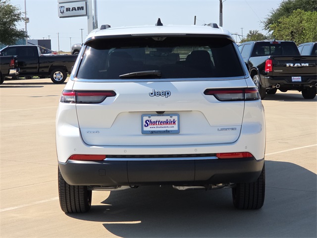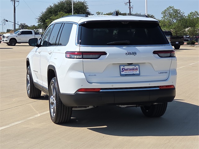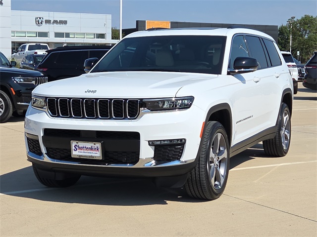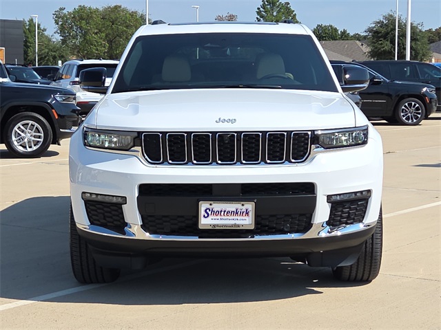 2025 Jeep Grand Cherokee L Limited 4D Sport Utility Bright White Clearcoat 4WD 8-Speed Automatic 3.6L V6 24V VVT This vehicle comes well equipped with Luxury Tech Group II (2nd Row Manual Window Shades, Auto-Dimming Exterior Driver Mirror, Capri Leatherette w/Axis II Seats, Integrated Off-Road Camera, Intersection Collision Assist System, Memory Steering Column, ParkSense Front/Rear Park Assist w/Stop, Passive Entry - Front/Rear Doors, Liftgate, Power Tilt/Telescope Steering Column, Rain Sensitive Windshield Wipers, Rear Back Up Camera Washer, Rearview Autodim Digital Display Mirror, Surround View Camera System, Ventilated Front Seats, and Wireless Charging Pad), Quick Order Package 22E, 3.45 Rear Axle Ratio, 3rd row seats: split-bench, 4-Wheel Disc Brakes, 6 Speakers, ABS brakes, Active Noise Control System, Air Conditioning, Alloy wheels, AM/FM radio: SiriusXM with 360L, Anti-whiplash front head restraints, Audio memory, Auto High-beam Headlights, Automatic temperature control, Brake assist, Bumpers: body-color, Capri Leatherette Seats, Compass, Delay-off headlights, Driver door bin, Driver vanity mirror, Dual front impact airbags, Dual front side impact airbags, Dual-Pane Panoramic Sunroof, Electronic Stability Control, Emergency communication system, Four wheel independent suspension, Front anti-roll bar, Front Bucket Seats, Front Center Armrest w/Storage, Front dual zone A/C, Front fog lights, Front License Plate Bracket, Front reading lights, Fully automatic headlights, Garage door transmitter, Heated door mirrors, Heated front seats, Heated rear seats, Heated steering wheel, Illuminated entry, Interior Rear Facing Camera, Knee airbag, Low tire pressure warning, Manual Fold Seatbacks, Memory seat, Model Year Tracking, Navigation System, Normal Duty Suspension, Occupant sensing airbag, Outside temperature display, Overhead airbag, Overhead console, Panic alarm, ParkView Rear Back-Up Camera, Passenger door bin, Passenger vanity mirror, Power door mirrors, Power driver seat, Power Liftgate, Power passenger seat, Power steering, Power windows, Radio data system, Radio: Uconnect 5 Nav w/10.1" Display, Rear air conditioning, Rear anti-roll bar, Rear reading lights, Rear window defroster, Rear window wiper, Reclining 3rd row seat, Remote keyless entry, Security system, Speed control, Speed-Sensitive Wipers, Split folding rear seat, Spoiler, Steering wheel mounted audio controls, Tachometer, Telescoping steering wheel, Tilt steering wheel, Traction control, Trip computer, Turn signal indicator mirrors, Variably intermittent wipers, Voltmeter, Wheels: 18" x 8.0" Polished/Painted Aluminum, and Wheels: 20" x 8.5" Machined/Painted Aluminum.
