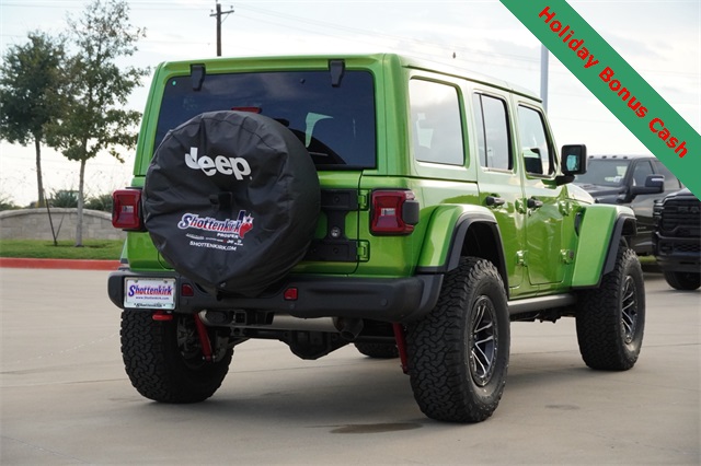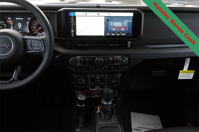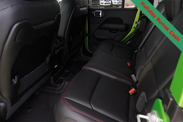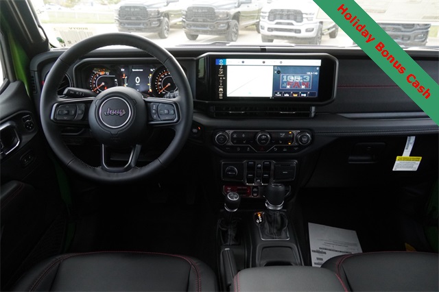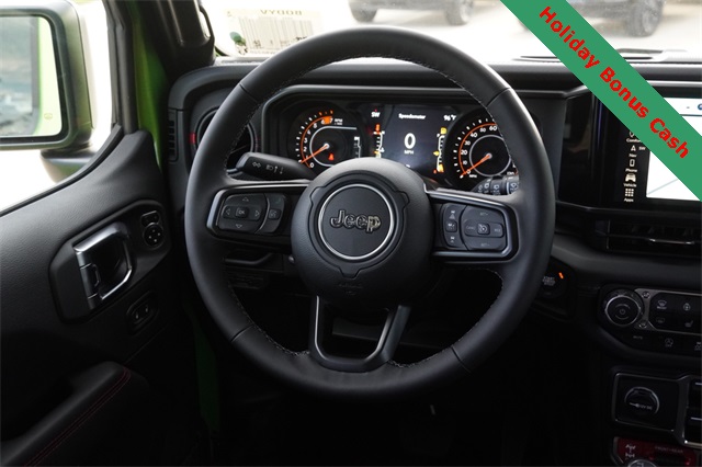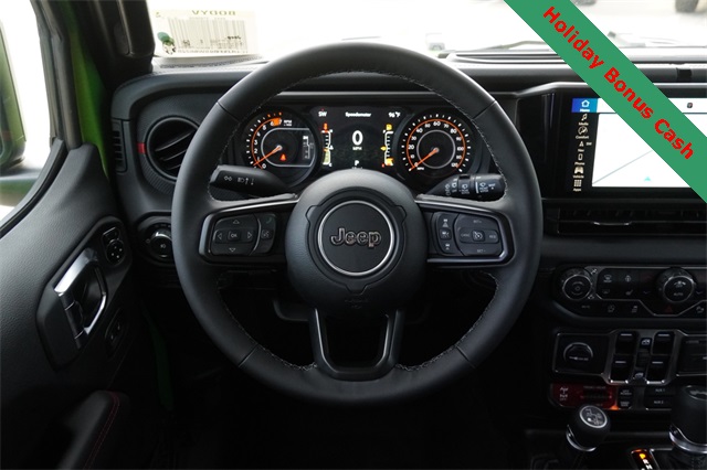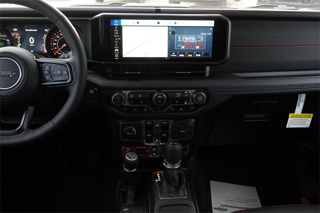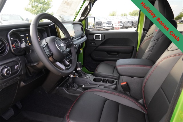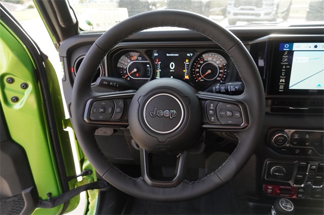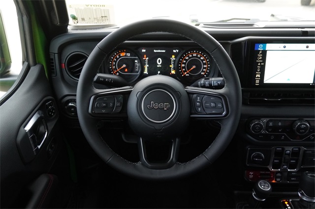 This Wrangler Rubicon X comes well equipped with Convenience Group (Heated Front Seats, Heated Steering Wheel, and Universal Garage Door Opener), Quick Order Package 24Y Rubicon X (Acoustic Front Seat Area Carpet, Acoustic Laminated Front Door Glass, Alpine Premium Audio System, Body Color 3-Piece Hard Top, Body Color Rubicon Highline Flare, Freedom Panel Storage Bag, Leather Wrapped Park Brake Handle, Leather Wrapped Shift Knob, MOPAR Hardtop Headliner, MOPAR Hinge-Gate Reinforcement, Nappa Leather Seats, Power 4-Way Driver Lumbar Adjust, Power 4-Way Passenger Lumbar Adjust, Power Adjust 8-Way Driver Seat, Power Adjust 8-Way Front Passenger Seat, Premium Door Trim Panel, Rear Window Defroster, Rear Window Wiper/Washer, Steel Front Bumper, and Steel Rear Bumper), Safety Group (Auto High Beam Headlamp Control, Blind Spot & Cross Path Detection, and ParkSense Rear Park Assist System), Technology Group (12.3" Touchscreen Display, 4G LTE Wi-Fi Hot Spot, Apple CarPlay, Auto-Dimming Rear-View Mirror, Connected Travel & Traffic Services, Connectivity - US/Canada, Google Android Auto, GPS Navigation, HD Radio, Integrated Off-Road Camera, Integrated Voice Command w/Bluetooth, Radio: Uconnect 5 Nav w/12.3" Display, SiriusXM Radio Service, and SiriusXM w/360L), Trailer Tow & Aux Switch Group (Auxiliary Switches and Class II Receiver Hitch), Trailer Tow Prep Package, Xtreme 35" Tire Package (35" Tire Suspension, 97 MPH Vehicle Max Speed Calibration, Anti-Lock 4-Wheel Disc Perf Brakes, and Wheels: 17" x 8" Machined w/Black Pockets), 4-Wheel Disc Brakes, 8 Speakers, ABS brakes, Air Conditioning, Alloy wheels, AM/FM radio: SiriusXM, Apple CarPlay/Android Auto, Automatic temperature control, Aux Battery, Brake assist, Cloth Low-Back Bucket Seats, Compass, Delay-off headlights, Driver door bin, Driver vanity mirror, Dual front impact airbags, Dual front side impact airbags, Electronic Stability Control, Emergency communication system: Jeep Connect, Front anti-roll bar, Front Bucket Seats, Front Center Armrest w/Storage, Front dual zone A/C, Front fog lights, Front License Plate Bracket (DISC), Front reading lights, Fully automatic headlights, Heated door mirrors, Illuminated entry, Integrated roll-over protection, Low tire pressure warning, MOPAR All-Weather Floor Mats, Non-Lock Fuel Cap w/o Discriminator, Occupant sensing airbag, Outside temperature display, Overhead airbag, Panic alarm, ParkView Rear Back-Up Camera, Passenger door bin, Passenger vanity mirror, Performance Suspension, Power door mirrors, Power steering, Power windows, Radio data system, Radio: Uconnect 5 w/12.3" Display, Rear anti-roll bar, Rear reading lights, Remote keyless entry, Security system, Speed control, Split folding rear seat, Steering wheel mounted audio controls, Stop-Start Dual Battery System, Tachometer, Telescoping steering wheel, Tilt steering wheel, Traction control, Trip computer, Variably intermittent wipers, Voltmeter, Wheel Flare Extensions, and Wheels: 17" x 7.5" Machined/Painted Black.
