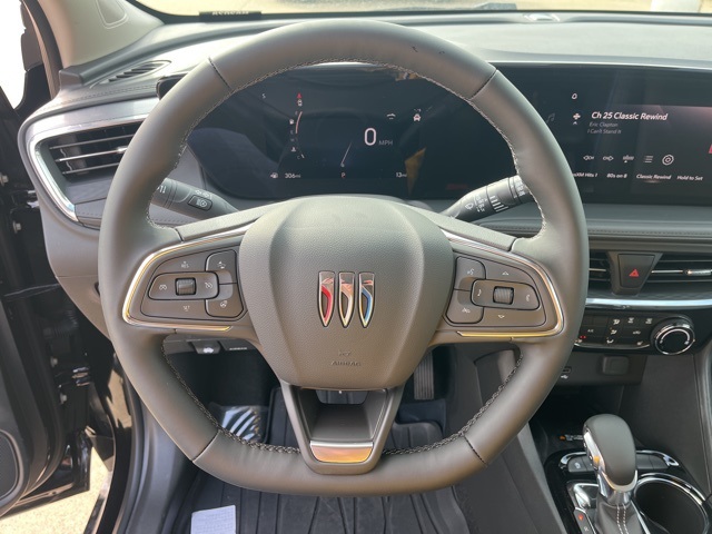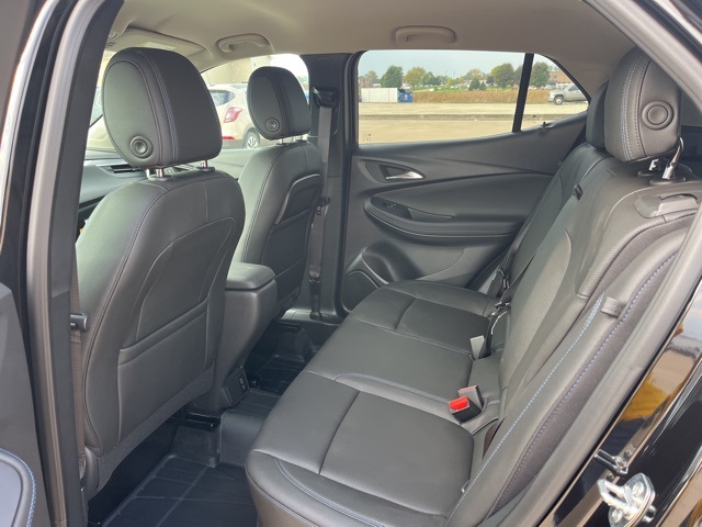 Leather, Heated seats, Heated steering wheel, XM SIRIUS Radio, Push button start, Bluetooth, Rear Back Up Camera, Power driver's seat, Blind spot indicator, Lane Monitor, Encore GX Sport Touring, 4D Sport Utility, ECOTEC 1.3L Turbo, 9-Speed Automatic, AWD, Ebony Twilight Metallic, Ebony Seats Interior With Santorini Blue Stitc Artificial Leather, 2-Way Power Driver Lumbar Control, 3.17 Final Drive Axle Ratio, 4-Way Manual Passenger Seat Adjuster, 4-Wheel Disc Brakes, 7 Speakers, 8-Way Power Driver Seat Adjuster, ABS brakes, Adaptive Cruise Control, Advanced Technology Package, Air Conditioning, Alloy wheels, AM/FM radio: SiriusXM, Auto High-beam Headlights, Automatic temperature control, Brake assist, Bumpers: body-color, Comfort Package, Compass, Delay-off headlights, Driver door bin, Driver vanity mirror, Dual front impact airbags, Dual front side impact airbags, Electronic stabiliy control, Emergency communication system: OnStar and Buick connected services capable, Enhanced Performance 7-Speaker System w/Amplifier, Flat-Folding Front Passenger Seatback, Front anti-roll bar, Front Bucket Seats, Front Center Armrest, Front reading lights, Front wheel independent suspension, Fully automatic headlights, HD Surround Vision, Heated door mirrors, Heated Driver & Front Passenger Seats, Heated Steering Wheel, Illuminated entry, Knee airbag, Leatherette Seat Trim, Low tire pressure warning, Occupant sensing airbag, Outside temperature display, Overhead airbag, Overhead console, Panic alarm, Passenger door bin, Passenger vanity mirror, Power door mirrors, Power Liftgate, Power steering, Power windows, Preferred Equipment Group 1SD, Radio data system, Radio: AM/FM Audio System, Rear Center Armrest, Rear Park Assist, Rear reading lights, Rear side impact airbag, Rear window defroster, Rear window wiper, Remote keyless entry, Ride & Handling Suspension, Security system, SiriusXM Trial Subscription, Speed control, Speed-sensing steering, Split folding rear seat, Spoiler, Sport steering wheel, Steering wheel mounted audio controls, Tachometer, Telescoping steering wheel, Tilt steering wheel, Traction control, Trip computer, Variably intermittent wipers, Wheels: 18" Gloss Black Aluminum, Wireless Apple CarPlay/Wireless Android Auto, Wireless Charging. 26/28 City/Highway MPG
