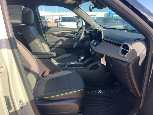 Moonroof, Leather, Heated seats, Heated steering wheel, XM SIRIUS Radio, Push button start, Bluetooth, Rear Back Up Camera, Power driver's seat, Blind spot indicator, Convenience Package, Apple Car Play, LCD display screen, Onstar, Steering Wheel Controls, Alloy Wheels, Leather Interior, Power Sunroof/Moonroof, Lane Monitor, TrailBlazer ACTIV, 4D Sport Utility, 1.3L Ecotec Turbo DOHC SIDI w/VVT, CVT, FWD, White Sands, Jet Black/Artemis w/Yellow Sittching w/Evotex Seat Trim, 120-Volt Power Outlet, 2-Way Power Driver Lumbar Seat Adjuster, 4-Way Manual Front Passenger Seat Adjuster, 4-Wheel Disc Brakes, 5.45 Final Drive Axle Ratio, 6 Speakers, 8-Way Power Driver Seat Adjuster, ABS brakes, Active Front Lower Grille Shutters, Adaptive Cruise Control, Air Conditioning, All-Weather Floor Mats, Alloy wheels, AM/FM radio: SiriusXM, Auto High-beam Headlights, Bose Premium 7-Speaker Audio System Feature, Brake assist, Bumpers: body-color, Cabin Humidity Sensor, Compass, Convenience Package, Delay-off headlights, Driver Confidence Package, Driver door bin, Driver vanity mirror, Dual front impact airbags, Dual front side impact airbags, Dual-Pane Panoramic Power Sunroof, Electronic stabiliy control, Emergency communication system: OnStar and Chevrolet connected services capable, Enhanced Performance 6-Speaker Audio System, Evotex Seat Trim, Exterior Parking Camera Rear, Flat-Folding Front Passenger Seatback, Front anti-roll bar, Front Bucket Seats, Front Center Armrest, Front License Plate Bracket, Front reading lights, Front wheel independent suspension, Fully automatic headlights, Hands Free Power Programmable Liftgate, Heated door mirrors, Heated front seats, Heated steering wheel, Illuminated entry, Inside Rear-View Auto-Dimming Mirror, Knee airbag, Low tire pressure warning, Occupant sensing airbag, Overhead airbag, Overhead console, Panic alarm, Passenger door bin, Passenger vanity mirror, Power door mirrors, Power driver seat, Power steering, Power windows, Preferred Equipment Group 1SA, Radio data system, Radio: AM/FM Stereo Audio System, Rear Cross Traffic Alert, Rear Park Assist, Rear seat center armrest, Rear side impact airbag, Rear window defroster, Rear window wiper, Remote keyless entry, Security system, Single-Zone Automatic Climate Control, SiriusXM Trial Subscription, Speed control, Split folding rear seat, Spoiler, Steering wheel mounted audio controls, Summit White Two-Tone Roof, Tachometer, Telescoping steering wheel, Tilt steering wheel, Traction control, Trip computer, Variably intermittent wipers, Wheels: 17" High Gloss Black Machined Aluminum, Wireless Apple CarPlay/Android Auto, Wireless Charging. 29/33 City/Highway MPG