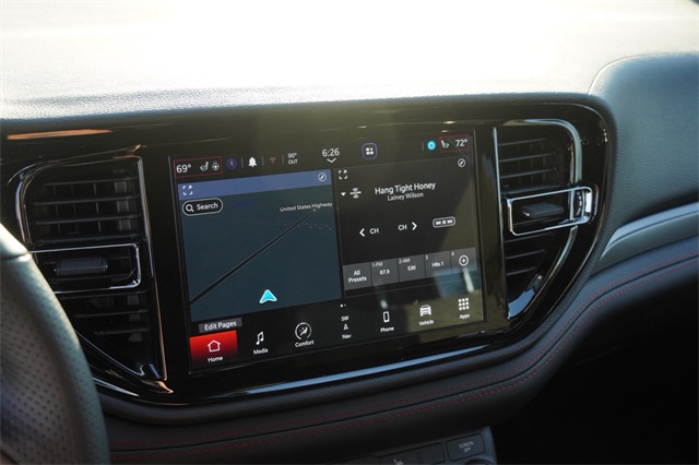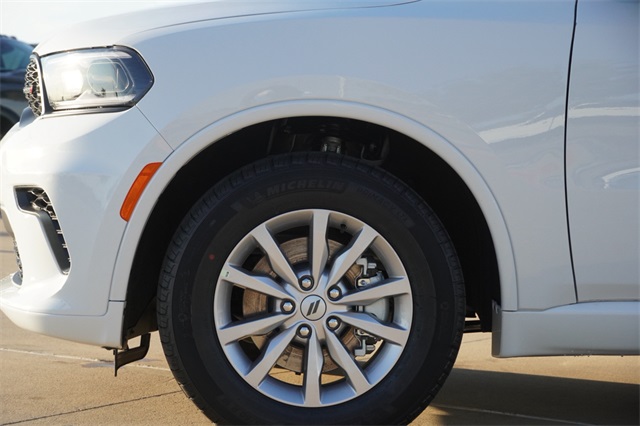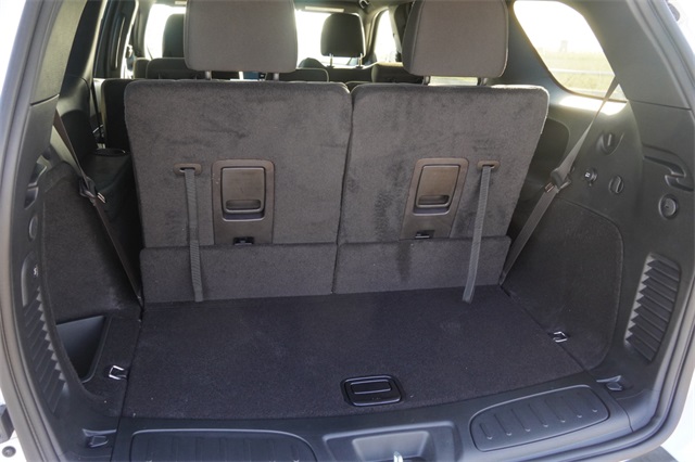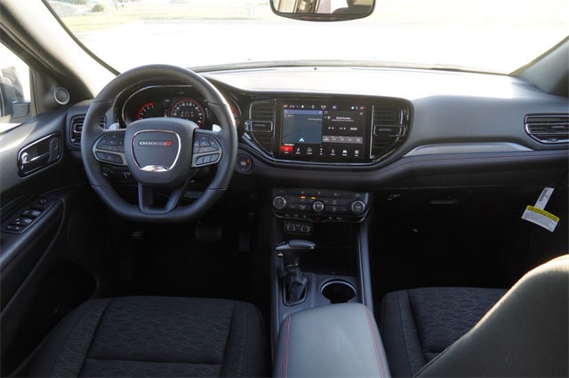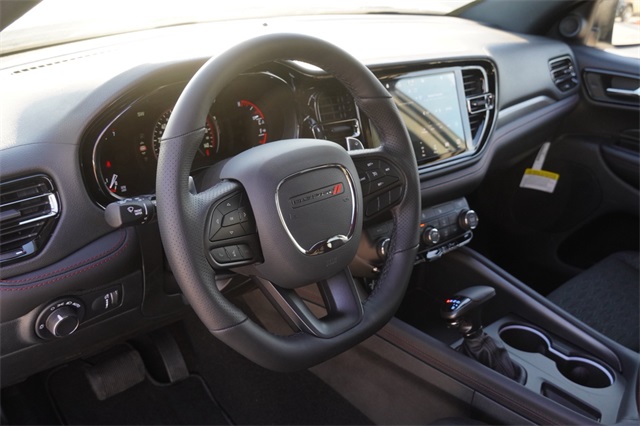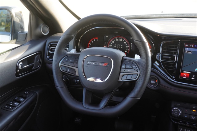 This Durango GT comes well equipped with Quick Order Package 2BD GT, 18" x 8" Painted Aluminum Wheels, 3.27 Rear Axle Ratio, 3rd row seats: split-bench, 4-Wheel Disc Brakes, 6 Speakers, ABS brakes, Air Conditioning, Alloy wheels, AM/FM radio: SiriusXM w/360L, Apple CarPlay/Android Auto, Auto-dimming Rear-View mirror, Auto-leveling suspension, Automatic temperature control, Brake assist, Bumpers: body-color, Cloth Bucket Seats w/Shift Insert, Compass, Delay-off headlights, Driver door bin, Driver vanity mirror, Dual front impact airbags, Dual front side impact airbags, Electronic Stability Control, Emergency communication system: Dodge Connect, Four wheel independent suspension, Front anti-roll bar, Front Bucket Seats, Front Center Armrest w/Storage, Front dual zone A/C, Front License Plate Bracket, Front reading lights, Fully automatic headlights, Garage door transmitter, Gloss Black Exterior Mirrors, Heated door mirrors, Heated front seats, Heated steering wheel, Illuminated entry, Knee airbag, Leather steering wheel, Low tire pressure warning, Navigation System, Occupant sensing airbag, Outside temperature display, Overhead airbag, Overhead console, Panic alarm, ParkView Rear Back-Up Camera, Passenger door bin, Passenger vanity mirror, Power door mirrors, Power driver seat, Power Liftgate, Power steering, Power windows, Radio data system, Radio: Uconnect 5 Nav w/10.1" Display, Rear air conditioning, Rear anti-roll bar, Rear Load Leveling Suspension, Rear reading lights, Rear seat center armrest, Rear window defroster, Rear window wiper, Remote keyless entry, Speed control, Speed-sensing steering, Speed-Sensitive Wipers, Split folding rear seat, Spoiler, Sport steering wheel, Steering wheel mounted audio controls, Tachometer, Telescoping steering wheel, Tilt steering wheel, Traction control, Trip computer, Variably intermittent wipers, and Voltmeter.