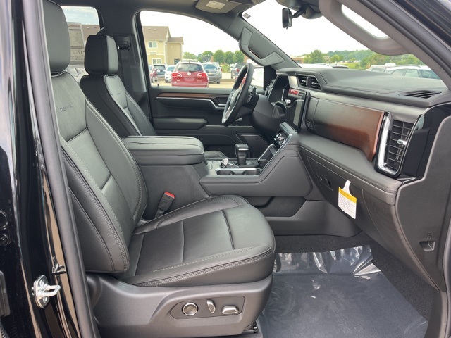 Navigation, Moonroof, Leather, Heated and cooled seats, Heated seats, Heated steering wheel, XM SIRIUS Radio, Push button start, Black out wheels, Bluetooth, Rear Back Up Camera, Power driver's seat, Power passenger seat, Memory seats, Blind spot indicator, Tow package, Apple Car Play, LCD display screen, Onstar, Steering Wheel Controls, Alloy Wheels, Leather Interior, Power Sunroof/Moonroof, Lane Monitor, Adaptive Cruise, Sierra 1500 Denali, 4D Crew Cab, EcoTec3 5.3L V8, 10-Speed Automatic, 4WD, Onyx Black, Jet Black w/Forge Perforated Leather Seat Trim, 12-Way Power Driver Seat Adjuster w/Lumbar, 12-Way Power Passenger Seat Adjuster w/Lumbar, 120-Volt Bed Mounted Power Outlet, 120-Volt Interior Power Outlet, 170 Amp Alternator, 2 USB Ports, 3.23 Rear Axle Ratio, 4-Wheel Disc Brakes, 7 Speakers, ABS brakes, Adaptive suspension, Air Conditioning, Alloy wheels, AM/FM radio: SiriusXM with 360L, Apple CarPlay/Android Auto, Auto High-beam Headlights, Auto-dimming door mirrors, Auto-dimming Rear-View mirror, Auto-Locking Rear Differential, Automatic temperature control, Auxiliary External Transmission Oil Cooler, Bed View Camera, Brake assist, Buckle to Drive, Chrome Header w/Signature Denali Chrome Grille, Chrome Recovery Hooks, Compass, Deep-Tinted Glass, Delay-off headlights, Denali Premium Suspension w/Adaptive Ride Control, Driver door bin, Driver Memory, Driver vanity mirror, Dual front impact airbags, Dual front side impact airbags, Electric Rear-Window Defogger, Electronic stabiliy control, Emergency communication system: OnStar, Enhanced Automatic Emergency Braking, Following Distance Indicator, Forge Perforated Leather Seat Trim, Forward Collision Alert, Front anti-roll bar, Front Bucket Seats, Front dual zone A/C, Front fog lights, Front Pedestrian Braking, Front Rain-Sensing Wipers, Front reading lights, Front wheel independent suspension, Fully automatic headlights, Garage door transmitter, Genuine wood console insert, Genuine wood dashboard insert, Genuine wood door panel insert, GMC MultiPro Power Steps, HD Surround Vision, Heated 2nd Row Outboard Seats, Heated door mirrors, Heated Driver & Front Outboard Passenger Seating, Heated front seats, Heated rear seats, Heated steering wheel, Heavy-Duty Air Filter, Hill Descent Control, Hitch Guidance, Hitch View, Illuminated entry, In-Vehicle Trailering System App, Integrated Trailer Brake Controller, IntelliBeam Automatic High Beam On/Off, Keyless Open & Start, Lane Keep Assist w/Lane Departure Warning, LED Cargo Area Lighting, Low tire pressure warning, Memory seat, Navigation System, Occupant sensing airbag, OnStar Services Capable, Outside temperature display, Overhead airbag, Overhead console, Panic alarm, Passenger door bin, Passenger vanity mirror, Perimeter Lighting, Power Door Locks, Power door mirrors, Power driver seat, Power Front Passenger Windows w/Express Up/Down, Power Front Windows w/Driver Express Up/Down, Power passenger seat, Power Rake & Telescoping Steering Column, Power Rear Windows w/Express Down, Power Sliding Rear Window w/Rear Defogger, Power steering, Power Sunroof, Power windows, Preferred Equipment Group 5SA, Premium Bose 7-Speaker Sound System, Push Button Start, Radio data system, Radio: Premium GMC Infotainment Audio System, Rain sensing wipers, Rear Camera Mirror, Rear Cross Traffic Braking, Rear reading lights, Rear step bumper, Rear Underseat Storage (LPO), Rear Wheelhouse Liners, Rear window defroster, Remote keyless entry, Remote Vehicle Starter System, Safety Alert Seat, Security system, SiriusXM w/360L Trial Subscription, Speed control, Speed-sensing steering, Split folding rear seat, Spray-On Pickup Bedliner w/GMC Logo, Steering Wheel Audio Controls, Steering wheel mounted audio controls, Tachometer, Technology Package, Telescoping steering wheel, Theft Deterrent System (Unauthorized Entry), Tilt steering wheel, Traction control, Trailer Camera Provisions, Trailer Side Blind Zone Alert, Trailering Package, Trip computer, Ultrason