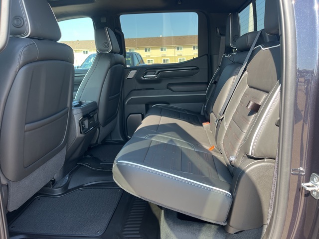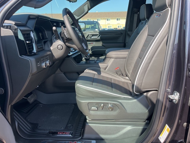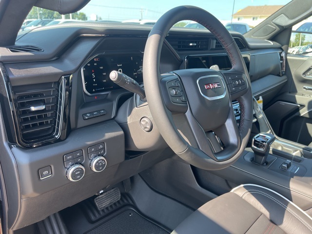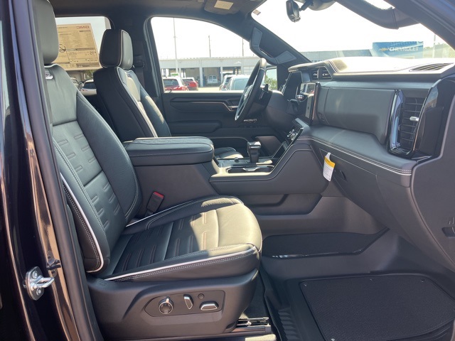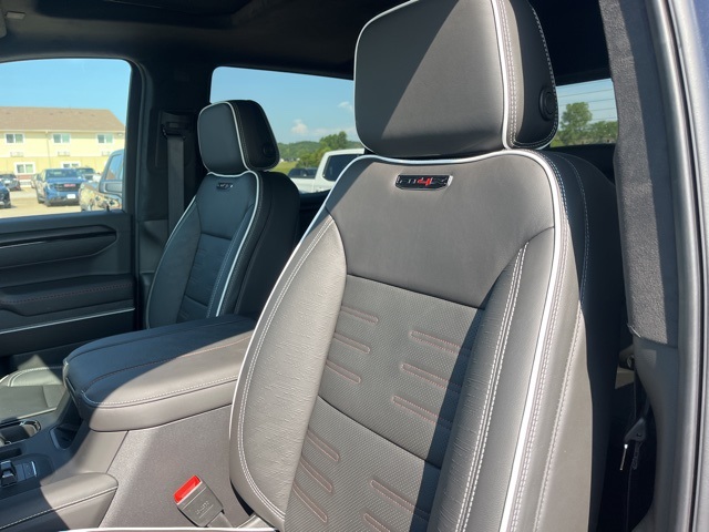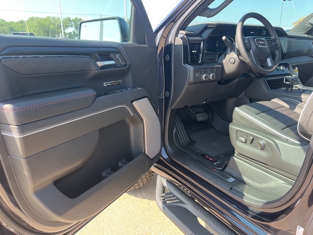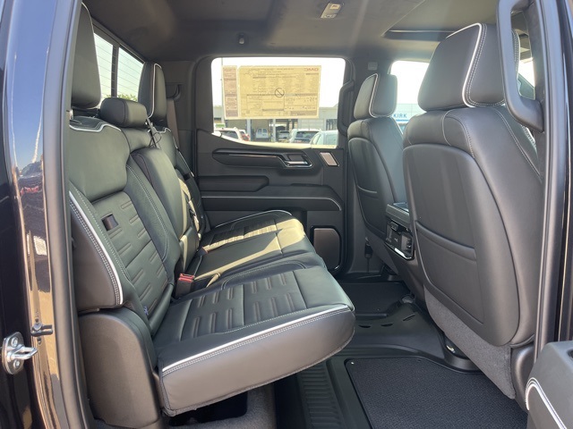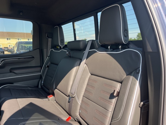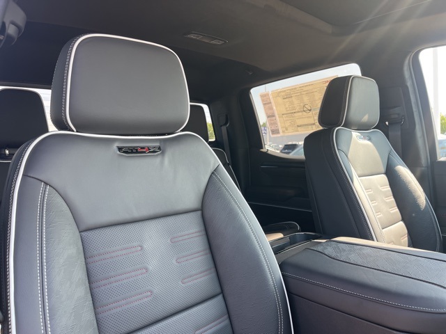 Navigation, Moonroof, Leather, Heated and cooled seats, Heated seats, Heated steering wheel, XM SIRIUS Radio, Push button start, Bluetooth, Rear Back Up Camera, Power driver's seat, Power passenger seat, Memory seats, Blind spot indicator, Tow package, Apple Car Play, LCD display screen, Onstar, Steering Wheel Controls, Alloy Wheels, Leather Interior, Power Sunroof/Moonroof, Lane Monitor, Adaptive Cruise, Sierra 1500 AT4X, 4D Crew Cab, EcoTec3 6.2L V8, 10-Speed Automatic, 4WD, Titanium Rush Metallic, Obsidian Rush w/Full Grain Leather Seat Trim, 12 Speakers, 120-Volt Bed Mounted Power Outlet, 120-Volt Interior Power Outlet, 16-Way Power Driver Seat Adjuster w/Lumbar, 16-Way Power Passenger Seat Adjuster w/Lumbar, 2 Charge/Data USB Ports Inside Center Console, 2 Type-C Charge-Only Rear USB Ports, 2 USB Ports, 3.23 Rear Axle Ratio, 4-Wheel Disc Brakes, ABS brakes, Air Conditioning, Alloy wheels, AM/FM radio: SiriusXM with 360L, Apple CarPlay/Android Auto, Auto High-beam Headlights, Auto-dimming door mirrors, Auto-dimming Rear-View mirror, Automatic Emergency Braking, Automatic temperature control, Auxiliary External Transmission Oil Cooler, Bed View Camera, Black Sport Step (LPO), Block heater, Bose Premium Series w/12-Speaker System, Brake assist, Buckle to Drive, Color-Keyed Carpeting Floor Covering, Compass, Deep-Tinted Glass, Delay-off headlights, Driver door bin, Driver Memory, Driver vanity mirror, Driver-Selectable Full-Locking Front Differential, Driver-Selectable Full-Locking Rear Differential, Dual Active Exhaust, Dual front impact airbags, Dual front side impact airbags, Electric Rear-Window Defogger, Electronic stabiliy control, Emergency communication system: OnStar, External Engine Oil Cooling, Floor-Mounted Center Console, Following Distance Indicator, Forward Collision Alert, Front anti-roll bar, Front Bucket Seats, Front Center Armrest, Front dual zone A/C, Front fog lights, Front License Plate Kit, Front Pedestrian Braking, Front Prem Floor Liners w/Removable Carpet Insert, Front Rain-Sensing Wipers, Front reading lights, Front wheel independent suspension, Full Grain Leather Seat Trim, Fully automatic headlights, Genuine wood dashboard insert, Genuine wood door panel insert, Gloss Black Header w/Drk Nickel Grille Insert Bars, HD Surround Vision, Heads-Up Display, Heated 2nd Row Outboard Seats, Heated door mirrors, Heated Driver & Front Outboard Passenger Seating, Heated front seats, Heated rear seats, Heated steering wheel, Heavy-Duty Air Filter, Hill Descent Control, Hitch Guidance, Hitch View, Illuminated entry, In-Vehicle Trailering System App, Integrated Trailer Brake Controller, IntelliBeam Automatic High Beam On/Off, Keyless Open & Start, Lane Keep Assist w/Lane Departure Warning, Leather steering wheel, LED Cargo Area Lighting, Low tire pressure warning, Memory seat, Multicolor 15" Diagonal Head-Up Display, MultiPro Tailgate Audio System by Kicker (LPO), Navigation System, Occupant sensing airbag, Off-Road Suspension, OnStar Services Capable, Outside temperature display, Overhead airbag, Overhead console, Panic alarm, Passenger door bin, Passenger vanity mirror, Perimeter Lighting, Power Door Locks, Power door mirrors, Power driver seat, Power Front Passenger Windows w/Express Up/Down, Power Front Windows w/Driver Express Up/Down, Power passenger seat, Power Rake & Telescoping Steering Column, Power Rear Windows w/Express Down, Power Sliding Rear Window w/Rear Defogger, Power steering, Power Sunroof, Power windows, Preferred Equipment Group 4SG, Push Button Start, Radio data system, Radio: Premium GMC Infotainment Audio System, Rain sensing wipers, Rear Cross Traffic Braking, Rear Pedestrian Detection, Rear Prem Floor Liners w/Removable Carpet Insert, Rear reading lights, Rear seat center armrest, Rear step bumper, Rear Wheelhouse Liners, Rear window defroster, Remote keyless entry, Remote Vehicle Starter System, Safety Alert Seat, Security system, SiriusXM w/360L Trial Subscription, Speed control,