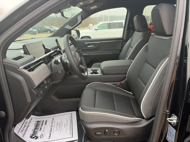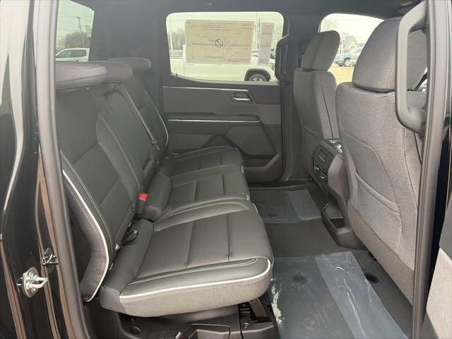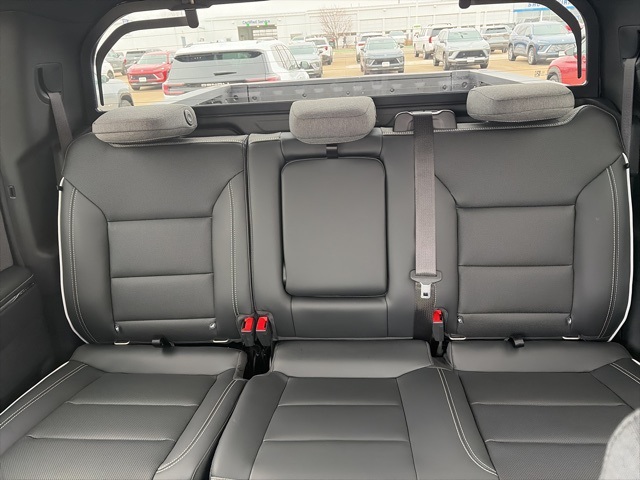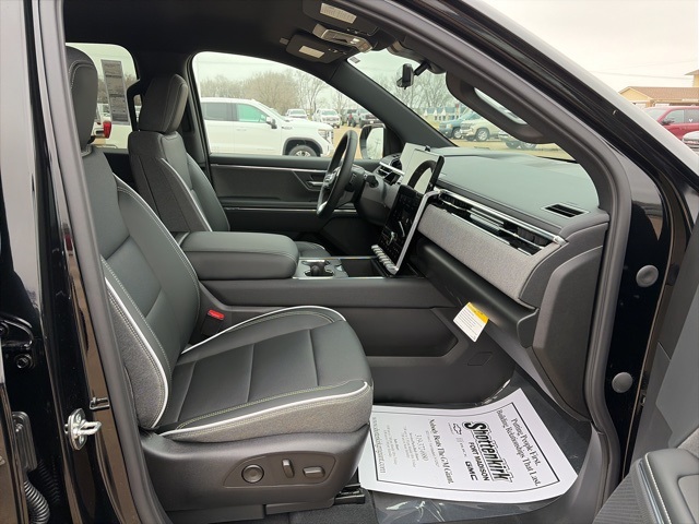 Navigation, Leather, Heated and cooled seats, Heated seats, Heated steering wheel, XM SIRIUS Radio, Push button start, Bluetooth, Rear Back Up Camera, Power driver's seat, Power passenger seat, Memory seats, Blind spot indicator, Convenience Package, Apple Car Play, LCD display screen, Onstar, Steering Wheel Controls, Alloy Wheels, Leather Interior, Lane Monitor, Adaptive Cruise, Sierra EV Elevation, 4D Crew Cab, Electric ZEV 645hp, 1-Speed Automatic, AWD, Onyx Black, After Dark w/CoreTec Seat Trim, 11.63 Axle Ratio, 2-Way Driver Power Lumbar Seat Adjuster, 4 Bed-Mounted 120-Volt Power Outlets, 4-Way Driver Power Lumbar Seat Adjuster, 4-Way Manual Front Passenger Seat Adjuster, 4-Way Power Front Passenger Lumbar Seat Adjuster, 4-Wheel Disc Brakes, 6 Speakers, 6-Speaker Audio System Feature, 8-Way Power Driver Seat Adjuster, 8-Way Power Front Passenger Seat Adjuster, ABS brakes, Air Conditioning, Alloy wheels, AM/FM radio: SiriusXM with 360L, Auto High-beam Headlights, Auto-dimming Rear-View mirror, Automatic temperature control, Bed View Camera, Bed-Mounted 240-Volt Power Outlet, Blind Zone Steering Assist, Blind Zone Steering Assist w/Trailering, Brake assist, Bumpers: body-color, Cargo Lamps, Comfort & Convenience Package, CoreTec Seat Trim, Delay-off headlights, Driver door bin, Driver vanity mirror, Dual front impact airbags, Dual front side impact airbags, Electronic stabiliy control, Emergency communication system: OnStar, Extended Range Battery Pack, Four wheel independent suspension, Front & Rear Park Assist, Front anti-roll bar, Front Bucket Seats, Front Bucket Seats w/Center Console, Front dual zone A/C, Front License Plate Kit, Front reading lights, Fully automatic headlights, Garage door transmitter, GM PowerUp 2 (J1772) Charger (LPO), Heated door mirrors, Heated Front Driver & Passenger Seats, Heated front seats, Heated Rear Outboard Passenger Cushion, Heated steering wheel, Inside Rear-View Auto-Dimming Mirror, Low tire pressure warning, Manual Folding Heated Outside Mirrors, Manual Tilt & Telescoping Steering Column, Memory Settings, MultiPro Midgate, Navigation System, Occupant sensing airbag, Outside Heated Power-Adjustable Mirrors, Outside temperature display, Overhead airbag, Overhead console, Panic alarm, Passenger door bin, Passenger vanity mirror, Power door mirrors, Power driver seat, Power steering, Power Tilt & Telescopic Steering Column, Power windows, Preferred Equipment Group 3SC, Premium 7-Speaker Bose Sound System, Premium audio system: Premium GMC Infotainment System, Premium Package, Radio data system, Radio: 16.8" Diagonal Premium GMC Infotainment Sys, Rain sensing wipers, Rear 60/40 Folding Bench Seat, Rear 60/40 Split Seat w/Center Armrest, Rear Camera Mirror, Rear fog lights, Rear reading lights, Rear seat center armrest, Rear step bumper, Rear window defroster, Remote keyless entry, Security system, SiriusXM w/360L Trial Subscription, Smart Trailer Integration Indicator, Speed control, Speed-sensing steering, Split folding rear seat, Sport steering wheel, Spray-On Pickup Bedliner, Standard Suspension, Steering wheel mounted audio controls, Technology Package, Telescoping steering wheel, Tilt steering wheel, Traction control, Trailer Camera Provisions, Trip computer, Variably intermittent wipers, Ventilated Driver & Front Passenger Seats, Wheels: 18" x 8.5" Aluminum Machined Face. 70/59 City/Highway MPG