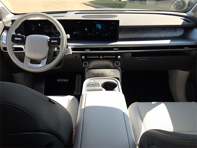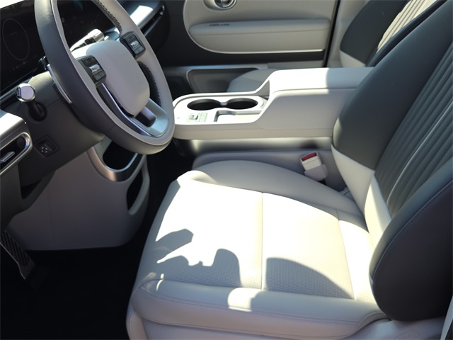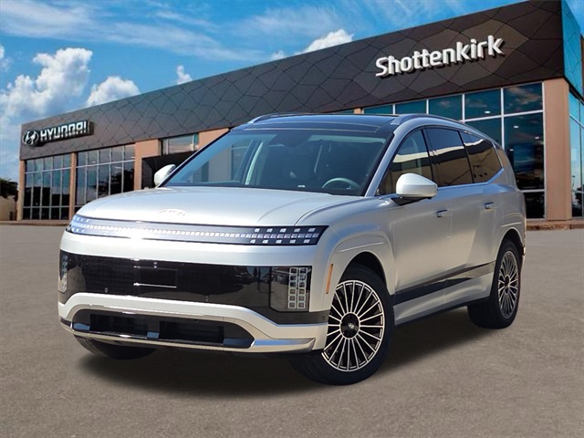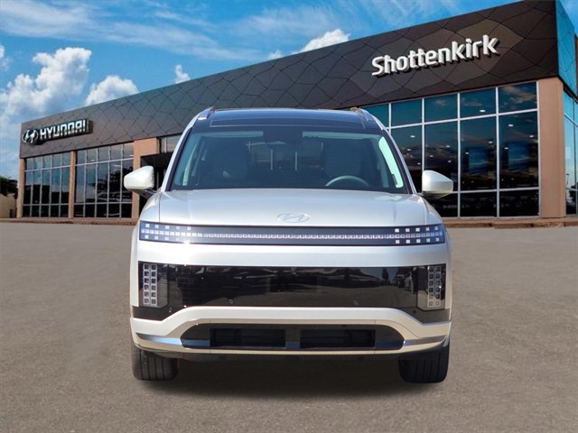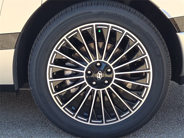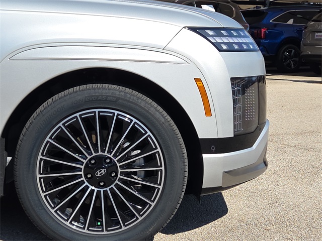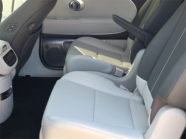 This vehicle comes well equipped with Option Group 01, 14 Speakers, 3rd row seats: split-bench, 4-Wheel Disc Brakes, ABS brakes, Air Conditioning, Alloy wheels, AM/FM radio: SiriusXM, Apple CarPlay & Android Auto, Auto High-beam Headlights, Auto-dimming Rear-View mirror, Auto-leveling suspension, Automatic temperature control, Bodyside moldings, Brake assist, Bumpers: body-color, Cargo Cover, Delay-off headlights, Driver door bin, Driver vanity mirror, Dual front impact airbags, Dual front side impact airbags, Electronic Stability Control, Emergency communication system: Bluelink+, Four wheel independent suspension, Front anti-roll bar, Front Bucket Seats, Front Center Armrest, Front dual zone A/C, Front reading lights, Fully automatic headlights, Garage door transmitter: HomeLink, Heads-Up Display, Heated & Ventilated Front Bucket Seats, Heated door mirrors, Heated front seats, Heated rear seats, Heated steering wheel, Illuminated entry, Leather steering wheel, Low tire pressure warning, Memory seat, Navigation System, Occupant sensing airbag, Outside temperature display, Overhead airbag, Overhead console, Panic alarm, Passenger door bin, Passenger vanity mirror, Power door mirrors, Power driver seat, Power Liftgate, Power moonroof: Panoramic, Power passenger seat, Power steering, Power windows, Premium Grade H-Tex Leatherette Seating Surfaces, Radio: AM/FM/SiriusXM/HD Audio System, Rain sensing wipers, Rear air conditioning, Rear anti-roll bar, Rear reading lights, Rear side impact airbag, Rear window defroster, Rear window wiper, Reclining 3rd row seat, Remote keyless entry, Security system, Speed control, Split folding rear seat, Spoiler, Steering wheel memory, Steering wheel mounted audio controls, Telescoping steering wheel, Tilt steering wheel, Traction control, Trip computer, Turn signal indicator mirrors, Variably intermittent wipers, Ventilated front seats, Ventilated rear seats, and Wheels: 21" x 9J Turbine Design.