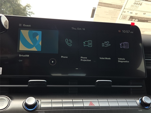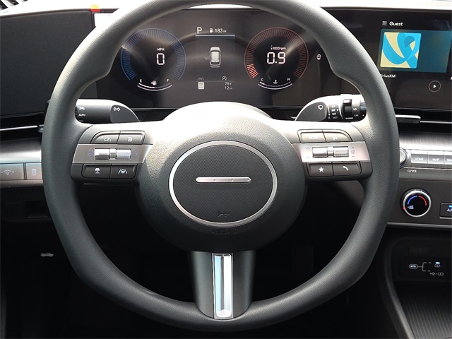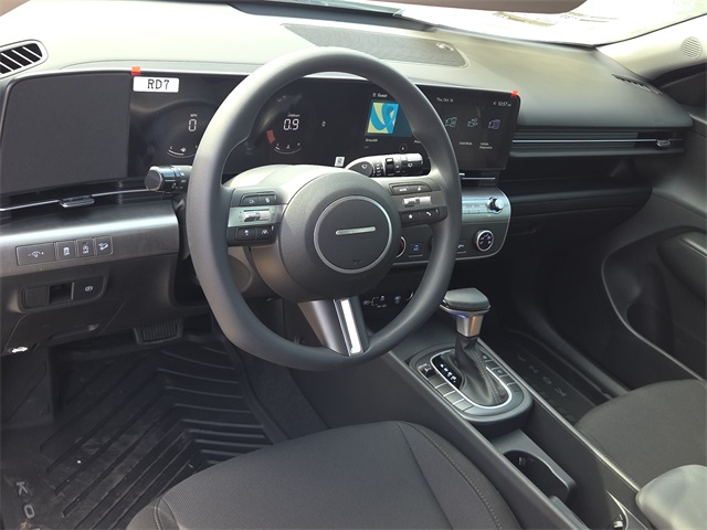 This vehicle comes well equipped with Option Group 01, 4-Wheel Disc Brakes, 6 Speakers, ABS brakes, Air Conditioning, All-Weather Fitted Liners, Alloy wheels, AM/FM radio: SiriusXM, Apple CarPlay & Android Auto, Auto High-beam Headlights, Brake assist, Bumpers: body-color, Cargo Blocks, Cargo Net, Carpeted Floor Mats, Cloth Seat Trim, Delay-off headlights, Driver door bin, Driver vanity mirror, Dual front impact airbags, Dual front side impact airbags, Electronic Stability Control, Emergency communication system: Bluelink+, Exterior Parking Camera Rear, First Aid Kit, Front anti-roll bar, Front Bucket Seats, Front Center Armrest, Front reading lights, Front wheel independent suspension, Fully automatic headlights, Illuminated entry, Low tire pressure warning, Occupant sensing airbag, Outside temperature display, Overhead airbag, Panic alarm, Passenger door bin, Passenger vanity mirror, Power door mirrors, Power steering, Power windows, Radio: AM/FM/SiriusXM/HD Radio Audio System, Rear window defroster, Rear window wiper, Remote keyless entry, Security system, Speed control, Speed-sensing steering, Split folding rear seat, Spoiler, Steering wheel mounted audio controls, Tachometer, Telescoping steering wheel, Tilt steering wheel, Traction control, Trip computer, Variably intermittent wipers, and Wheels: 17" x 7.0J Steel Gray Alloy. 29/34 City/Highway MPG