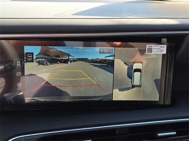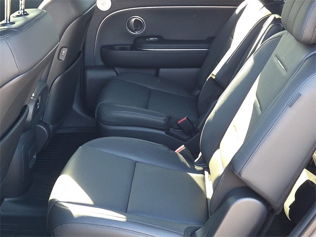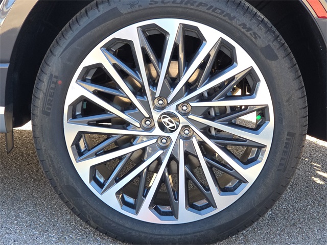 This vehicle comes well equipped with Option Group 01, 14 Speakers, 3rd row seats: split-bench, 4-Wheel Disc Brakes, ABS brakes, Air Conditioning, All-Season Fitted Liners, Alloy wheels, AM/FM radio: SiriusXM, Apple CarPlay & Android Auto, Audio memory, Auto High-beam Headlights, Auto-dimming door mirrors, Auto-dimming Rear-View mirror, Auto-leveling suspension, Automatic temperature control, Brake assist, Bumpers: body-color, Cargo Blocks, Cargo Cover, Cargo Net, Carpeted Floor Mats, Compass, Delay-off headlights, Driver door bin, Driver vanity mirror, Dual front impact airbags, Dual front side impact airbags, Electronic Stability Control, Emergency communication system: Bluelink+, Exterior Parking Camera Rear, First Aid Kit, Four wheel independent suspension, Front anti-roll bar, Front Bucket Seats, Front Center Armrest, Front dual zone A/C, Front reading lights, Fully automatic headlights, Garage door transmitter: HomeLink, Genuine wood console insert, Genuine wood dashboard insert, Heads-Up Display, Heated & Ventilated Front Bucket Seats, Heated door mirrors, Heated front seats, Heated rear seats, Heated steering wheel, HVAC memory, Illuminated entry, Knee airbag, Leather steering wheel, Low tire pressure warning, Memory seat, Navigation System, Occupant sensing airbag, Outside temperature display, Overhead airbag, Overhead console, Panic alarm, Passenger door bin, Passenger vanity mirror, Power door mirrors, Power driver seat, Power Liftgate, Power moonroof, Power passenger seat, Power steering, Power windows, Premium Nappa Leather Seat Trim, Radio data system, Radio: Infotainment Navigation System, Rain sensing wipers, Rear air conditioning, Rear anti-roll bar, Rear audio controls, Rear reading lights, Rear side impact airbag, Rear window defroster, Rear window wiper, Reclining 3rd row seat, Remote keyless entry, Roadside Assistance Kit, Security system, Speed control, Split folding rear seat, Spoiler, Steering wheel mounted audio controls, Tachometer, Telescoping steering wheel, Tilt steering wheel, Traction control, Trip computer, Turn signal indicator mirrors, Variably intermittent wipers, Ventilated front seats, Ventilated rear seats, and Wheels: 21" x 8.5J Alloy.