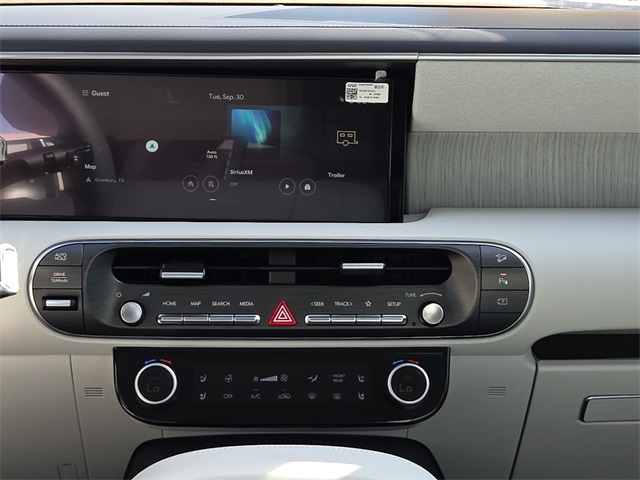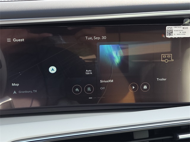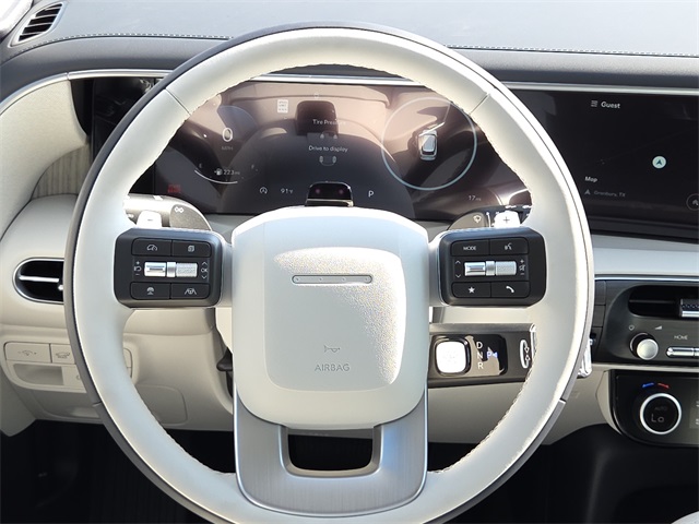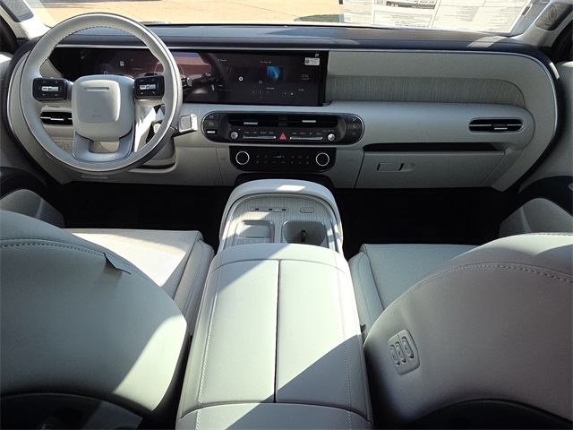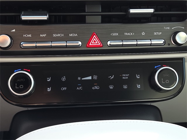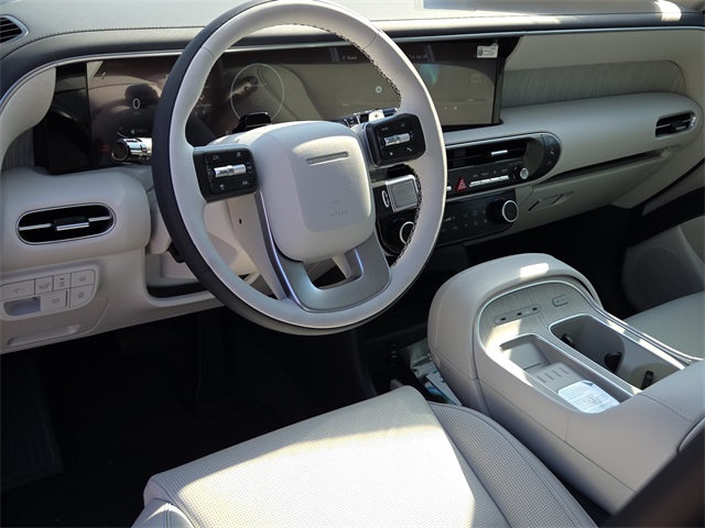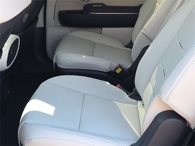 This vehicle comes well equipped with Option Group 01, 14 Speakers, 3rd row seats: split-bench, 4-Wheel Disc Brakes, ABS brakes, Air Conditioning, Alloy wheels, AM/FM radio: SiriusXM, Apple CarPlay & Android Auto, Audio memory, Auto High-beam Headlights, Auto-dimming door mirrors, Auto-dimming Rear-View mirror, Auto-leveling suspension, Automatic temperature control, Brake assist, Bumpers: body-color, Cargo Cover, Cargo Net, Cargo Tray, Carpeted Floor Mats, Compass, Delay-off headlights, Driver door bin, Driver vanity mirror, Dual front impact airbags, Dual front side impact airbags, Electronic Stability Control, Emergency communication system: Bluelink+, Exterior Parking Camera Rear, Four wheel independent suspension, Front anti-roll bar, Front Bucket Seats, Front Center Armrest, Front dual zone A/C, Front reading lights, Fully automatic headlights, Garage door transmitter: HomeLink, Genuine wood console insert, Genuine wood dashboard insert, Heads-Up Display, Heated & Ventilated Front Bucket Seats, Heated door mirrors, Heated front seats, Heated rear seats, Heated steering wheel, HVAC memory, Illuminated entry, Knee airbag, Leather steering wheel, Low tire pressure warning, Memory seat, Navigation System, Occupant sensing airbag, Outside temperature display, Overhead airbag, Overhead console, Panic alarm, Passenger door bin, Passenger vanity mirror, Power door mirrors, Power driver seat, Power Liftgate, Power moonroof, Power passenger seat, Power steering, Power windows, Premium Nappa Leather Seat Trim, Radio data system, Radio: Infotainment Navigation System, Rain sensing wipers, Rear air conditioning, Rear anti-roll bar, Rear audio controls, Rear reading lights, Rear side impact airbag, Rear window defroster, Rear window wiper, Reclining 3rd row seat, Remote keyless entry, Security system, Speed control, Split folding rear seat, Spoiler, Steering wheel mounted audio controls, Tachometer, Telescoping steering wheel, Tilt steering wheel, Traction control, Trip computer, Turn signal indicator mirrors, Variably intermittent wipers, Ventilated front seats, Ventilated rear seats, and Wheels: 21" x 8.5J Alloy.