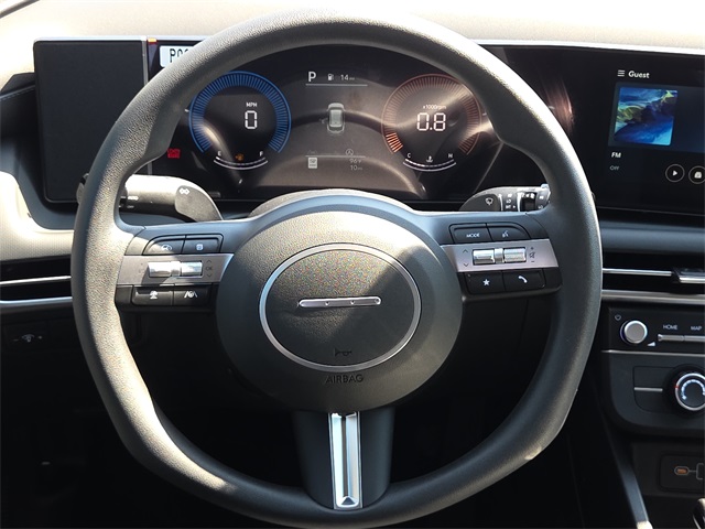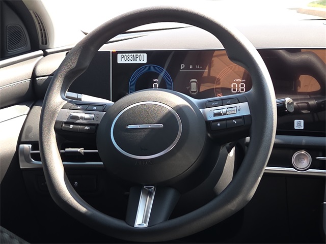 This vehicle comes well equipped with Option Group 01, 17" x 7.0J Alloy Wheels, 4-Wheel Disc Brakes, 6 Speakers, ABS brakes, Air Conditioning, Alloy wheels, AM/FM radio: SiriusXM, Apple CarPlay & Android Auto, Auto High-beam Headlights, Brake assist, Bumpers: body-color, Cargo Blocks, Cargo Net, Cargo Tray, Carpeted Floor Mats, Delay-off headlights, Driver door bin, Driver vanity mirror, Dual front impact airbags, Dual front side impact airbags, Electronic Stability Control, Emergency communication system: Bluelink+, First Aid Kit, Four wheel independent suspension, Front anti-roll bar, Front Bucket Seats, Front Center Armrest, Front reading lights, Fully automatic headlights, Illuminated entry, Low tire pressure warning, Occupant sensing airbag, Outside temperature display, Overhead airbag, Overhead console, Panic alarm, Passenger door bin, Passenger vanity mirror, Power door mirrors, Power steering, Power windows, Radio data system, Radio: AM/FM/HD Audio System, Rear anti-roll bar, Rear reading lights, Rear seat center armrest, Rear side impact airbag, Rear window defroster, Rear window wiper, Remote keyless entry, Roadside Assistance Kit, Security system, Speed control, Split folding rear seat, Spoiler, Stain & Odor Resistant Cloth Seat Trim, Steering wheel mounted audio controls, Tachometer, Telescoping steering wheel, Tilt steering wheel, Tow Hitch, Traction control, Trip computer, and Variably intermittent wipers. 25/33 City/Highway MPG