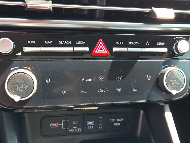 This vehicle comes well equipped with Option Group 01, 18" x 7.5J Alloy Wheels, 4-Wheel Disc Brakes, 6 Speakers, ABS brakes, Air Conditioning, Alloy wheels, AM/FM radio: SiriusXM, Apple CarPlay & Android Auto, Auto High-beam Headlights, Auto-dimming Rear-View mirror, Automatic temperature control, Brake assist, Bumpers: body-color, Cargo Blocks, Cargo Cover, Cargo Net, Cargo Tray, Carpeted Floor Mats, Delay-off headlights, Driver door bin, Driver vanity mirror, Dual front impact airbags, Dual front side impact airbags, Electronic Stability Control, Emergency communication system: Bluelink+, First Aid Kit, Four wheel independent suspension, Front and Rear Mudguards, Front anti-roll bar, Front Bucket Seats, Front Center Armrest, Front dual zone A/C, Front reading lights, Fully automatic headlights, H-Tex Leatherette Seat Trim, Heated door mirrors, Heated Front Bucket Seats, Heated front seats, Illuminated entry, Leather Shift Knob, Leather steering wheel, Low tire pressure warning, Navigation System, Occupant sensing airbag, Outside temperature display, Overhead airbag, Overhead console, Panic alarm, Passenger door bin, Passenger vanity mirror, Power door mirrors, Power driver seat, Power Liftgate, Power moonroof, Power steering, Power windows, Radio data system, Radio: AM/FM/HD Audio System, Rear anti-roll bar, Rear reading lights, Rear seat center armrest, Rear side impact airbag, Rear window defroster, Rear window wiper, Remote keyless entry, Roof Rack Cross Rails, Security system, Speed control, Split folding rear seat, Spoiler, Steering wheel mounted audio controls, Tachometer, Telescoping steering wheel, Tilt steering wheel, Traction control, Trip computer, Turn signal indicator mirrors, and Variably intermittent wipers. 25/33 City/Highway MPG