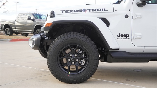 This Gladiator Texas Trail comes well equipped with Convenience Group (Air Conditioning with Auto Temp Control, Cluster 7.0" TFT Color Display, Corning Gorilla Glass, Daytime Running Lamp System, Emergency/Assistance Call, Front Door Locks 2-Door Passive Entry, Heated Front Seats, Heated Steering Wheel, Remote Start System, and Universal Garage Door Opener), LED Headlamp and Fog Lamp Group (Daytime Running Lamps LED Accents, Front LED Fog Lamps, and LED Premium Reflector Headlamps), Quick Order Package 24J Texas Trail (2-Piece Body Color Fender Flares, Advanced Brake Assist, Automatic Headlamps, Body Color 3-Piece Hard Top, Central ADAS Decision Module (CADM), Deep Tint Sunscreen Windows, Freedom Panel Storage Bag, Full Length Floor Console Premium Armrest, Full Speed Forward Collision Warning Plus, Hard Seat Back, Leather Wrapped Park Brake Handle, Leather Wrapped Shift Knob, Power 4-Way Driver Lumbar Adjust, Power 4-Way Passenger Lumbar Adjust, Power Adjust 8-Way Driver Seat, Power Adjust 8-Way Front Passenger Seat, Power Heated Mirrors, Premium Door Trim Panel, Premium McKinley Trimmed Seats, Premium Wrapped Steering Wheel, Rear Armrest with Cupholder Seat, Rear Sliding Window, Rear Window Defroster, Security Alarm, Side Steps, Sun Visors with Illuminated Vanity Mirrors, Texas Trail, Texas Trail Tailgate and Hood Decals, Wheels: 17" x 7.5" Painted Black, and Willys Suspension), 110 Mph Vehicle Max Speed Calibration, 12.3" Touchscreen Display, 3.73 Rear Axle Ratio, 4-Wheel Disc Brakes, 4G LTE Wi-Fi Hot Spot, 8 Speakers, ABS brakes, Air Conditioning, Alexa Built-in, AM/FM radio: SiriusXM with 360L, Apple CarPlay, Apple CarPlay/Android Auto, Brake assist, Compass, Connectivity - US/Canada, Delay-off headlights, Driver door bin, Driver vanity mirror, Dual front impact airbags, Dual front side impact airbags, Electronic Stability Control, Front anti-roll bar, Front Bucket Seats, Front Center Armrest w/Storage, Front fog lights, Front License Plate Bracket, Front reading lights, Google Android Auto, Illuminated entry, Integrated roll-over protection, Low tire pressure warning, Normal Duty Suspension, Occupant sensing airbag, Outside temperature display, Overhead airbag, Panic alarm, ParkView Rear Back-Up Camera, Passenger door bin, Passenger vanity mirror, Power steering, Power windows, Radio data system, Radio: Uconnect 5 with 12.3" Display, Rear anti-roll bar, Rear reading lights, Remote keyless entry, Speed control, Split folding rear seat, Steering wheel mounted audio controls, Tachometer, Telescoping steering wheel, Tilt steering wheel, Traction control, Trip computer, USB Host Flip, Variably intermittent wipers, Voltmeter, and Wheels: 17" x 7.5" Black Steel Styled.