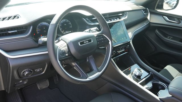 This Grand Cherokee Laredo X comes well equipped with Quick Order Package 22J Laredo X (115V Auxiliary Power Outlet, Heated Front Seats, Heated Steering Wheel, Power Liftgate, Power Sunroof, Rain Sensitive Windshield Wipers, Remote Start System, Selectable Tire Fill Alert, and Wireless Charging Pad), 3.45 Rear Axle Ratio, 4-Wheel Disc Brakes, 4G LTE Wi-Fi Hot Spot, 6 Speakers, ABS brakes, Air Conditioning, Alloy wheels, AM/FM radio: SiriusXM, Anti-whiplash front head restraints, Apple CarPlay, AppLink/Apple CarPlay and Android Auto, Automatic temperature control, Auxiliary Battery, Brake assist, Bumpers: body-color, Cloth Seats, Compass, Connectivity - US/Canada, Delay-off headlights, Disassociated Touchscreen Display, Driver door bin, Driver vanity mirror, Dual front impact airbags, Dual front side impact airbags, Electronic Stability Control, Emergency communication system, For Details, Visit DriveUconnect.com, Four wheel independent suspension, Front anti-roll bar, Front Bucket Seats, Front Center Armrest w/Storage, Front dual zone A/C, Front License Plate Bracket, Front reading lights, Fully automatic headlights, Global Telematics Box Module (TBM), Gloss Black Exterior Mirrors, Google Android Auto, GPS Antenna Input, Heated door mirrors, Heated Exterior Mirrors, Illuminated entry, Integrated Center Stack Radio, Integrated Voice Command with Bluetooth, Knee airbag, Low tire pressure warning, Manual Folding Exterior Mirrors, Normal Duty Suspension, Occupant sensing airbag, Outside temperature display, Overhead airbag, Overhead console, Panic alarm, ParkView Rear Back-Up Camera, Passenger door bin, Passenger vanity mirror, Power door mirrors, Power driver seat, Power steering, Power windows, Radio data system, Radio: Uconnect 5 with 8.4" Display, Rear anti-roll bar, Rear reading lights, Rear window defroster, Rear window wiper, Remote keyless entry, Security system, Speed control, Speed-Sensitive Wipers, Split folding rear seat, Spoiler, Steering wheel mounted audio controls, Tachometer, Telescoping steering wheel, Tilt steering wheel, Traction control, Trip computer, USB Host Flip, Variably intermittent wipers, Voltmeter, and Wheels: 18" x 8.0" Fully Painted AluminuM.