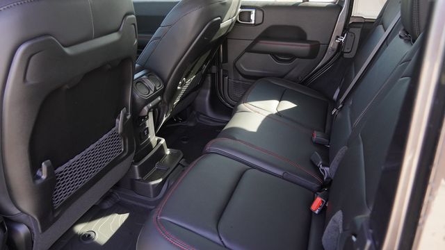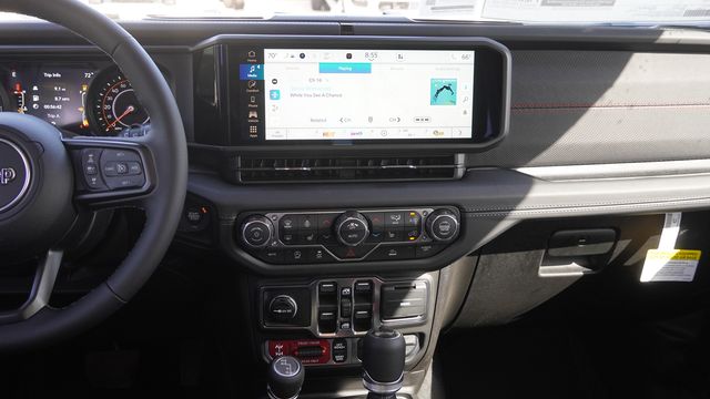 This Wrangler Rubicon comes well equipped with Convenience Group (Heated Front Seats, Heated Steering Wheel, and Universal Garage Door Opener), Quick Order Package 24R Rubicon, Steel Performance Hood Package (Performance Hood), 12.3" Touchscreen Display, 4-Wheel Disc Brakes, 4.10 Rear Axle Ratio, 4G LTE Wi-Fi Hot Spot, 8 Speakers, ABS brakes, Air Conditioning, Alloy wheels, AM/FM radio: SiriusXM with 360L, Apple CarPlay, Apple CarPlay/Android Auto, Automatic temperature control, Aux Battery, Auxiliary Switches, Body Color 3-Piece Hard Top, Body Color Rubicon Highline Flare, Brake assist, Class II Receiver Hitch, Cloth Low-Back Bucket Seats, Compass, Connectivity - US/Canada, Delay-off headlights, Driver door bin, Driver vanity mirror, Dual front impact airbags, Dual front side impact airbags, Electronic Stability Control, Emergency communication system: Jeep Connect, For More Info, Call 800-643-2112, Freedom Panel Storage Bag, Front anti-roll bar, Front Bucket Seats, Front Center Armrest w/Storage, Front dual zone A/C, Front fog lights, Front License Plate Bracket, Front reading lights, Fully automatic headlights, Google Android Auto, Heated door mirrors, Illuminated entry, Integrated Center Stack Radio, Integrated roll-over protection, Low tire pressure warning, MOPAR All-Weather Floor Mats, No Soft Top, Non-Lock Fuel Cap Without Discriminator, Occupant sensing airbag, Outside temperature display, Overhead airbag, Panic alarm, ParkView Rear Back-Up Camera, Passenger door bin, Passenger vanity mirror, Performance Suspension, Power door mirrors, Power steering, Power windows, Radio data system, Radio: Uconnect 5 with 12.3" Display, Rear anti-roll bar, Rear reading lights, Rear Window Defroster, Rear Window Wiper/Washer, Remote keyless entry, Security system, SiriusXM Radio Service, SiriusXM with 360L, Speed control, Split folding rear seat, Steering wheel mounted audio controls, Stop-Start Dual Battery System, Tachometer, Telescoping steering wheel, Tilt steering wheel, Traction control, Trip computer, Variably intermittent wipers, Voltmeter, and Wheels: 17" x 7.5" Machined/Painted Black.