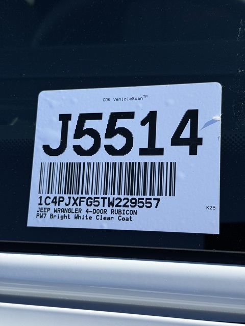 bright white clearcoat 2026 Jeep Wrangler Rubicon 4D Sport Utility Rubicon 8-Speed Automatic 3.6L V6 24V VVT 4WD PRICE REDUCED TO SELL BY MONTH END, 12.3" Touchscreen Display, 4-Wheel Disc Brakes, 4G LTE Wi-Fi Hot Spot, 8 Speakers, ABS brakes, Air Conditioning, Alpine Premium Audio System, AM/FM radio: SiriusXM with 360L, Apple CarPlay, Apple CarPlay/Android Auto, Auto High Beam Headlamp Control, Auto-Dimming Rear-View Mirror, Automatic temperature control, Aux Battery, Auxiliary Switches, Blind Spot and Cross Path Detection, Body Color 3-Piece Hard Top, Body Color Rubicon Highline Flare, Brake assist, Class II Receiver Hitch, Cloth Low-Back Bucket Seats, Compass, Connected Travel and Traffic Services, Connectivity - US/Canada, Convenience Group, Delay-off headlights, Driver door bin, Driver vanity mirror, Dual front impact airbags, Dual front side impact airbags, Electronic Stability Control, Emergency communication system: Jeep Connect, For More Info, Call 800-643-2112, Freedom Panel Storage Bag, Front anti-roll bar, Front Bucket Seats, Front Center Armrest w/Storage, Front dual zone A/C, Front fog lights, Front reading lights, Fully automatic headlights, Google Android Auto, GPS Navigation, HD Radio, Heated door mirrors, Heated Front Seats, Heated Steering Wheel, Illuminated entry, Integrated Center Stack Radio, Integrated Off-Road Camera, Integrated roll-over protection, Integrated Voice Command with Bluetooth, Jeep Trail Rated Kit, Low tire pressure warning, MOPAR All-Weather Floor Mats, Non-Lock Fuel Cap Without Discriminator, Occupant sensing airbag, Outside temperature display, Overhead airbag, Panic alarm, ParkSense Rear Park Assist System, ParkView Rear Back-Up Camera, Passenger door bin, Passenger vanity mirror, Performance Suspension, Power door mirrors, Power steering, Power windows, Quick Order Package 24R Rubicon, Radio data system, Radio: Uconnect 5 Navigation with 12.3" Display, Radio: Uconnect 5 with 12.3" Display, Rear anti-roll bar, Rear reading lights, Rear Window Defroster, Rear Window Wiper/Washer, Remote keyless entry, Safety Group, Security system, SiriusXM Radio Service, SiriusXM with 360L, Speed control, Split folding rear seat, Steel Bumper Group, Steel Front Bumper, Steel Rear Bumper, Steering wheel mounted audio controls, Stop-Start Dual Battery System, Tachometer, Technology Group, Telescoping steering wheel, Tilt steering wheel, Traction control, Trip computer, Universal Garage Door Opener, Variably intermittent wipers, Voltmeter.