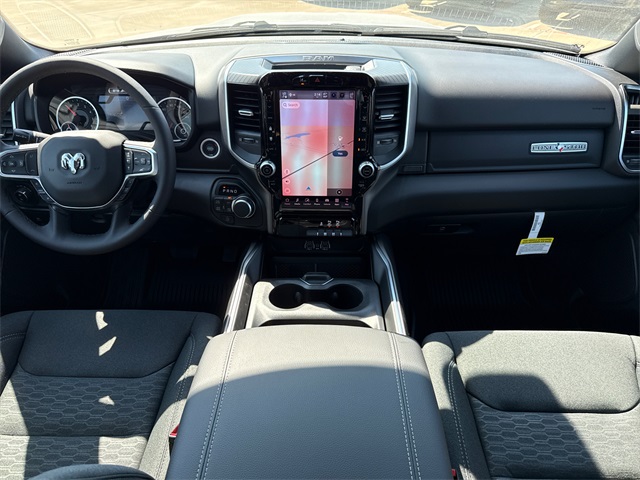 This 1500 Big Horn/Lone Star comes well equipped with ABS brakes, Active Cruise Control, Alloy wheels, Compass, Electronic Stability Control, Heated door mirrors, Illuminated entry, Low tire pressure warning, Manual Folding Exterior Mirrors, ParkView Rear Back-Up Camera, Remote keyless entry, Traction control, 3 Rear Seat Head Restraints, 3.21 Rear Axle Ratio, 4 Way Front Headrests, 4-Wheel Disc Brakes, 48V Belt Starter Generator, 4G LTE Wi-Fi Hot Spot, 6 Speakers, Air Conditioning, AM/FM radio, Apple CarPlay, Apple CarPlay/Android Auto, Auto High-beam Headlights, Black Exterior Mirrors, Brake assist, Bucket Seats, Bumpers: chrome, Center Console Parts Module, Cloth Bucket Seats, Connectivity - US/Canada, Convex Wide-Angle Exterior Mirror Insert, Delay-off headlights, Driver door bin, Dual front impact airbags, Dual front side impact airbags, Exterior Mirrors w/Heating Element, Front anti-roll bar, Front Bucket Seats, Front Center Armrest w/Storage, Front fog lights, Front reading lights, Front wheel independent suspension, Full Length Floor Console, Fully automatic headlights, Global Telematics Box Module (TBM), Google Android Auto, GPS Antenna Input, Integrated Center Stack Radio, Integrated Voice Command w/Bluetooth, Manual Adjust 4-Way Driver Seat, Manual Adjust 4-Way Front Passenger Seat, Occupant sensing airbag, Outside temperature display, Overhead airbag, Overhead console, Panic alarm, Passenger door bin, Passenger vanity mirror, Power door mirrors, Power steering, Power windows, Radio data system, Radio: Uconnect 5 W w/8.4" Display, RAM Grille Badge - Chrome, Rear anti-roll bar, Rear step bumper, Speed control, Supplier Part Tracking (J-1), Tachometer, Telescoping steering wheel, Tilt steering wheel, Trip computer, USB Host Flip, Variably intermittent wipers, Voltmeter, and Wheels: 18" x 8" Cast-Aluminum Painted.
