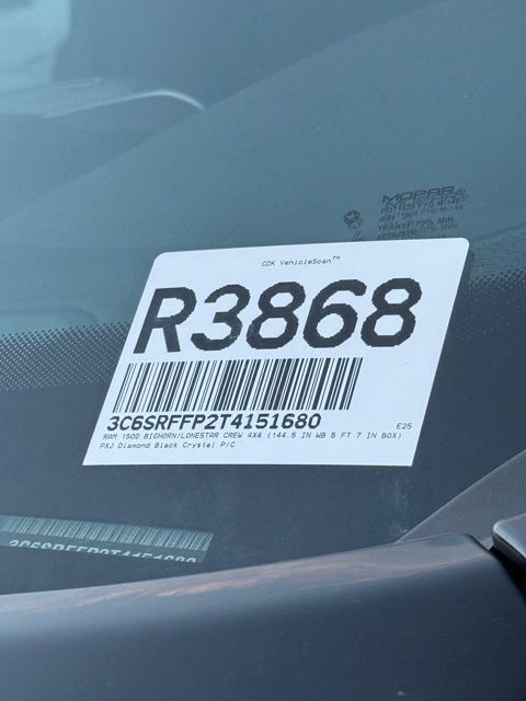 Diamond Black Crystal Pearlcoat 2026 Ram 1500 Big Horn/Lone Star 4D Crew Cab Big Horn/Lone Star 8-Speed Automatic 3.0L I6 4WD PRICE REDUCED TO SELL BY MONTH END, 115V Auxiliary Power Outlet, 3 Rear Seat Head Restraints, 4 Way Front Headrests, 4-Wheel Disc Brakes, 400W Inverter, 48V Belt Starter Generator, 4G LTE Wi-Fi Hot Spot, 6 Speakers, ABS brakes, Air Conditioning, AM/FM radio, Apple CarPlay, Apple CarPlay/Android Auto, Auto High-beam Headlights, Auto Power-Folding Mirrors, Auto-Dimming Exterior Driver Mirror, Auto-Dimming Rear-View Mirror, Big Horn Level 1 Equipment Group, Black Exterior Mirrors, Black Premium Power Mirrors, Body Color Fender Flares, Brake assist, Bucket Seats, Bumpers: chrome, Center Console Parts Module, Cloth Bucket Seats, Compass, Connectivity - US/Canada, Convex Wide-Angle Exterior Mirror Insert, Delay-off headlights, Deluxe Cloth Bucket Seats, Driver door bin, Dual front impact airbags, Dual front side impact airbags, Electronic Stability Control, Exterior Mirrors Courtesy Lamps, Front anti-roll bar, Front Bucket Seats, Front Center Armrest w/Storage, Front fog lights, Front reading lights, Front Seat Back Map Pockets, Front wheel independent suspension, Full Length Floor Console, Fully automatic headlights, Glove Box Lamp, Google Android Auto, GPS Antenna Input, Heated door mirrors, Heated Front Seats, Heated Steering Wheel, Illuminated entry, Integrated Center Stack Radio, Leather Wrapped Steering Wheel, Low tire pressure warning, Manual Adjust 4-Way Driver Seat, Manual Adjust 4-Way Front Passenger Seat, Manual Folding Exterior Mirrors, Occupant sensing airbag, Outside temperature display, Overhead airbag, Overhead console, Panic alarm, ParkView Rear Back-Up Camera, Passenger door bin, Passenger vanity mirror, Power 2-Way Driver Lumbar Adjust, Power Adjust 8-Way Driver Seat, Power Adjustable Pedals, Power door mirrors, Power steering, Power windows, Quick Order Package 21Z Big Horn, Radio data system, RAM Grille Badge - Chrome, Rear 60/40 Folding Seat, Rear anti-roll bar, Rear Center Armrest, Rear Power Sliding Window, Rear step bumper, Rear Wheelhouse Liners, Rear Window Defroster, Remote keyless entry, SiriusXM Radio Service, SiriusXM Satellite Radio, Speed control, Steering Wheel Mounted Audio Controls, Supplier Part Tracking (J-1), Tachometer, Telescoping steering wheel, Tilt steering wheel, Traction control, Trip computer, Universal Garage Door Opener, USB Host Flip, Variably intermittent wipers, Voltmeter.