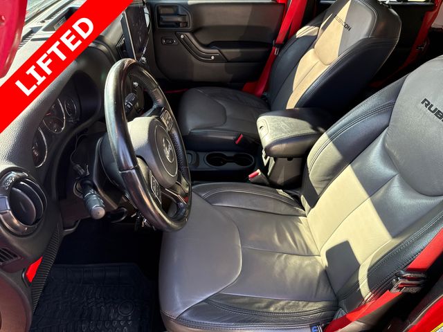 BLUETOOTH, ALLOY WHEELS, HEATED FRONT SEATS, TOW HITCH, LOCAL TRADE IN, WELL MAINTAINED. This vehicle comes well equipped with Connectivity Group (Remote USB Port, Tire Pressure Monitoring Display, Uconnect Voice Command w/Bluetooth, and Vehicle Information Center), Max Tow Package (Class II Receiver Hitch and Trailer Tow w/4-Pin Connector Wiring), Quick Order Package 24Z Rubicon Recon (Accent Stitching, Air Conditioning w/Auto Temperature Control, Air Filtering, Black Fuel Filler Door, Dana 44/226MM Rear Axle, Dana M44/216MM Front Axle, HD Rock Rails w/Step Pad, Heated Front Seats, Hood w/Power Dome, Humidity Sensor, Jeep Trail Rated Kit, Logloss Granite Crystal Jeep Badge, Low Gloss Black Wrangler Decal, Midnight Star Interior Accents, MOPAR Black Tail Lamp Guards, MOPAR Coat Hooks & Grab Handles, MOPAR Slush Mats w/Red Accents, Premium Black Sunrider Soft Top, Premium EVIC Message Center, R1234YF A/C Refrigerant, Recon Badge, Recon Decals, Recon Grille, Recon Leather Seats, Red Front & Rear Tow Hooks, Red Seat Belts, Red Switches, Red Trail Rated Badge, Remote Start System, Steel Front Bumper, Steel Rear Bumper, and Wheels: 17" x 7.5" Granite Crystal Aluminum), Recon Package, 17" x 7.5" Polished Mineral Gray Wheels, 4-Wheel Disc Brakes, 4.10 Rear Axle Ratio, 40GB Hard Drive w/28GB Available, 5-Year SiriusXM Travel Link Service, 6.5" Touchscreen Display, 8 Speakers, ABS brakes, Add 4.10 Axle Ratio, Air Conditioning, Alloy wheels, Alpine 9-Speaker w/All Weather Subwoofer, AM/FM radio: SiriusXM, Audio Jack Input for Mobile Devices, Auto-dimming Rear-View mirror, Black 3-Piece Hard Top, Brake assist, CD player, Cloth Seats w/Adjustable Head Restraints, Compass, Delete Sunrider Soft Top, Driver door bin, Driver vanity mirror, Dual front impact airbags, Electronic Stability Control, Freedom Panel Storage Bag, Front anti-roll bar, Front Bucket Seats, Front Center Armrest w/Storage, Front fog lights, Front reading lights, Fully automatic headlights, GPS Navigation, Heated door mirrors, Illuminated entry, Integrated roll-over protection, Leather steering wheel, Low tire pressure warning, Manufacturer's Statement of Origin, Occupant sensing airbag, Outside temperature display, Oversize Spare Tire Carrier, Panic alarm, Passenger door bin, Passenger vanity mirror, Performance Suspension, Power door mirrors, Power steering, Power windows, Radio data system, Radio: 130, Radio: 430 Nav, Rear anti-roll bar, Rear Window Defroster, Rear Window Wiper/Washer, Remote keyless entry, Security system, SiriusXM Travel Link, Speed control, Split folding rear seat, Steering wheel mounted audio controls, Swing Gate Reinforcement, Tachometer, Tilt steering wheel, Traction control, Trip computer, and Variably intermittent wipers.