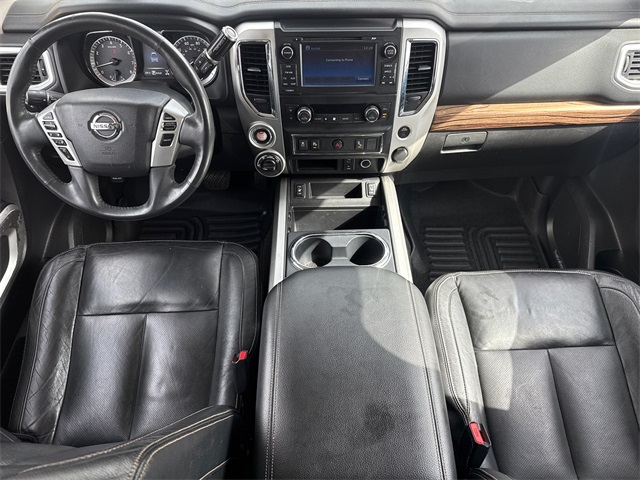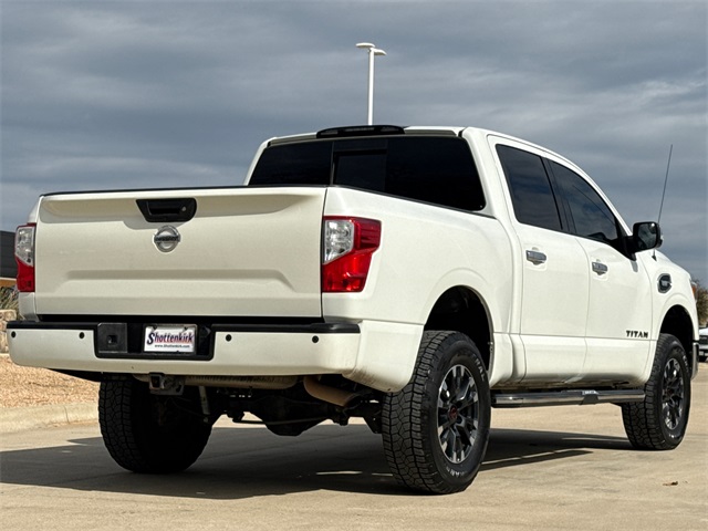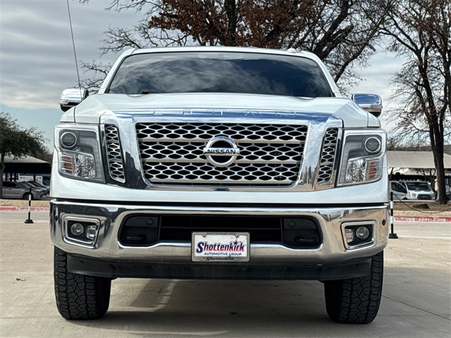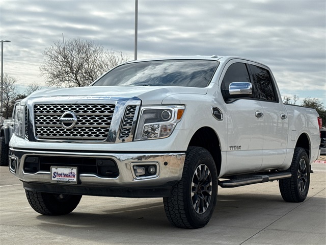 Clean CARFAX. 2017 Nissan Titan SL 4D Crew Cab Pearl White Metallic 5.6L V8 7-Speed Automatic 4WD This vehicle comes well equipped with Titan SL, 4D Crew Cab, 5.6L V8, 7-Speed Automatic, 4WD, Pearl White Metallic, and Black Leather Titan SL, 4D Crew Cab, 5.6L V8, 7-Speed Automatic, 4WD, Pearl White Metallic, Black Leather, 12 Speakers, 2.937 Axle Ratio, 4-Wheel Disc Brakes, ABS brakes, Activation Disclaimer, Air Conditioning, Alloy wheels, AM/FM radio: SiriusXM, Auto tilt-away steering wheel, Auto-dimming door mirrors, Auto-dimming Rear-View mirror, Automatic temperature control, Blind Spot Warning, Brake assist, Bumpers: chrome, CD player, Compass, Delay-off headlights, Driver door bin, Driver vanity mirror, Dual front impact airbags, Dual front side impact airbags, Electronic Stability Control, Emergency communication system: NissanConnect Services, Front anti-roll bar, Front Bucket Seats, Front Center Armrest, Front dual zone A/C, Front fog lights, Front reading lights, Front wheel independent suspension, Garage door transmitter: HomeLink, Heated door mirrors, Heated Front Captain's Chairs, Heated front seats, Illuminated entry, Leather Seat Trim, Leather steering wheel, Low tire pressure warning, Memory seat, Navigation System, Occupant sensing airbag, Outside temperature display, Overhead airbag, Overhead console, Panic alarm, Passenger door bin, Passenger vanity mirror, Power door mirrors, Power driver seat, Power passenger seat, Power steering, Power windows, Radio data system, Radio: NissanConnect w/SiriusXM/Navi & Mobile Apps, Rain sensing wipers, Rear anti-roll bar, Rear seat center armrest, Rear Seat Storage Compartment, Rear step bumper, Rear window defroster, Remote keyless entry, Running Boards (B12), Security system, Speed control, Speed-sensing steering, Speed-Sensitive Wipers, Split folding rear seat, Steering wheel memory, Steering wheel mounted audio controls, Tachometer, Telescoping steering wheel, Tilt steering wheel, Traction control, Trip computer, Turn signal indicator mirrors, Variably intermittent wipers, Voltmeter, and Wheels: 20" x 8" Painted Alloy. For more information contact one of our Internet Managers at 682-498-8390 to set up your VIP Test Drive.. At SHOTTENKIRK CDJR Granbury located in Granbury, TX all of our Pre-Owned vehicles go through a 100 point plus inspection. The oil and filter are changed, complete brake inspection, tire rotation, safety inspection and all fluid levels are topped off. If we find anything that needs attention we address the issue and fix it. So buy with confidence that you are getting a quality vehicle. We can do a complete walk around for you over the phone. Trade ins are always welcomed. We offer financing from over 25 finance and credit unions locally and nationally. SHOTTENKIRK CDJR 4970 E HWY 377 GRANBURY TEXAS 76049.