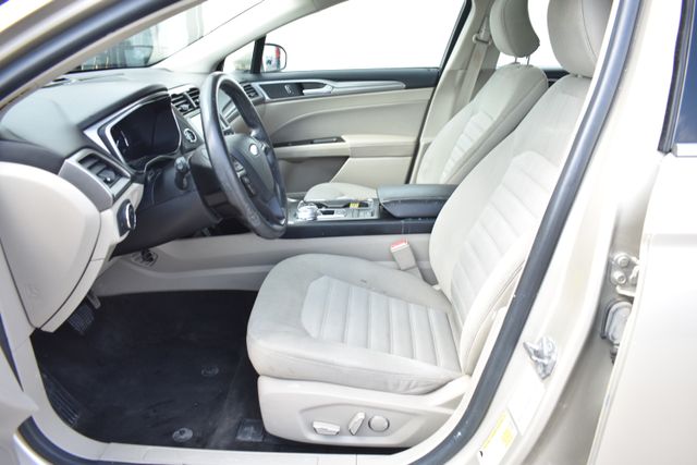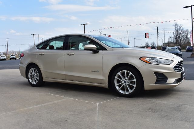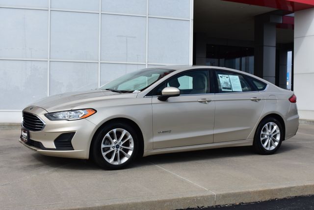 2019 Ford Fusion Hybrid White Gold Metallic SE I4 Hybrid eCVT FWD Navigation, Sunroof/Moonroof, Backup Camera, Fusion Hybrid SE, eCVT, FWD, White Gold Metallic, Medium Light Stone Cloth, 9 Speakers, ABS brakes, Air Conditioning, Alloy wheels, AM/FM radio: SiriusXM, Automatic temperature control, Bumpers: body-color, Cloth Front Bucket Seats, Compass, Driver door bin, Driver vanity mirror, Exterior Parking Camera Rear, Front Bucket Seats, Front Center Armrest, Front dual zone A/C, Front reading lights, Fully automatic headlights, Illuminated entry, Lane Departure Warning System, Low tire pressure warning, Navigation System, Outside temperature display, Overhead console, Passenger door bin, Passenger vanity mirror, Power door mirrors, Power driver seat, Power Moonroof, Power passenger seat, Power steering, Power windows, Radio data system, Rear Parking Sensors, Rear seat center armrest, Rear window defroster, Remote keyless entry, Security system, Speed control, Split folding rear seat, Steering wheel mounted audio controls, Telescoping steering wheel, Tilt steering wheel, Traction control, Variably intermittent wipers.