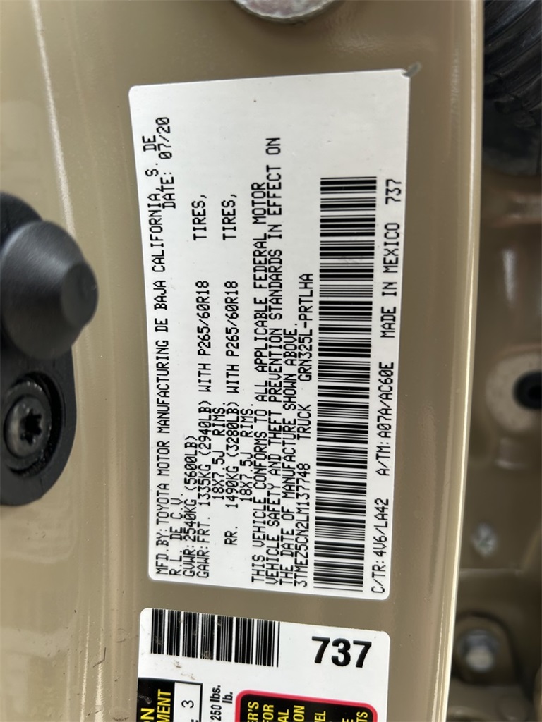 2020 Quicksand Toyota Tacoma 3.5L V6 PDI DOHC 24V LEV3-ULEV70 278hp RWD Limited