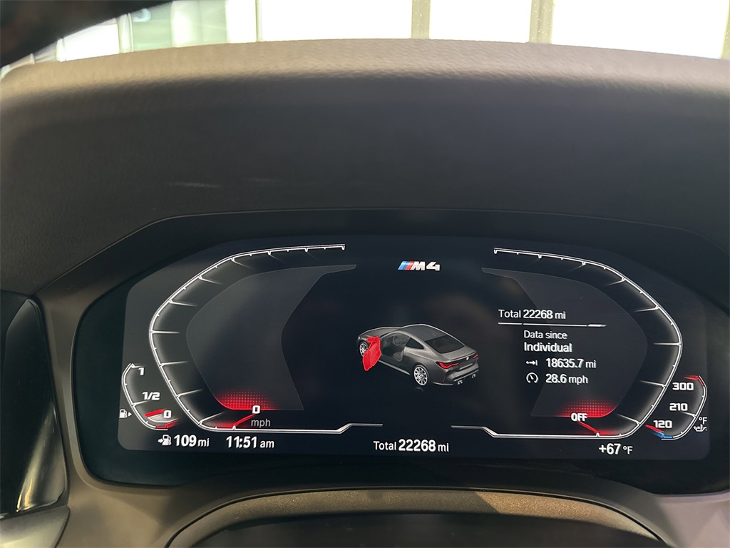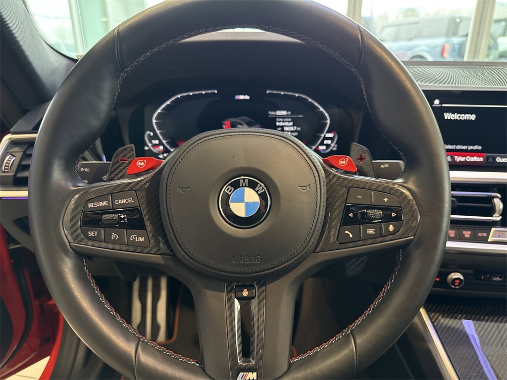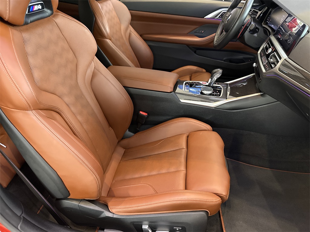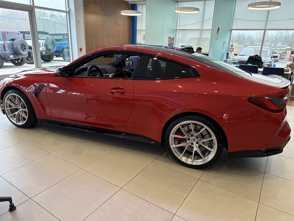 ** Super Clean **, **Local Trade In**, **One Owner**, **Clean Carfax**, **Low Mileage**, **Leather interior**, **Heated Seats, **Front bucket seats with center console**, Apple car play/ Android auto, **Bluetooth/Hands Free**, **Rear back up camera**, **Reverse Sensing System**, **Blind Spot Detection**, **Lane monitor**, **GPS/ Navigation**, **SIRIUS SAT. RADIO**, **Upgraded wheels and tires**, and CARBON FIBER ROOF Executive Package (Gesture Control, Head-Up Display, Heated Steering Wheel, Power Tailgate, and Remote Engine Start), M Carbon Exterior Package, M Driver's Package, 16 Speakers, 4-Wheel Disc Brakes, ABS brakes, Adaptive suspension, Air Conditioning, Alloy wheels, AM/FM radio: SiriusXM with 360L, Apple CarPlay & Android Auto Compatibility, Auto High-beam Headlights, Auto-dimming door mirrors, Auto-dimming Rear-View mirror, Automatic temperature control, BMW Assist eCall, BMW TeleServices, Brake assist, Bumpers: body-color, Carbon Fiber Trim, Compass, ConnectedDrive Services, Delay-off headlights, Driver door bin, Driver vanity mirror, Dual front impact airbags, Dual front side impact airbags, Electronic Stability Control, Emergency communication system: BMW Assist eCall, Enhanced Bluetooth, Extended Merino Leather Upholstery, Exterior Parking Camera Rear, Four wheel independent suspension, Front anti-roll bar, Front Bucket Seats, Front Center Armrest, Front dual zone A/C, Front reading lights, Fully automatic headlights, Garage door transmitter, harman/kardon Surround Sound System, harman/kardon® Speakers, Heated door mirrors, Heated Front Seats, Heated front seats, Illuminated entry, Knee airbag, Leather Shift Knob, Live Cockpit Pro w/Navi, Low tire pressure warning, Lumbar Support, M Compound Brakes w/Red Calipers, M Sport Seats, Memory seat, Navigation System, Occupant sensing airbag, Outside temperature display, Overhead airbag, Overhead console, Panic alarm, Passenger door bin, Passenger vanity mirror, Power door mirrors, Power driver seat, Power Front Seats, Power passenger seat, Power steering, Power windows, Radio data system, Radio: AM/FM Audio System, Rain sensing wipers, Rear air conditioning, Rear anti-roll bar, Rear reading lights, Rear seat center armrest, Rear window defroster, Remote keyless entry, Security system, SiriusXM w/360L, Speed control, Speed-sensing steering, Speed-Sensitive Wipers, Split folding rear seat, Spoiler, Sport steering wheel, Steering wheel mounted audio controls, Tachometer, Telescoping steering wheel, Tilt steering wheel, Traction control, Trip computer, Turn signal indicator mirrors, Variably intermittent wipers, Wheels: 19" x 9.5" Fr/20" x 10.5" Rr (Style 826M), and Wheels: 19" x 9.5" Fr/20" x 10.5" Rr Silver Shottenkirk Ford of Jasper is pleased to offer you this exceptional 2022 BMW M4. This Competition M4 Exterior is finished in Toronto Red Metallic and the interior is finished in Tartufo Leather. CARFAX One-Owner. Clean CARFAX.