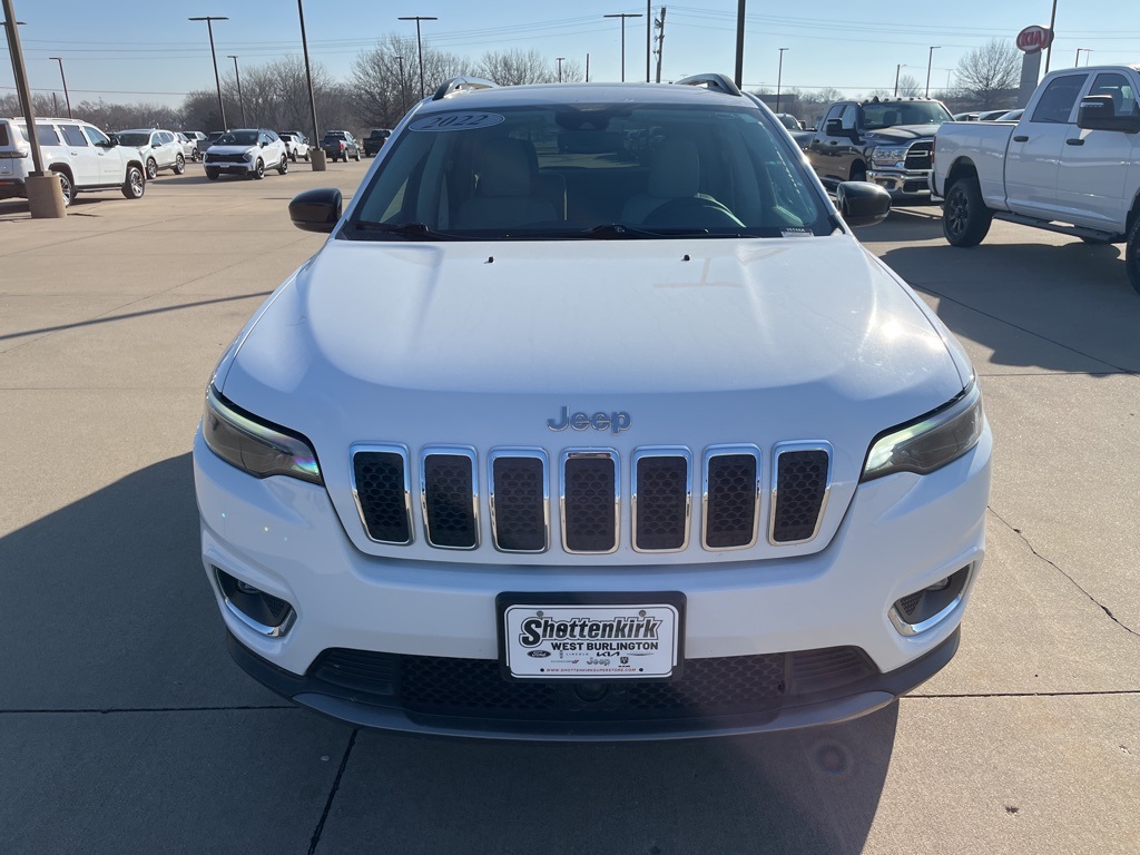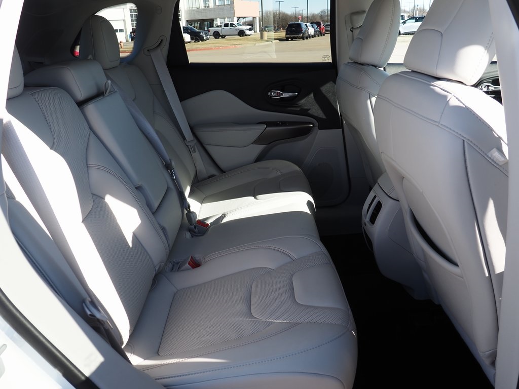 2022 Jeep Cherokee Limited Bright White Clearcoat 4D Sport Utility 2.0L I4 DOHC 9-Speed 948TE Automatic 4WD Limited This vehicle comes well equipped with Quick Order Package 2YG, 10 Speakers, 4-Wheel Disc Brakes, 4G LTE Wi-Fi Hot Spot, 8.4" Touchscreen Display, ABS brakes, Air Conditioning, Alloy wheels, AM/FM radio: SiriusXM, Anti-whiplash front head restraints, Apple CarPlay, Apple CarPlay/Android Auto, Audio memory, Auto High-beam Headlights, Auto-dimming Rear-View mirror, Automatic temperature control, Brake assist, Bumpers: body-color, Compass, Delay-off headlights, Driver door bin, Driver vanity mirror, Dual Bright Exhaust Tips, Dual front impact airbags, Dual front side impact airbags, Electronic Stability Control, Engine Oil Cooler, For Details, Visit DriveUconnect.com, For More Info, Call 800-643-2112, Four wheel independent suspension, Front anti-roll bar, Front Bucket Seats, Front Center Armrest, Front dual zone A/C, Front fog lights, Front License Plate Bracket, Front reading lights, Fully automatic headlights, Garage door transmitter, Google Android Auto, GPS Antenna Input, Heated door mirrors, Heated front seats, Heated steering wheel, Illuminated entry, Knee airbag, Leather Shift Knob, Liquid Titanium Door Trim Appliques, Low tire pressure warning, Memory seat, Normal Duty Suspension, Occupant sensing airbag, Outside temperature display, Overhead airbag, Overhead console, Panic alarm, ParkView Rear Back-Up Camera, Passenger door bin, Passenger vanity mirror, Piano Black Interior Accents, Power door mirrors, Power driver seat, Power Liftgate, Power moonroof, Power passenger seat, Power steering, Power windows, Premium Leather Trimmed Bucket Seats, Radio data system, Radio: Uconnect 4 w/8.4" Display, Rain sensing wipers, Rear anti-roll bar, Rear reading lights, Rear seat center armrest, Rear side impact airbag, Rear window defroster, Rear window wiper, Remote keyless entry, Roof rack: rails only, Security system, SiriusXM Radio Service, SiriusXM Satellite Radio, Speed control, Speed-sensing steering, Split folding rear seat, Spoiler, Steering wheel mounted audio controls, Stop-Start Multiple VSM System, Tachometer, Telescoping steering wheel, Tilt steering wheel, Traction control, Trip computer, Turn signal indicator mirrors, USB Host Flip, Variably intermittent wipers, Voltmeter, and Wheels: 18" x 7.0" Painted Diamond Cut AluminuM.