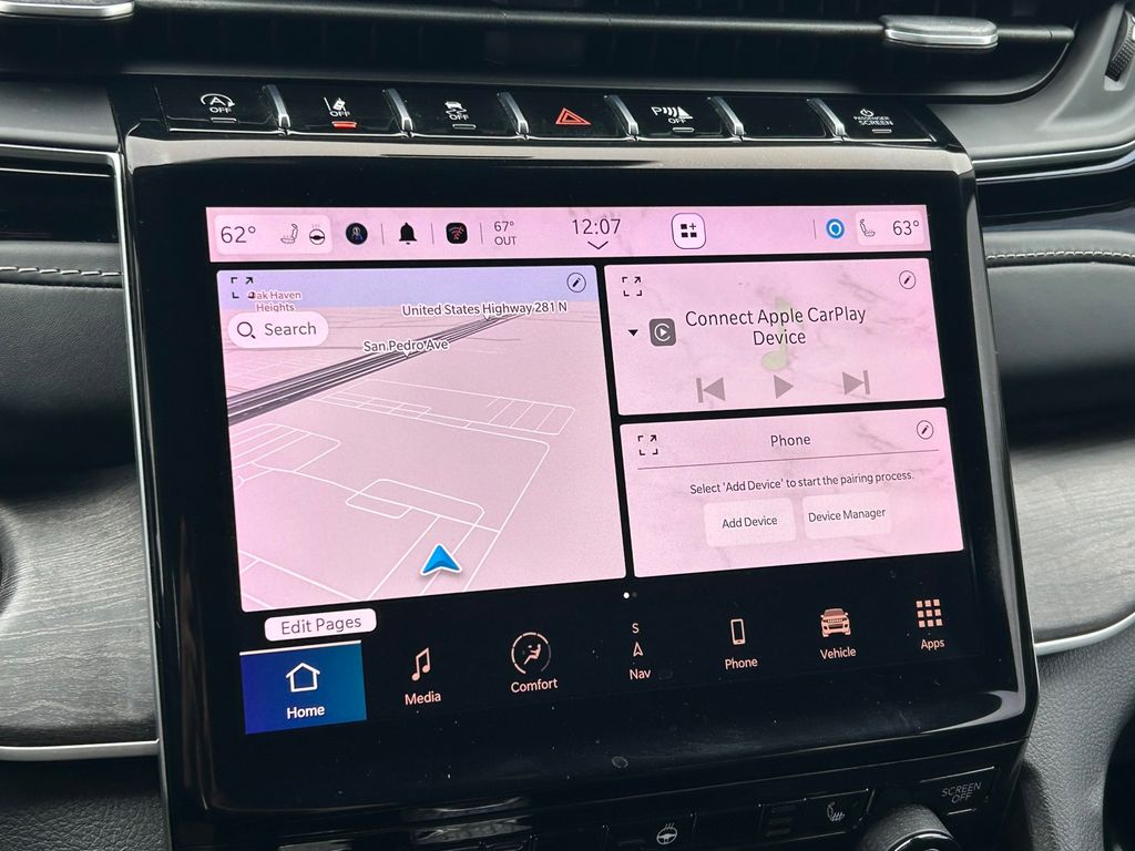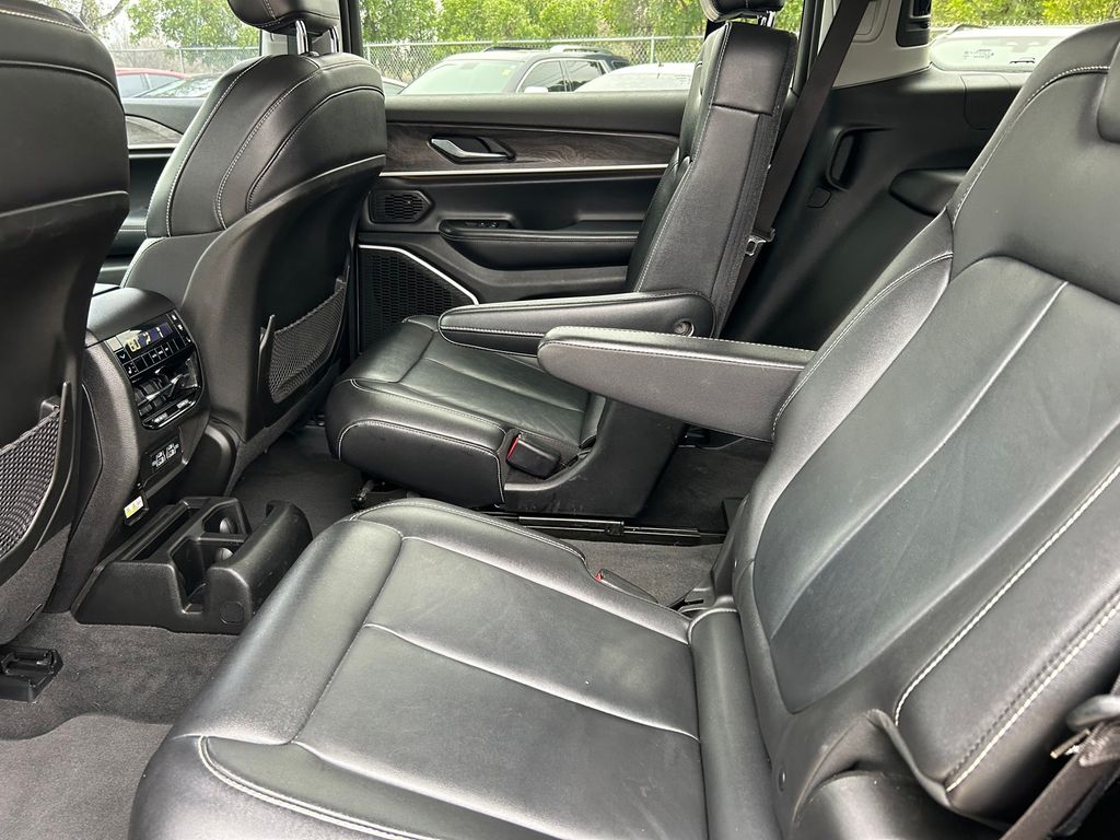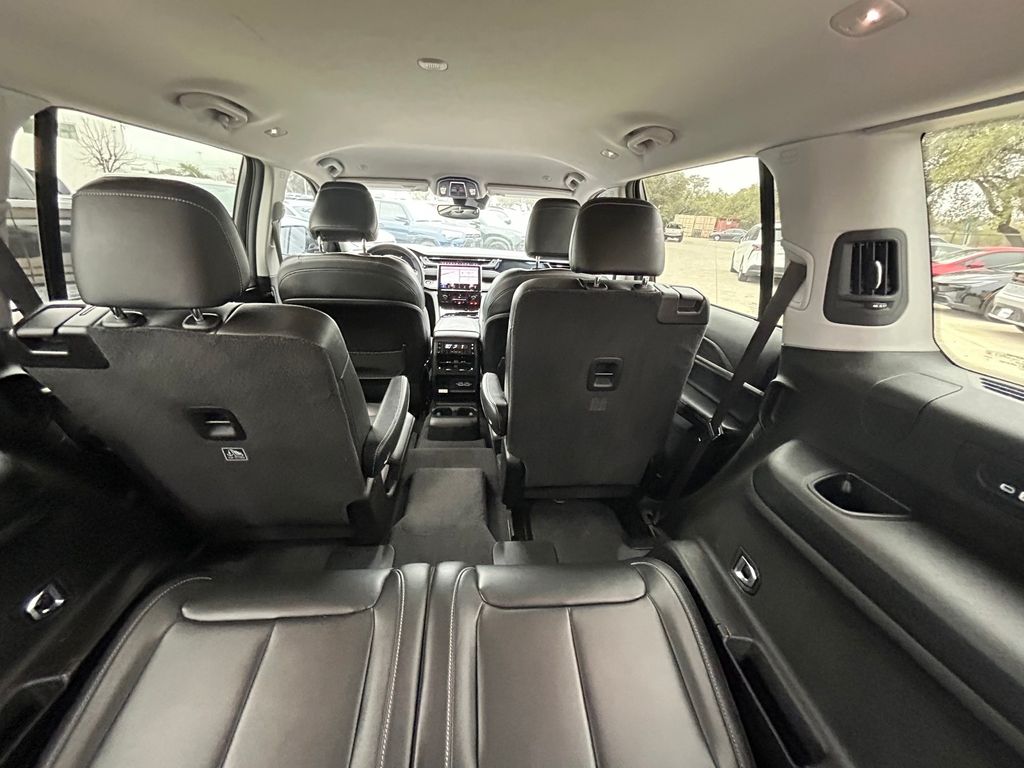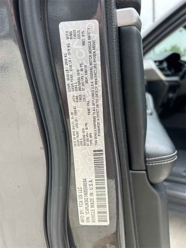CARFAX One-Owner. Clean CARFAX. 10.1" Touchscreen Display, 3.45 Rear Axle Ratio, 3rd row seats: split-bench, 4-Wheel Disc Brakes, 4G LTE Wi-Fi Hot Spot, 506 Watt Amplifier, 6 Speakers, 9 Amplified Speakers w/Subwoofer, ABS brakes, Active Noise Control System, Air Conditioning, All Radio Equipped Vehicles, Alloy wheels, AM/FM radio: SiriusXM with 360L, Anti-whiplash front head restraints, Apple CarPlay, Audio memory, Auto High-beam Headlights, Automatic temperature control, Black Appearance Package, Brake assist, Bumpers: body-color, Capri Leather Seats, Compass, Connected Travel & Traffic Services, Connectivity - US/Canada, Delay-off headlights, Disassociated Touchscreen Display, Driver door bin, Driver vanity mirror, Dual front impact airbags, Dual front side impact airbags, Electronic Stability Control, Emergency communication system, For Details, Visit DriveUconnect.com, For More Info, Call 800-643-2112, Four wheel independent suspension, Front anti-roll bar, Front Bucket Seats, Front Center Armrest w/Storage, Front dual zone A/C, Front fog lights, Front Passenger Interactive Display, Front reading lights, Fully automatic headlights, Garage door transmitter, Global Telematics Box Module (TBM), Gloss Black Exterior Accents, Google Android Auto, GPS Antenna Input, GPS Navigation, HD Radio, Heated door mirrors, Heated front seats, Heated rear seats, Heated steering wheel, Illuminated entry, Integrated Center Stack Radio, Integrated Voice Command w/Bluetooth, Knee airbag, Leather steering wheel, Low tire pressure warning, Manual Fold Seatbacks, Memory seat, Molded In Color Black/Gloss Black Roof Rails, Normal Duty Suspension, Occupant sensing airbag, Outside temperature display, Overhead airbag, Overhead console, Panic alarm, ParkView Rear Back-Up Camera, Passenger door bin, Passenger vanity mirror, Power door mirrors, Power driver seat, Power Liftgate, Power passenger seat, Power steering, Power windows, Pur Wrapped Instrument Panel, Quick Order Package 22E, Radio data system, Radio: Uconnect 5 Nav w/10.1" Display, Radio: Uconnect 5 w/8.4" Display, Rear air conditioning, Rear anti-roll bar, Rear reading lights, Rear window defroster, Rear window wiper, Reclining 3rd row seat, Remote keyless entry, Security system, SiriusXM Radio Service, SiriusXM Satellite Radio, SiriusXM w/360L, Speed control, Speed-Sensitive Wipers, Split folding rear seat, Spoiler, Steering wheel mounted audio controls, Tachometer, Telescoping steering wheel, Tilt steering wheel, Traction control, Trip computer, Turn signal indicator mirrors, USB Host Flip, Variably intermittent wipers, Voltmeter, Wheels: 18" x 8.0" Fully Painted Aluminum 2, Wheels: 20" x 8.5" Gloss Black Painted Aluminum.