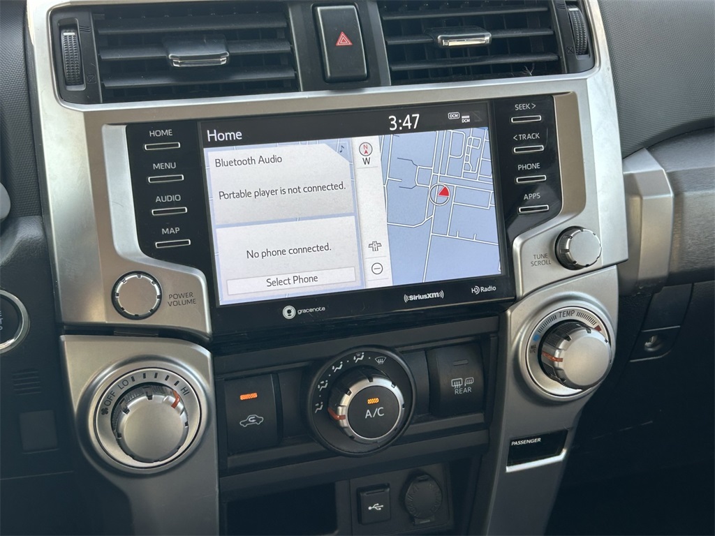 4WD, Graphite Artificial Leather, 17" 6-Spoke Alloy Wheels, 3.727 Axle Ratio, 4-Wheel Disc Brakes, 8 Speakers, ABS brakes, Air Conditioning, Alloy wheels, AM/FM radio: SiriusXM, Anti-whiplash front head restraints, Apple CarPlay/Android Auto, Auto High-beam Headlights, Auto-dimming Rear-View mirror, Blind Spot Monitor (BSM), Brake assist, Bumpers: body-color, Driver vanity mirror, Dual front impact airbags, Dual front side impact airbags, Electronic Stability Control, Emergency communication system: Safety Connect with 1-year trial, Exterior Parking Camera Rear, Front anti-roll bar, Front Bucket Seats, Front Center Armrest, Front fog lights, Front reading lights, Front wheel independent suspension, Garage Door Opener, Garage door transmitter: HomeLink, Heated door mirrors, Heated Front Bucket Seats, Heated front seats, Illuminated entry, Knee airbag, Leather Shift Knob, Leather steering wheel, Low tire pressure warning, Occupant sensing airbag, Outside Rear View Mirror, Outside temperature display, Overhead airbag, Overhead console, Panic alarm, Passenger door bin, Passenger vanity mirror, Power door mirrors, Power driver seat, Power passenger seat, Power steering, Power windows, Radio: Premium Audio w/Dynamic Navigation, Rear anti-roll bar, Rear seat center armrest, Rear window defroster, Rear window wiper, Remote keyless entry, Rigid Running Boards, Roof rack: rails only, Security system, SofTex Seat Trim, Speed control, Speed-sensing steering, Split folding rear seat, Spoiler, SR5 Premium Package w/Softex, Steering wheel mounted audio controls, Tachometer, Telescoping steering wheel, Tilt steering wheel, Traction control, Trip computer, Turn signal indicator mirrors, Variably intermittent wipers.