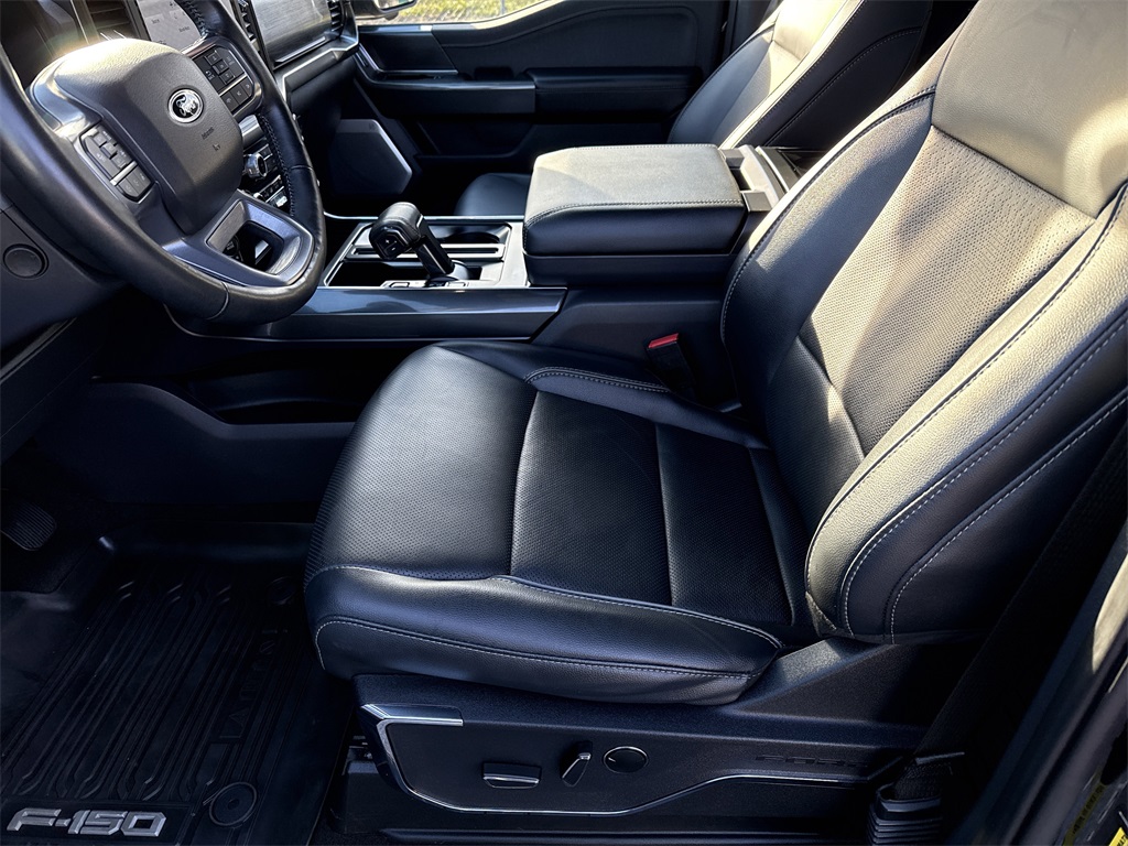 ** Super Clean **, **Clean Carfax**, **Low Mileage**, Twin Panel Moonroof, **Power Sunroof/Moonroof**, **Leather interior**, **Heated/Cooled Seats**, **Heated Seats, **Front bucket seats with center console**, Apple car play/ Android auto, **Ford Sync Bluetooth**, **Bluetooth/Hands Free**, **Rear back up camera**, **Reverse Sensing System**, **Blind Spot Detection**, **Lane monitor**, **GPS/ Navigation**, **Drivers Power Seat**, **Lariat sport package**, **Passenger power seat**, **Power liftgate**, **Power windows and locks**, **Remote start**, **Fixed running boards/side steps**, **SIRIUS SAT. RADIO**, **Spray in bedliner**, Forward collison/adaptive cruise control, B&O sound system, and BLACKOUT PKG Bed Utility Package (BoxLink, LED Box Lighting, Power Tailgate, and Tailgate Step w/Tailgate Work Surface), Equipment Group 502A High (2nd Row Heated Seats, LED Projector w/Dynamic Bending Headlamps, Power Tilt/Telescoping Steering Column w/Memory, Rain-Sensing Wipers, and Wireless Charging Pad), Ford Co-Pilot360 Assist 2.0 (Connected Built-In Navigation, Evasive Steering Assist, Intelligent Adaptive Cruise Control w/Stop & Go, Intersection Assist, and Speed Sign Recognition), GVWR: 7,050 lbs Payload Package, Lariat Black Appearance Package (Black 6" Angular Step Bars, Black Exterior Badging, Black Taillamp Bezels, Dark Interior Appliques, Leather-Trimmed Bucket Seats, Matte Black Tailgate F-150 Decal, Unique Hood & Grille w/Black Accent, and Wheels: 20" Gloss Black Painted Aluminum), Lariat Sport Appearance Package (Accent-Color Angular Step Bars, Body-Color Front & Rear Bumpers, Box Side Decals, Chrome Single-Tip Exhaust, and Dark 2-Bar & 1 Minor Bar Style Grille), Trailer Tow Package (Class IV Trailer Hitch Receiver, Integrated Trailer Brake Controller, and Pro Trailer Backup Assist & Pro Trailer Hitch Assist), 3.31 Axle Ratio, 360 Degree Camera, 4-Wheel Disc Brakes, 8 Speakers, ABS brakes, Adjustable pedals, Air Conditioning, Alloy wheels, AM/FM radio: SiriusXM with 360L, Auto High-beam Headlights, Auto-dimming door mirrors, Auto-dimming Rear-View mirror, Automatic temperature control, Brake assist, Bumpers: chrome, Center High-Mounted Stop Lamp CHMSL Camera Removal, Compass, Delay-off headlights, Driver door bin, Driver vanity mirror, Dual front impact airbags, Dual front side impact airbags, Electronic Stability Control, Emergency communication system: SYNC 4 911 Assist, Exterior Parking Camera Rear, Front anti-roll bar, Front Bucket Seats, Front Center Armrest, Front dual zone A/C, Front fog lights, Front reading lights, Front wheel independent suspension, Fully automatic headlights, Garage door transmitter, Heated door mirrors, Heated front seats, Heated steering wheel, Illuminated entry, Inclination/Intrusion Sensor Removal, Interior Work Surface, LED Sideview Mirror Spotlights, Low tire pressure warning, Memory seat, Occupant sensing airbag, Outside temperature display, Overhead airbag, Overhead console, Panic alarm, Passenger door bin, Passenger vanity mirror, Pedal memory, Power door mirrors, Power driver seat, Power passenger seat, Power steering, Power windows, Radio data system, Radio: B&O Sound System by Bang & Olufsen, Radio: B&O Unleashed Sound System by Bang & Olufsen, Rear reading lights, Rear seat center armrest, Rear step bumper, Rear window defroster, Remote keyless entry, Security system, Speed control, Speed-sensing steering, Split folding rear seat, Steering wheel mounted audio controls, SYNC 4 w/Enhanced Voice Recognition, Tachometer, Telescoping steering wheel, Tilt steering wheel, Tough Bed Spray-In Bedliner, Traction control, Tray Style Floor Liner (47W), Trip computer, Turn signal indicator mirrors, Twin Panel Moonroof, Variably intermittent wipers, Ventilated front seats, and Voltmeter Shottenkirk Ford of Jasper is pleased to offer you this exceptional 2023 Ford F-150. This Lariat F-150 Exterior is finished in Agate Black Metallic and the interior is finished in Black w/Leather Trim Seats w/Heated