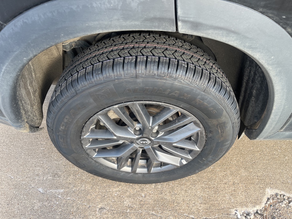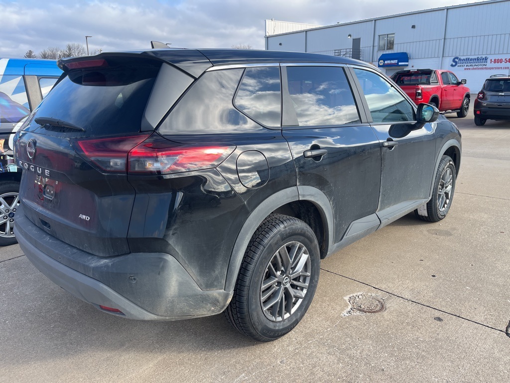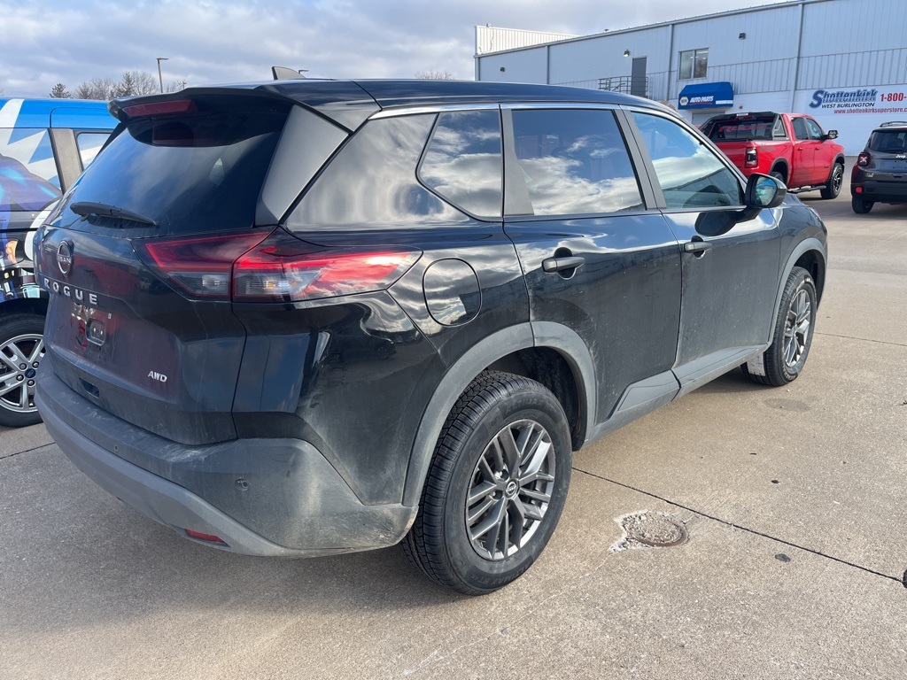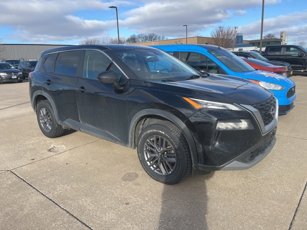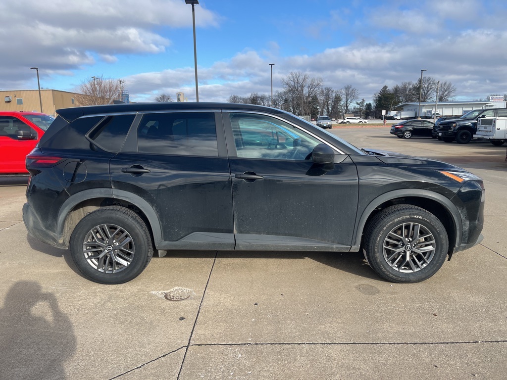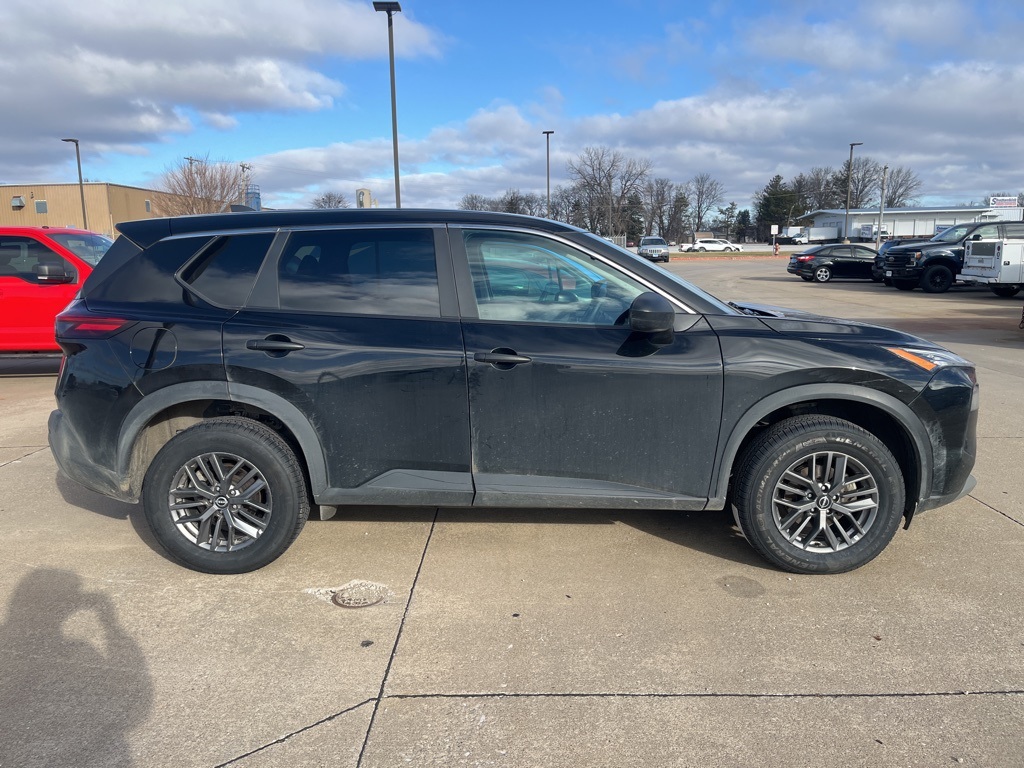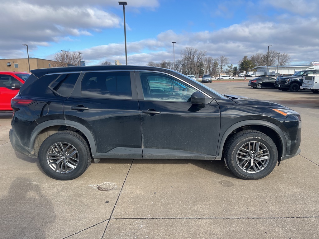 2023 Nissan Rogue S Super Black 4D Sport Utility 1.5L I3 Turbocharged DOHC 12V LEV3-ULEV50 201hp CVT with Xtronic AWD S This vehicle comes well equipped with 17" Aluminum Alloy Wheels, 4 Speakers, 4-Wheel Disc Brakes, 5.604 Axle Ratio, ABS brakes, Air Conditioning, Alloy wheels, AM/FM Radio, AM/FM radio: SiriusXM, Auto High-beam Headlights, Blind Spot Warning, Brake assist, Bumpers: body-color, Cloth Seat Trim, Delay-off headlights, Driver door bin, Driver vanity mirror, Dual front impact airbags, Dual front side impact airbags, Electronic Stability Control, First Aid Kit, Floor Mats w/1-Piece Cargo Area Protector, Four wheel independent suspension, Front anti-roll bar, Front Bucket Seats, Front Center Armrest, Front reading lights, Fully automatic headlights, Illuminated entry, Knee airbag, Low tire pressure warning, NissanConnect featuring Apple CarPlay and Android Auto, Occupant sensing airbag, Outside temperature display, Overhead airbag, Overhead console, Panic alarm, Passenger door bin, Passenger vanity mirror, Power door mirrors, Power steering, Power windows, Radio data system, Rear anti-roll bar, Rear Parking Sensors, Rear seat center armrest, Rear side impact airbag, Rear window defroster, Rear window wiper, Remote keyless entry, Speed control, Speed-Sensitive Wipers, Split folding rear seat, Spoiler, Steering wheel mounted audio controls, Tachometer, Telescoping steering wheel, Tilt steering wheel, Traction control, Trip computer, and Variably intermittent wipers.
