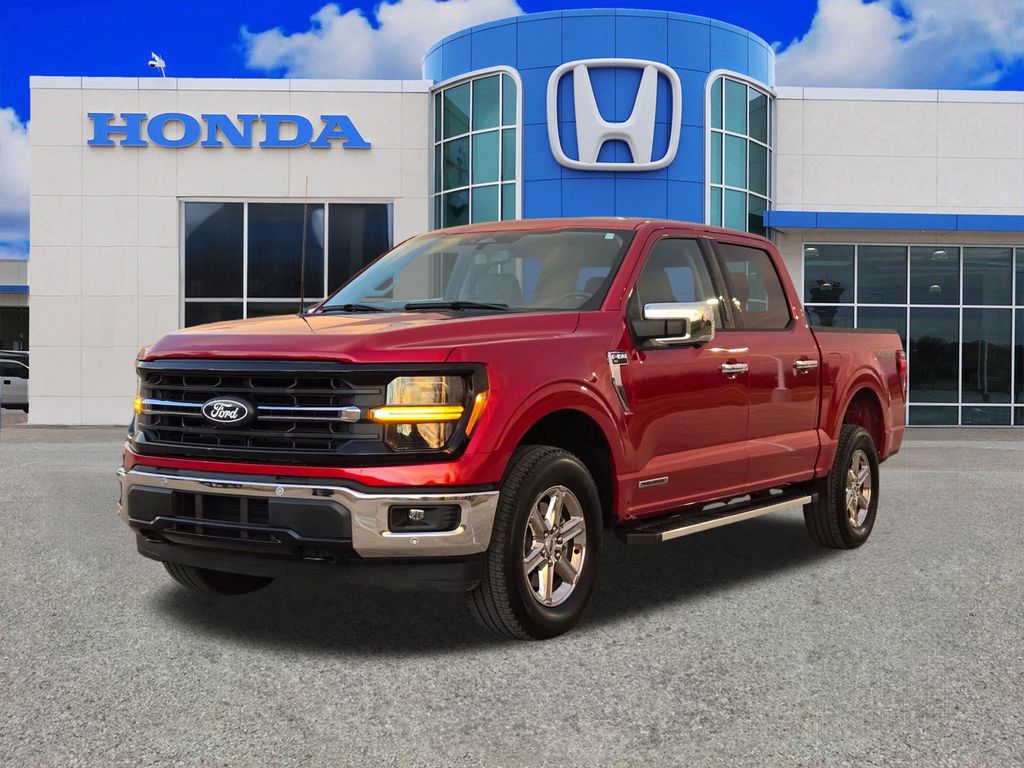 ** 4X4 **, ** APPLE CAR PLAY **, ** BACK UP CAMERA **, ** BLUETOOTH, HANDS FREE **, ** KEYLESS ENTRY **, ** XM RADIO COMPATIBLE **, ** PREMIUM SOUND SYSTEM **, ** PREMIUM WHEELS **, ** POWER DRIVER'S SEAT **, ** LOCAL TRADE IN **, ** ALLOY WHEELS **, ** REMOTE START **, ** TOUGHBED SPRAYIN BEDLINER **, ** MOBILE OFFICE PACKAGE **, ** 3.5L POWERBOOST **, ** XLT 302A PACKAGE **, F-150 XLT, 4D SuperCrew, 3.5L PowerBoost Full-Hybrid V6, 10-Speed Automatic, 4WD, Red Metallic, Black W/Medium Dark Slate Cloth, 400W Cab & Bed Outlets, Adaptive Cruise Control w/Stop & Go, Auto-Dimming Rear-View Mirror, Cloth 40/Console/40 Front Seats, Console Worksurface, Equipment Group 302A Mid, Ford BlueCruise Equipped (90-Day Trial), Heated Front Seats, Integrated Trailer Brake Controller, Intelligent Access w/Push Button Start, Mobile Office Package, Navigation system: Connected Navigation, Partitioned Lockable Rear Storage, Power Glass Heated Sideview Mirrors, Power-Sliding Rear Window, Remote Start System w/Remote Tailgate Release, Speed Sign Recognition, Tow/Haul Package.