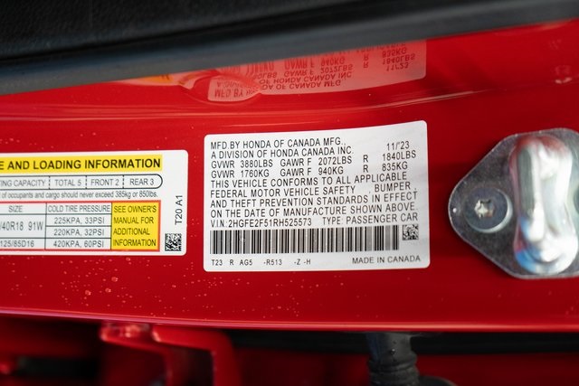 Rallye Red 2024 Honda Civic Sport FWD CVT 2.0L I4 DOHC 16V i-VTEC Black w/Cloth Seating Surfaces.