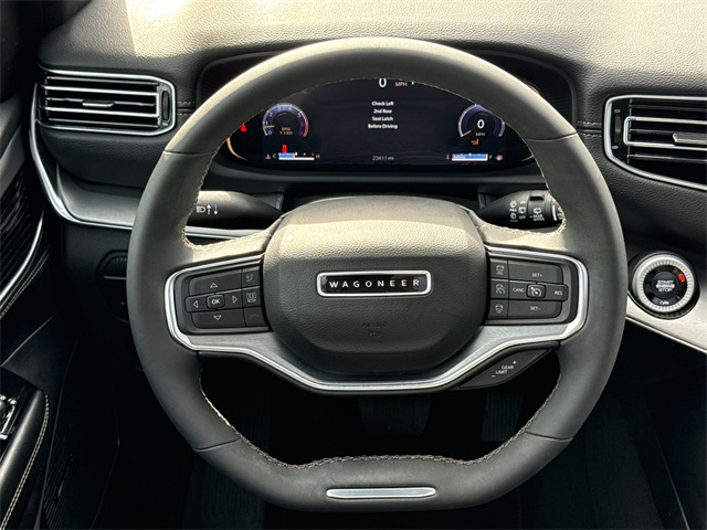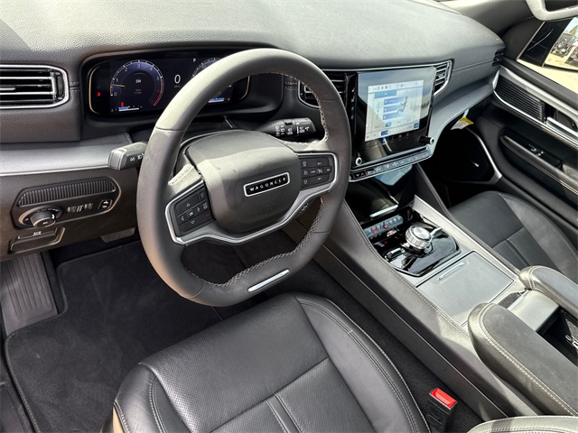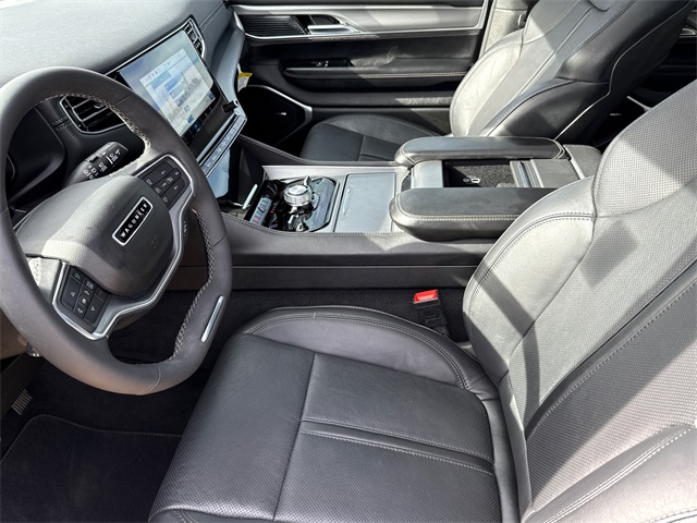 CARFAX One-Owner. 2024 Jeep Wagoneer L Series II 4D Sport Utility Baltic Gray Metallic Clearcoat 3.0L I6 8-Speed Automatic 4WD This vehicle comes well equipped with Carbide Appearance Package, Convenience Group I (2nd Row Manual Window Shades, Auto High Beam Headlamp Control, Drowsy Driver Detection, Heads-Up Display, Intersection Collision Assist System, P&P Park & Unpark Assist w/Stop System, Quadra-Lift Air Suspension, Rack Cargo Management System, Semi Active Damping, Side Distance Warning, Surround View Camera System, and Traffic Sign Recognition), Flexible Seating Group (40/20/40 2nd Row Bench Power Tip/Slide, 8-Passenger Seating, and Full Length Floor Console), Quick Order Package 25F Carbide (3 Panel Sunroof, Adjustable Roof Rail Crossbars, Black Interior Accents, Piano Black Exterior Accents, Reversible Carpet/Vinyl Cargo Mat, and Wheels: 20" x 9.0" Aluminum Painted Gloss Black), Wagoneer L Series II, 4D Sport Utility, 3.0L I6, 4WD, Baltic Gray Metallic Clearcoat, and Black Leather Carbide Appearance Package, Convenience Group I (2nd Row Manual Window Shades, Auto High Beam Headlamp Control, Drowsy Driver Detection, Heads-Up Display, Intersection Collision Assist System, P&P Park & Unpark Assist w/Stop System, Quadra-Lift Air Suspension, Rack Cargo Management System, Semi Active Damping, Side Distance Warning, Surround View Camera System, and Traffic Sign Recognition), Flexible Seating Group (40/20/40 2nd Row Bench Power Tip/Slide, 8-Passenger Seating, and Full Length Floor Console), Quick Order Package 25F Carbide (3 Panel Sunroof, Adjustable Roof Rail Crossbars, Black Interior Accents, Piano Black Exterior Accents, Reversible Carpet/Vinyl Cargo Mat, and Wheels: 20" x 9.0" Aluminum Painted Gloss Black), Wagoneer L Series II, 4D Sport Utility, 3.0L I6, 4WD, Baltic Gray Metallic Clearcoat, Black Leather, 10 Speakers, 3.55 Rear Axle Ratio, 3rd row seats: bench, 4-Wheel Disc Brakes, ABS brakes, Adjustable pedals, Air Conditioning, Alloy wheels, AM/FM radio: SiriusXM with 360L, Anti-whiplash front head restraints, Apple CarPlay/Android Auto, Audio memory, Auto-dimming door mirrors, Auto-dimming Rear-View mirror, Auto-leveling suspension, Automatic temperature control, Brake assist, Bumpers: body-color, Compass, Delay-off headlights, Driver door bin, Driver vanity mirror, Driver's Seat Mounted Armrest, Dual front impact airbags, Dual front side impact airbags, Electronic Stability Control, Emergency communication system: Wagoneer Connect, Exterior Parking Camera Rear, Four wheel independent suspension, Front anti-roll bar, Front Bucket Seats, Front Center Armrest w/Storage, Front dual zone A/C, Front fog lights, Front reading lights, Fully automatic headlights, Garage door transmitter, Genuine wood console insert, Genuine wood dashboard insert, Genuine wood door panel insert, Heated door mirrors, Heated front seats, Heated steering wheel, Illuminated entry, Knee airbag, Leather Trimmed Bucket Seats, Low tire pressure warning, Memory seat, Navigation System, Normal Duty Suspension, Occupant sensing airbag, Outside temperature display, Overhead airbag, Overhead console, Panic alarm, Passenger door bin, Passenger seat mounted armrest, Passenger vanity mirror, Pedal memory, Power adjustable front head restraints, Power door mirrors, Power driver seat, Power Liftgate, Power passenger seat, Power steering, Power windows, Radio data system, Radio: Uconnect 5 Nav w/10.1" Display, Rain sensing wipers, Rear air conditioning, Rear anti-roll bar, Rear reading lights, Rear seat center armrest, Rear window defroster, Rear window wiper, Reclining 3rd row seat, Remote keyless entry, Security system, Speed control, Speed-sensing steering, Speed-Sensitive Wipers, Split folding rear seat, Steering wheel memory, Steering wheel mounted audio controls, Tachometer, Telescoping steering wheel, Tilt steering wheel, Traction control, Trip computer, Turn signal indicator mirrors, Variably intermittent wipers, Ventilated front seats, Voltmeter, and W