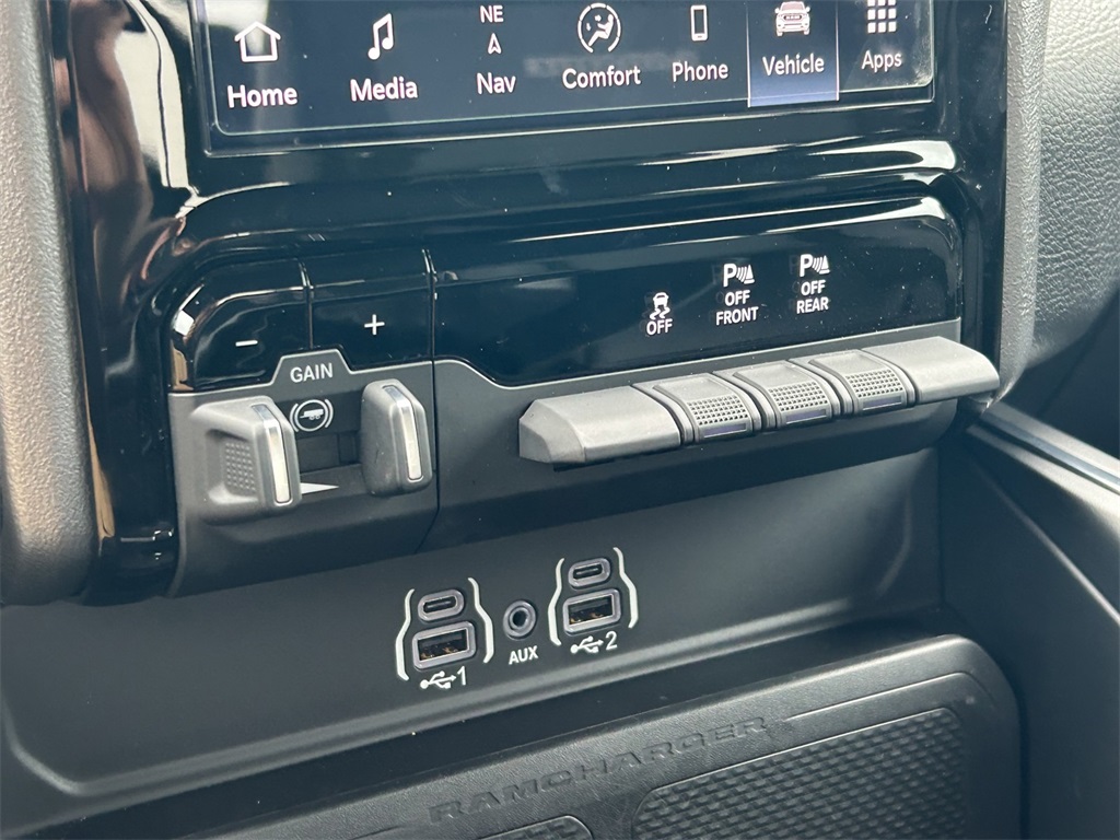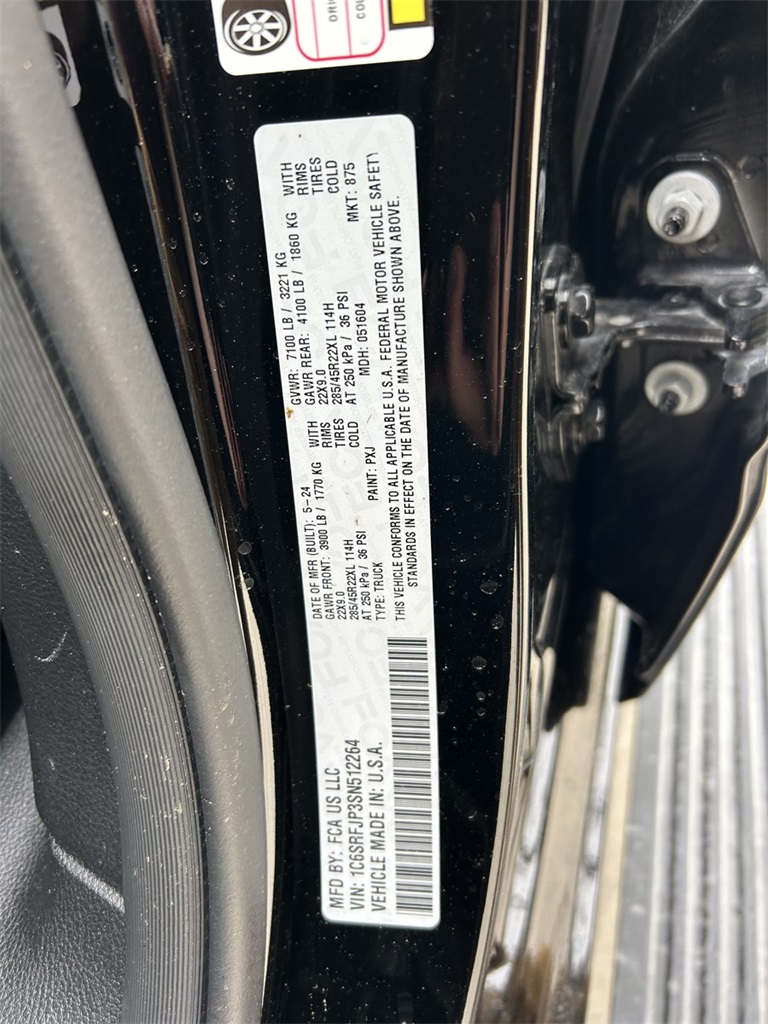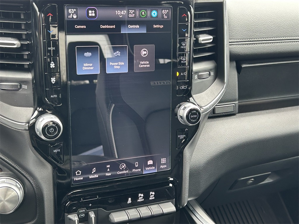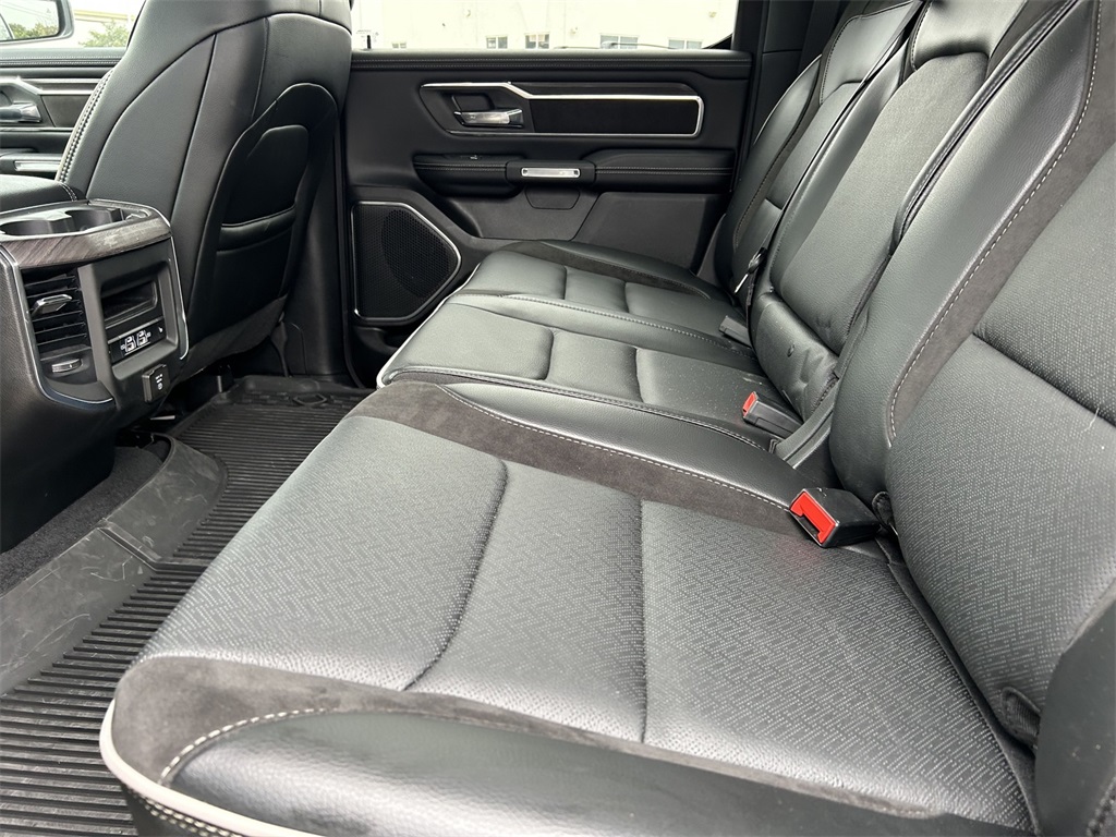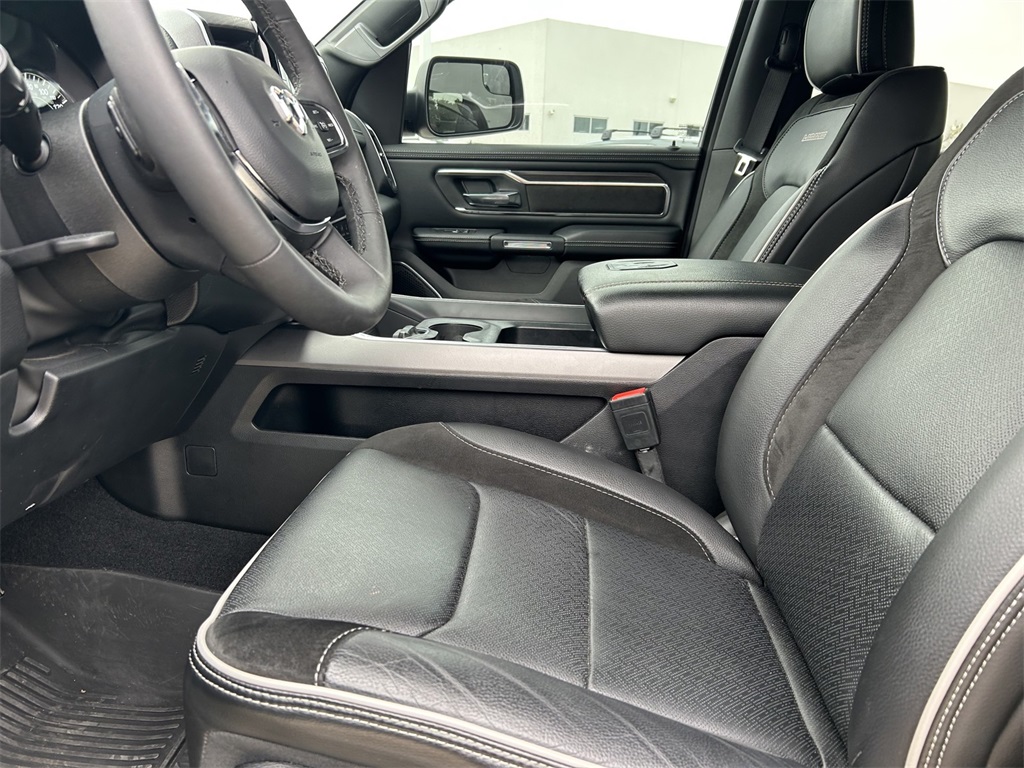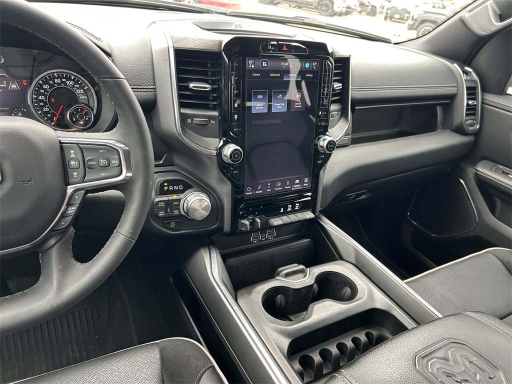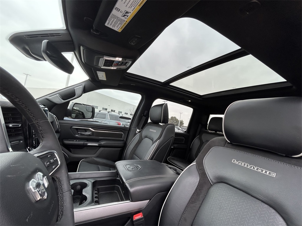 CARFAX One-Owner. Clean CARFAX. 10 Speakers, 3 Rear Seat Head Restraints, 4 Way Front Headrests, 4-Wheel Disc Brakes, ABS brakes, Accent Color Premium Power Mirrors, Air Conditioning, Alloy wheels, AM/FM radio: SiriusXM with 360L, Anti-Spin Differential Rear Axle, Apple CarPlay/Android Auto, Audio memory, Auto High-beam Headlights, Auto Power-Folding Mirrors, Auto-dimming door mirrors, Auto-Dimming Exterior Driver Mirror, Auto-dimming Rear-View mirror, Automatic temperature control, Bed Utility Group, Black Painted Exterior Mirrors Caps, Body Color Front Bumper, Body Color Rear Bumper w/Step Pads, Brake assist, Bumpers: chrome, Chrome Exterior Mirrors, Compass, Convex Wide-Angle Exterior Mirror Insert, Delay-off headlights, Dome Dual LED Reading Lamp, Driver door bin, Driver Seat Memory, Driver vanity mirror, Dual front impact airbags, Dual front side impact airbags, Dual-Pane Panoramic Sunroof, Electronic Stability Control, Exterior Mirrors Courtesy Lamps, Exterior Mirrors w/Heating Element, Exterior Mirrors w/Memory, Exterior Mirrors w/Supplemental Signals, Front anti-roll bar, Front Center Armrest w/Storage, Front dual zone A/C, Front fog lights, Front License Plate Bracket, Front reading lights, Front Seat Back Map Pockets, Front wheel independent suspension, Fully automatic headlights, Garage door transmitter, Grille Surround 3 Body Color Tex 4 Chrome, Heated door mirrors, Heated Front Seats, Heated front seats, Heated rear seats, Heated Steering Wheel, Heated steering wheel, Illuminated entry, Laramie Level 1 Equipment Group, Laramie Southwest Edition, Leather steering wheel, Leather Trim 40/20/40 Bench Seat, LED Dome/Reading Lamp, Low tire pressure warning, Manufacturer's Statement of Origin, Memory seat, MOPAR 4 Adjustable Cargo Tie-Down Hooks, MOPAR Front & Rear Rubber Floor Mats, MOPAR Spray In Bedliner, Multi-Function Tailgate, Navigation System, Occupant sensing airbag, Outside temperature display, Overhead airbag, Overhead console, Panic alarm, ParkView Rear Back-Up Camera, Passenger door bin, Passenger vanity mirror, Pirelli Brand Tires, Power 2-Way Driver Lumbar Adjust, Power 2-Way Passenger Lumbar Adjust, Power Adjust 8-Way Front Passenger Seat, Power Deployable Running Boards, Power door mirrors, Power driver seat, Power passenger seat, Power steering, Power windows, Quick Order Package 21H Laramie, Radio data system, Radio: Uconnect 5 Nav w/12.0" Display, RAM Grille Badge - Chrome, RAM's Head Badge, Rear anti-roll bar, Rear reading lights, Rear seat center armrest, Rear step bumper, Remote keyless entry, Remote Tailgate Release, Security system, Speed control, Split folding rear seat, Steering wheel mounted audio controls, Tachometer, Telescoping steering wheel, Tilt steering wheel, Tow Hooks, Traction control, Trailer Brake Control, Trip computer, Turn signal indicator mirrors, Variably intermittent wipers, Ventilated Front Seats, Ventilated front seats, Voltmeter, Wheels: 20" x 9" Premium Paint/Polish, Wheels: 22" x 9" Forged Aluminum.
