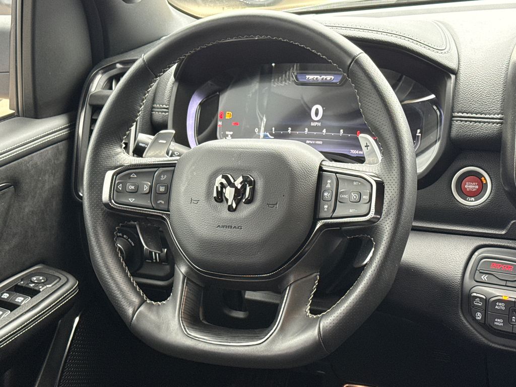 CARFAX One-Owner. 2025 Ram 1500 RHO 4D Crew Cab Bright White Clearcoat 3.0L I6 8-Speed Automatic 4WD This vehicle comes well equipped with Quick Order Package 22Y RHO, 1500 RHO, 4D Crew Cab, 3.0L I6, 4WD, Bright White Clearcoat, Black Leather, GPS Navigation, and Navigation System Quick Order Package 22Y RHO, 1500 RHO, 4D Crew Cab, 3.0L I6, 4WD, Bright White Clearcoat, Black Leather, GPS Navigation, Navigation System, 10 Speakers, 3.92 Rear Axle Ratio, 4-Wheel Disc Brakes, 4G LTE Wi-Fi Hot Spot, ABS brakes, Adaptive suspension, Adjustable pedals, Air Conditioning, Alloy wheels, AM/FM radio: SiriusXM with 360L, Apple CarPlay, Apple CarPlay/Android Auto, Auto High-beam Headlights, Auto Power-Folding Mirrors, Auto-dimming door mirrors, Auto-Dimming Exterior Driver Mirror, Auto-dimming Rear-View mirror, Automatic temperature control, Brake assist, Compass, Connected Travel & Traffic Services, Connectivity - US/Canada, Delay-off headlights, Driver door bin, Driver vanity mirror, Dual front impact airbags, Dual front side impact airbags, Electronic Stability Control, Exterior Mirrors Courtesy Lamps, Exterior Mirrors w/Heating Element, Exterior Mirrors w/Supplemental Signals, Flareside Box, Front anti-roll bar, Front Bucket Seats, Front Center Armrest w/Storage, Front dual zone A/C, Front fog lights, Front License Plate Bracket, Front reading lights, Front wheel independent suspension, Fully automatic headlights, Garage door transmitter, Google Android Auto, HD Radio, Heated door mirrors, Heated front seats, Heated steering wheel, Illuminated entry, Integrated Voice Command w/Bluetooth, Leather Shift Knob, Leather steering wheel, Leather Trimmed Bucket Seats, Low tire pressure warning, Manufacturer's Statement of Origin, Occupant sensing airbag, Outside temperature display, Overhead airbag, Overhead console, Panic alarm, ParkView Rear Back-Up Camera, Passenger door bin, Passenger vanity mirror, Power door mirrors, Power driver seat, Power passenger seat, Power steering, Power windows, Radio data system, Radio: Uconnect 5 Nav w/12.0" Display, Rear reading lights, Rear seat center armrest, Rear step bumper, Rear window defroster, Remote keyless entry, Security system, Speed control, Split folding rear seat, Sport steering wheel, Steering wheel mounted audio controls, Tachometer, Telescoping steering wheel, Tilt steering wheel, Traction control, Trip computer, Turn signal indicator mirrors, USB Host Flip, Variably intermittent wipers, Voltmeter, and Wheels: 18" x 9" Black Paint/Polish Aluminum. For more information contact one of our Internet Managers at 682-498-8390 to set up your VIP Test Drive.. At SHOTTENKIRK CDJR Granbury located in Granbury, TX all of our Pre-Owned vehicles go through a 100 point plus inspection. The oil and filter are changed, complete brake inspection, tire rotation, safety inspection and all fluid levels are topped off. If we find anything that needs attention we address the issue and fix it. So buy with confidence that you are getting a quality vehicle. We can do a complete walk around for you over the phone. Trade ins are always welcomed. We offer financing from over 25 finance and credit unions locally and nationally. SHOTTENKIRK CDJR 4970 E HWY 377 GRANBURY TEXAS 76049.