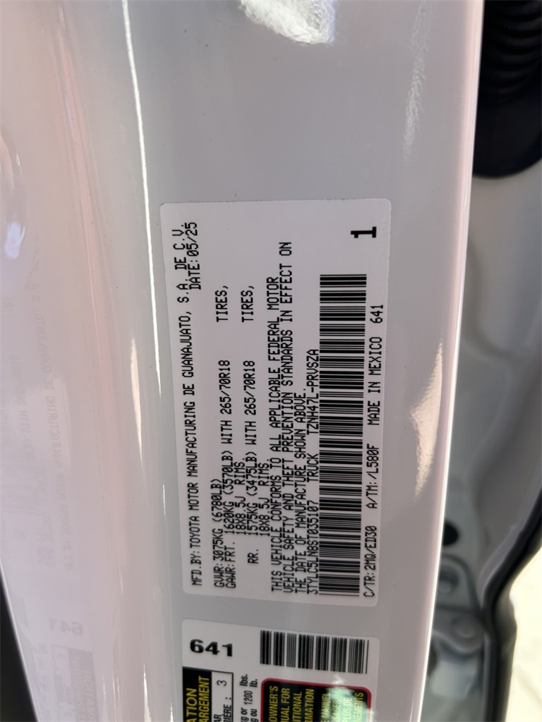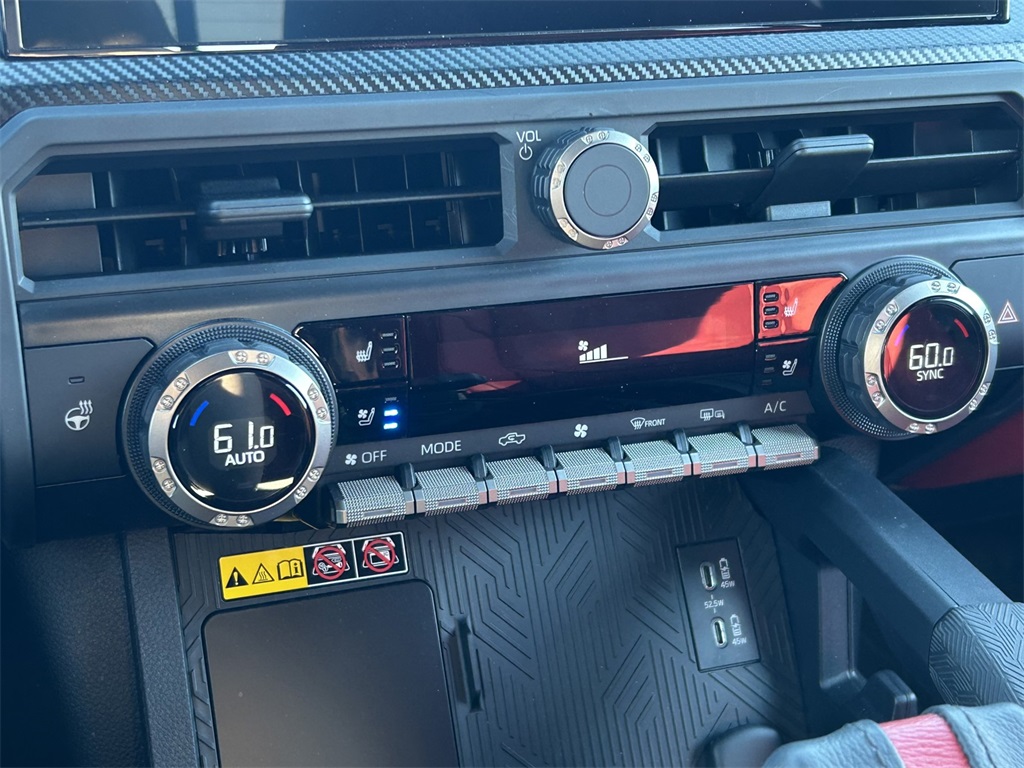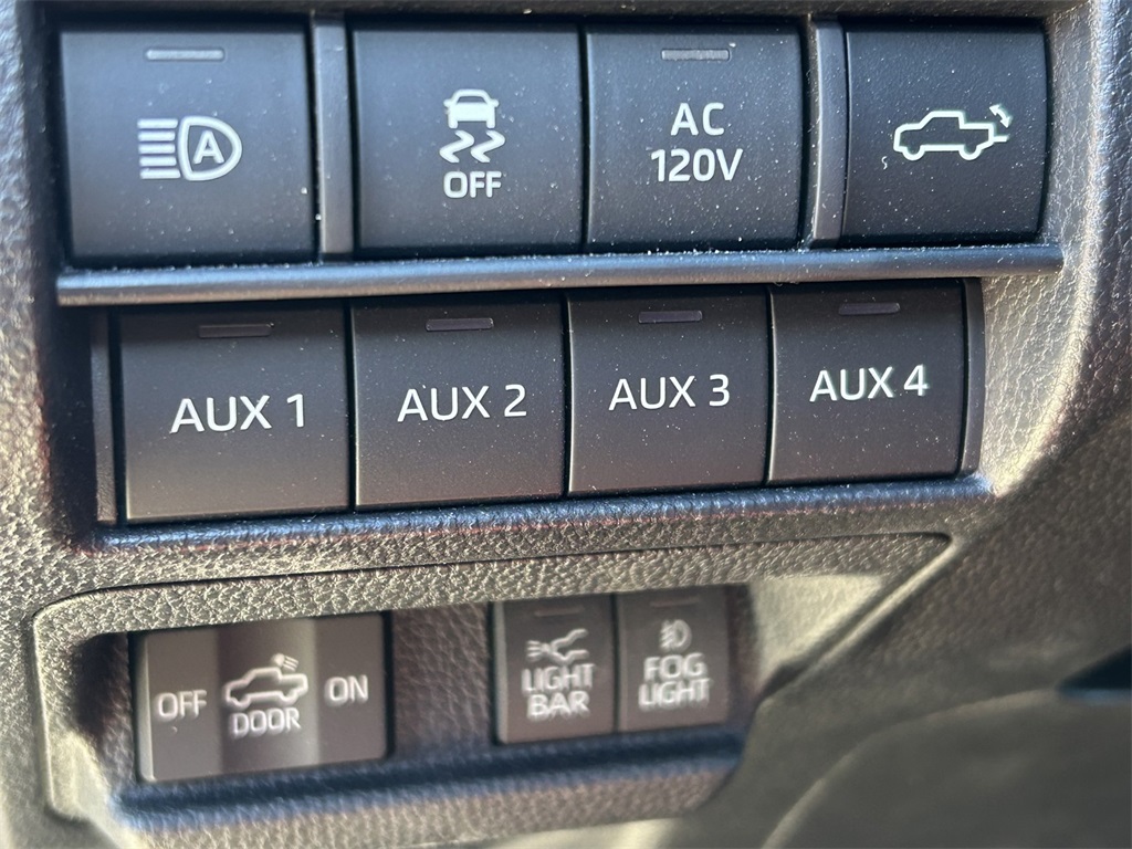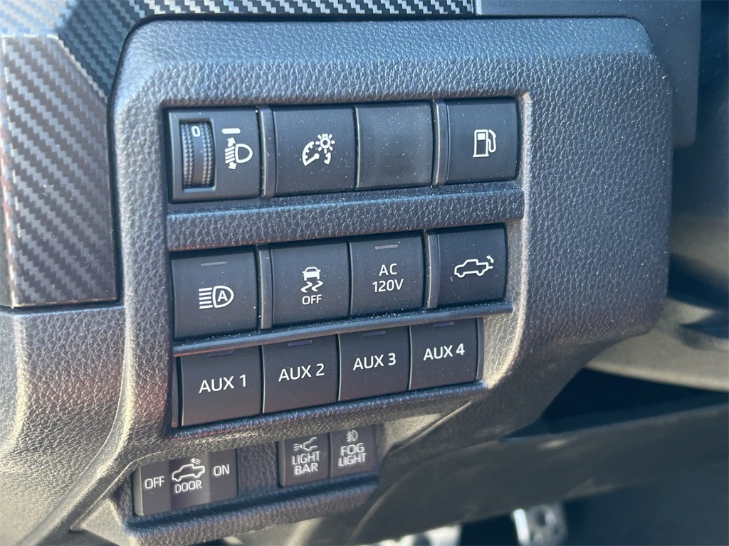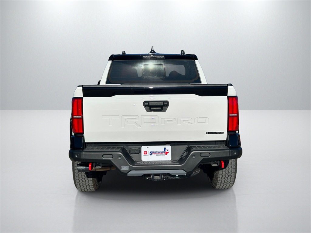CARFAX One-Owner. Clean CARFAX. 2.4L I4 PDI Hybrid Turbocharged DOHC 16V, 3.583 Axle Ratio, 4-Wheel Disc Brakes, 9 Speakers, ABS brakes, Air Conditioning, Alloy wheels, AM/FM radio: SiriusXM, Anti-whiplash front head restraints, Apple CarPlay/Android Auto, Auto High-beam Headlights, Auto-dimming Rear-View mirror, Automatic temperature control, Bed Mat (TMS), Bed Scene Lighting (TMS), Brake assist, Bumpers: body-color, Center Console Vault (TMS), Dash Cam (TMS), Door Edge Guard (TMS), Door Panel Scuff Protector (TMS), Driver door bin, Driver vanity mirror, Dual front impact airbags, Dual front side impact airbags, Electronic Stability Control, Emergency communication system: Safety Connect (1-year trial), Exterior Parking Camera Rear, Four wheel independent suspension, Front anti-roll bar, Front Bucket Seats, Front Center Armrest, Front dual zone A/C, Front fog lights, Front reading lights, Fully automatic headlights, Garage door transmitter: HomeLink, Heads-Up Display, Heated door mirrors, Heated front seats, Heated steering wheel, Htd & Vent TRD Pro IsoDynamic Performance Seats, Illuminated entry, JBL Premium Audio, Knee airbag, Leather Shift Knob, Leather steering wheel, Low tire pressure warning, Mini-Tie Down (TMS), Navigation system: Drive Connect (1 year trial) includes Cloud Navigation with real time traffic and Google POI, Occupant sensing airbag, Outside temperature display, Overhead airbag, Overhead console, Paint Protection Film (TMS), Panic alarm, Passenger door bin, Passenger vanity mirror, Phone Cables - Smart USB (TMS), Power door mirrors, Power driver seat, Power moonroof, Power passenger seat, Power steering, Power windows, Radio: 14" Toyota Audio Multimedia, Rear anti-roll bar, Rear step bumper, Rear window defroster, Red Grille Letter Overlay (TMS), Remote keyless entry, Security system, SofTex Seat Trim, Speed control, Speed-sensing steering, Split folding rear seat, Spray-On Bed Liner (TMS), Steering wheel mounted audio controls, Tachometer, Telescoping steering wheel, Tilt steering wheel, Tow Tech Package, Traction control, TRD Pro Package, Trip computer, Turn signal indicator mirrors, Variably intermittent wipers, Ventilated front seats, Wheels: 18" Black TRD Pro Alloy, White/Yellow Rigid Fog Lights Upgrade (TMS).